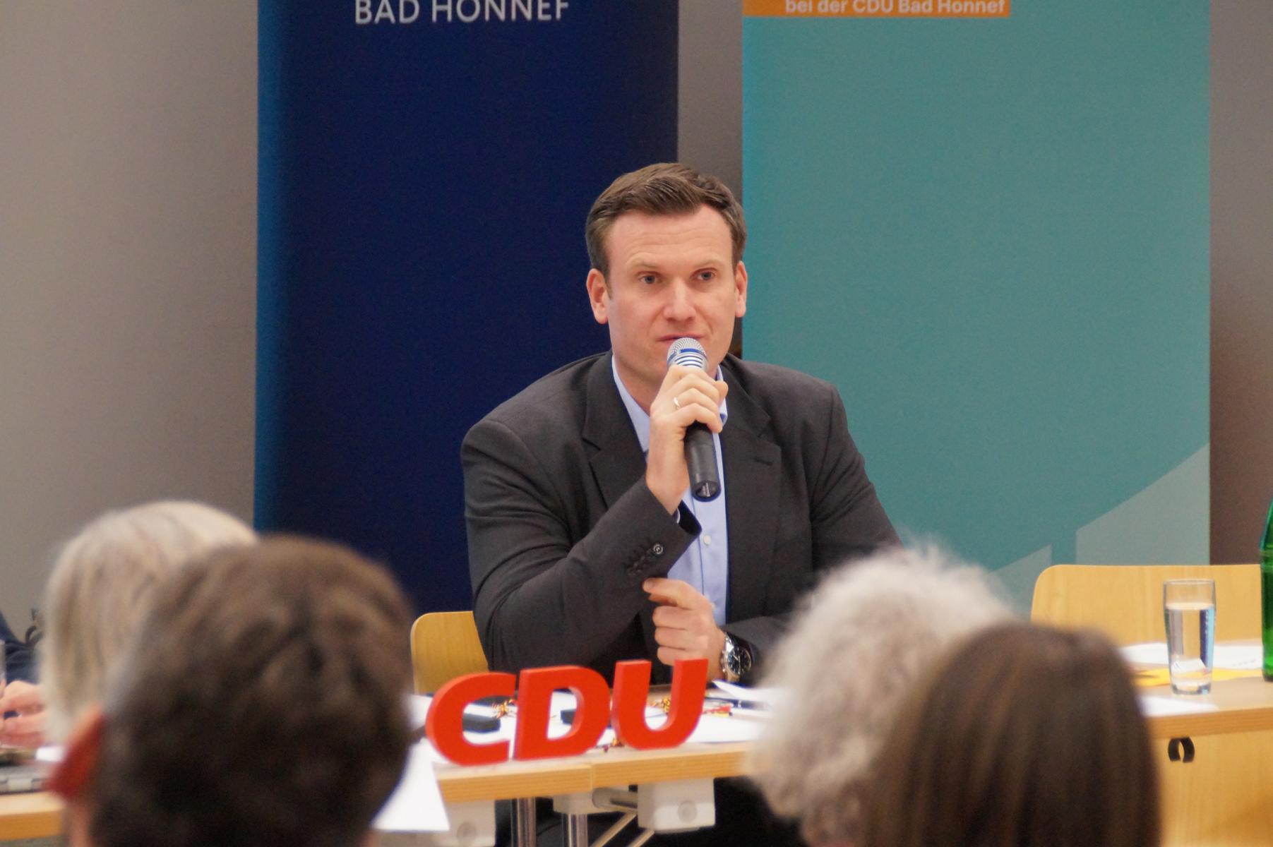 „Nach langer Zeit haben wir es wieder in der Hand, Politik aus einem Guss zu machen, im Schulterschluss mit unserem Bürgermeister“, sagte Grunwald in seinem Rechenschaftsbericht, den die Mitglieder mehrfach mit lautem Beifall unterbrachen. Der Vorsitzende lobte den entschlossenen Kommunalwahlkampf, der weit über die Grenzen der Stadt Aufmerksamkeit erregt habe – „inklusive des größten Wahlplakats in der Geschichte der Honnefer CDU“. Auch von Norbert Röttgen, Bundestagsabgeordneter und stellvertretender Vorsitzender der Unionsfraktion im Bundestag, gab es Sonderlob: „Ein toller Wahlkampf, ein herausragendes Ergebnis“.