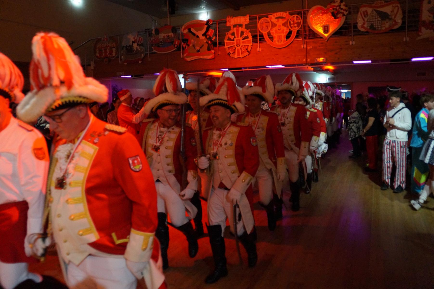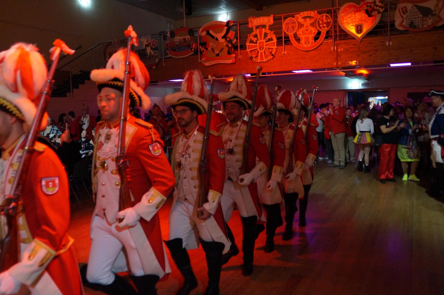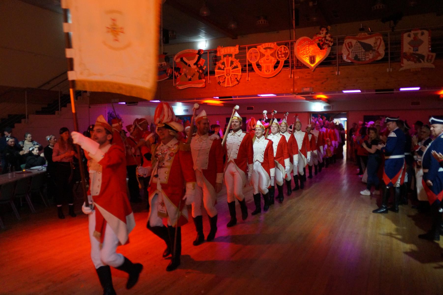 Den Auftakt gestaltete der Karnevalsverein Flöck Flöck Limbach aus Asbach-Limbach. Mit Kommandant Otti und seinen Stadtsoldaten sorgte die Gruppe gleich zu Beginn für ausgelassene Stimmung im Saal. Anschließend begeisterte die Band Scharmöör das Publikum mit ihrem mitreißenden Auftritt.
