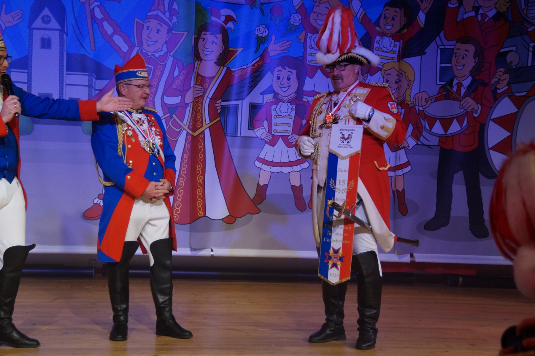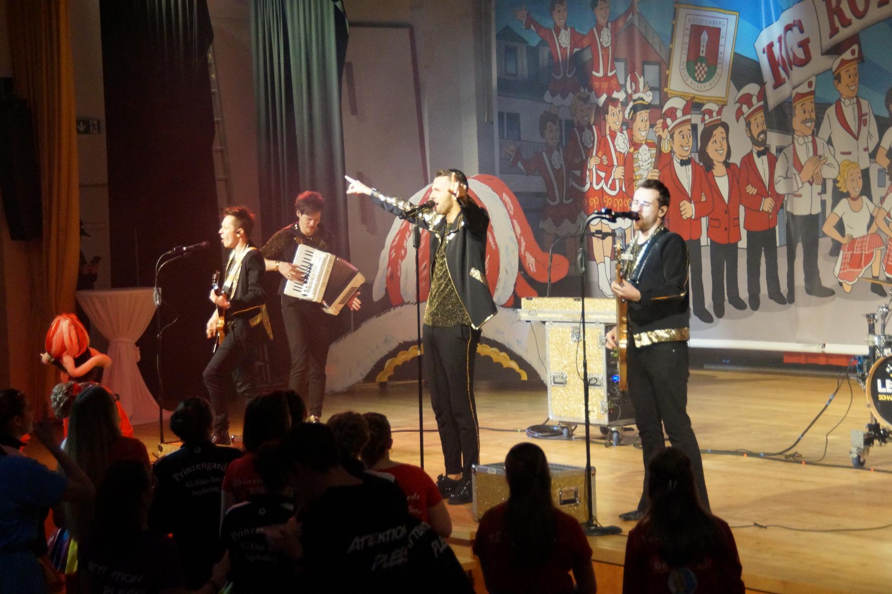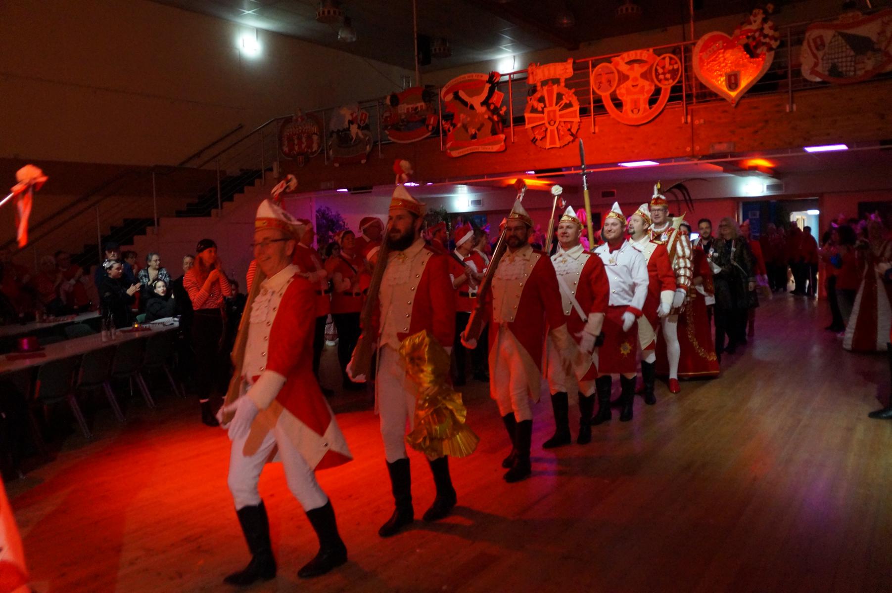 Den Auftakt gestaltete der Karnevalsverein Flöck Flöck Limbach aus Asbach-Limbach. Mit Kommandant Otti und seinen Stadtsoldaten sorgte die Gruppe gleich zu Beginn für ausgelassene Stimmung im Saal. Anschließend begeisterte die Band Scharmöör das Publikum mit ihrem mitreißenden Auftritt.