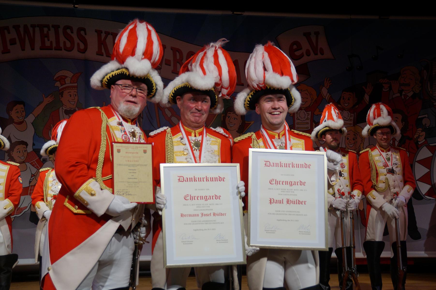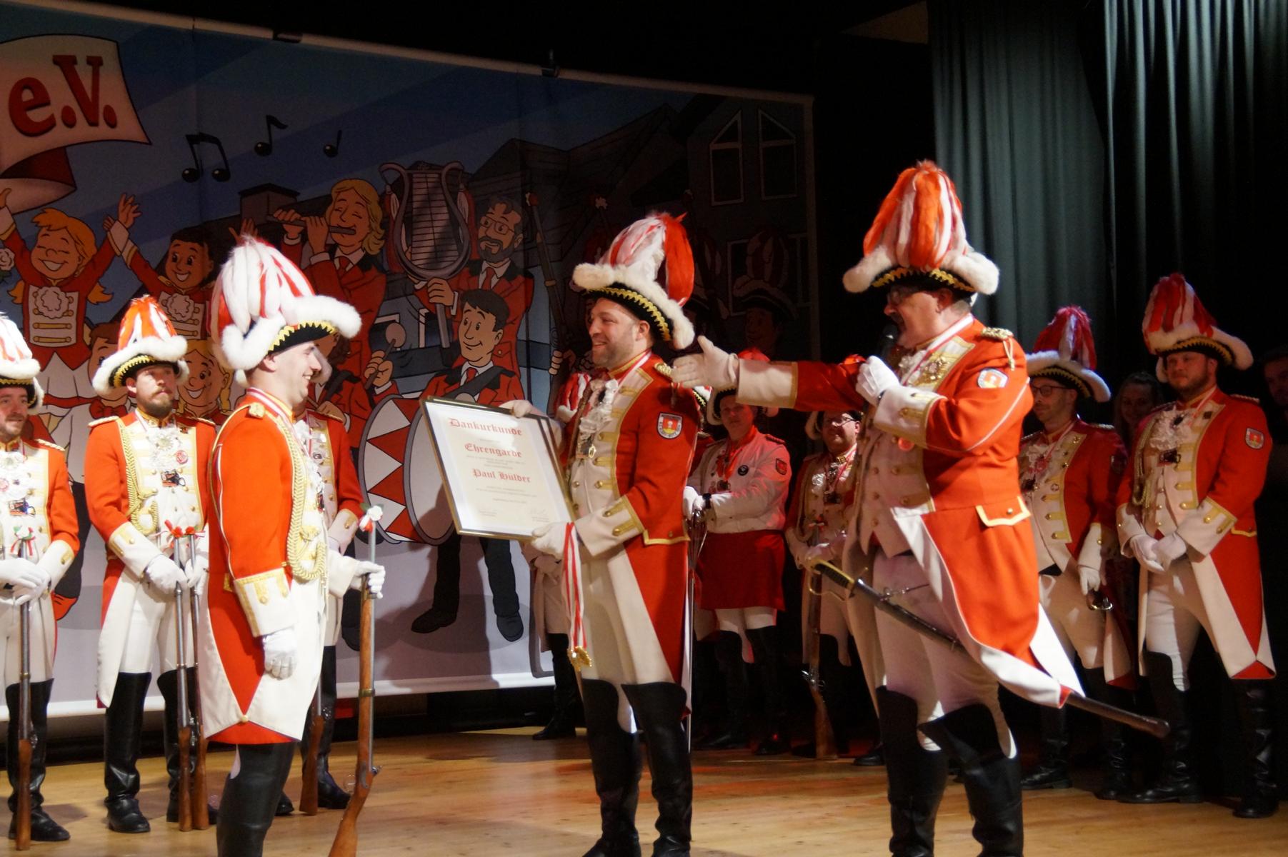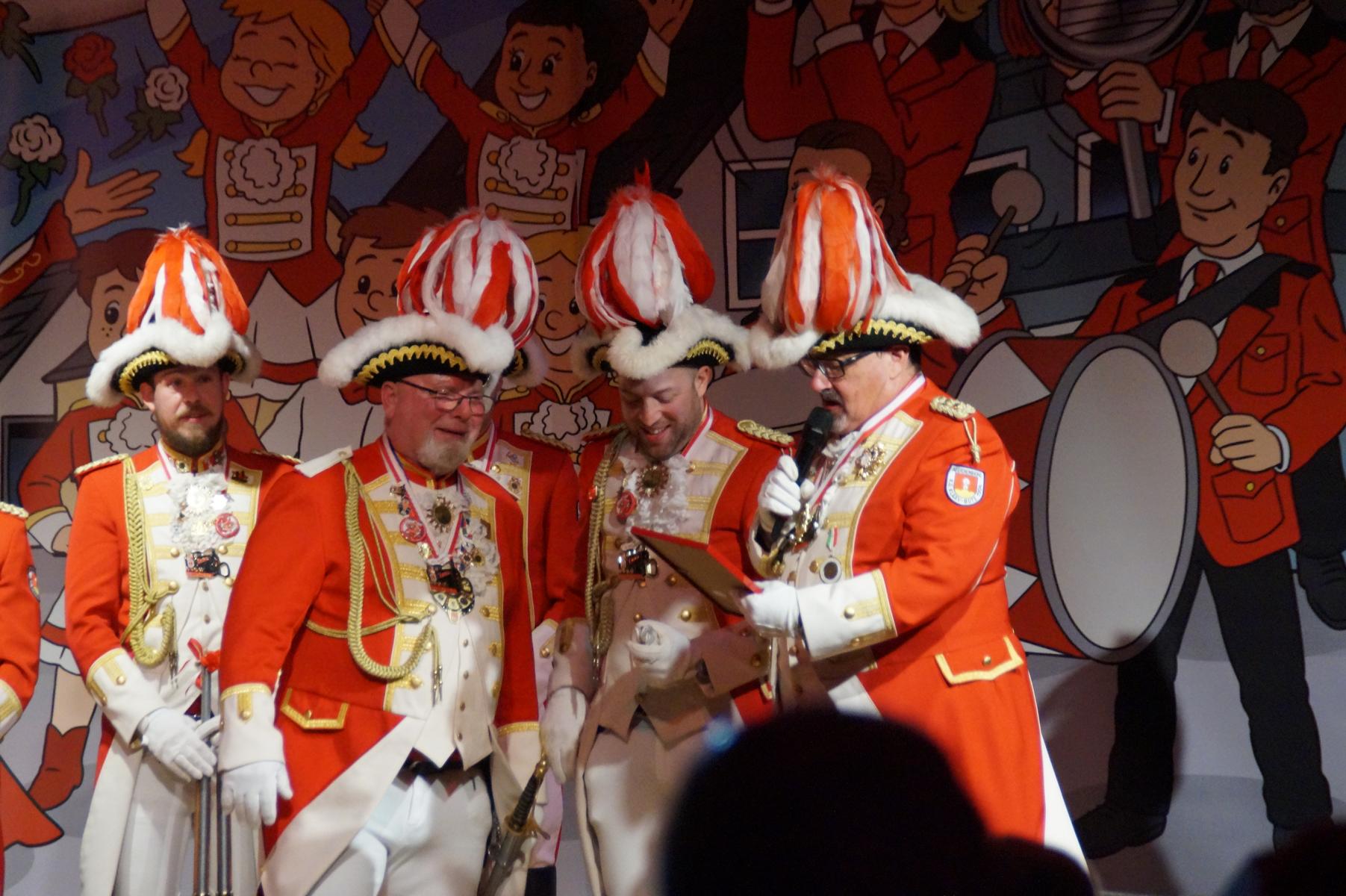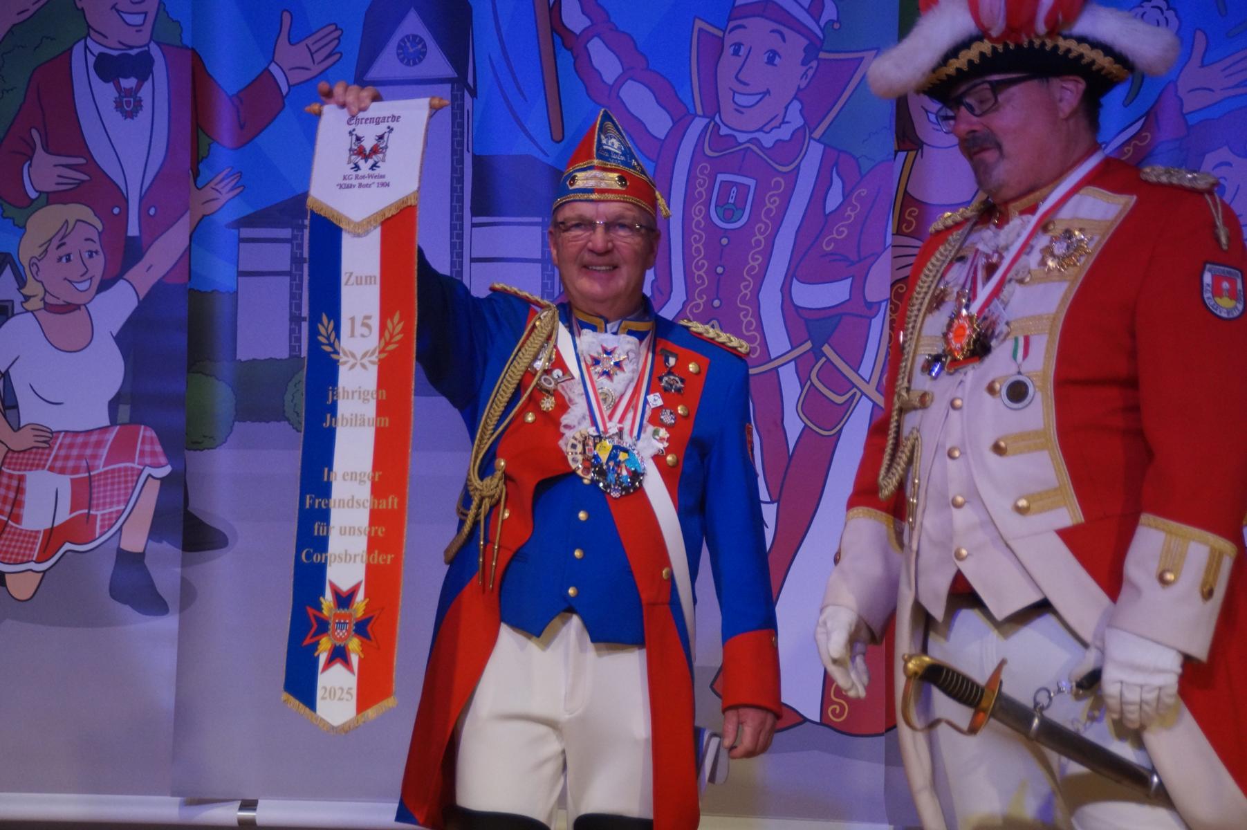 Ein besonderer Höhepunkt des Abends war die feierliche Verleihung des Freundschaftsbandes zwischen den Bad Honnefer Stadtsoldaten und der Prinzengarde Aegidienberg. Überreicht wurde es durch Stefan Jungheim, Benny Limbach und Daniel Behr an Kommandeur Roland Schramm.