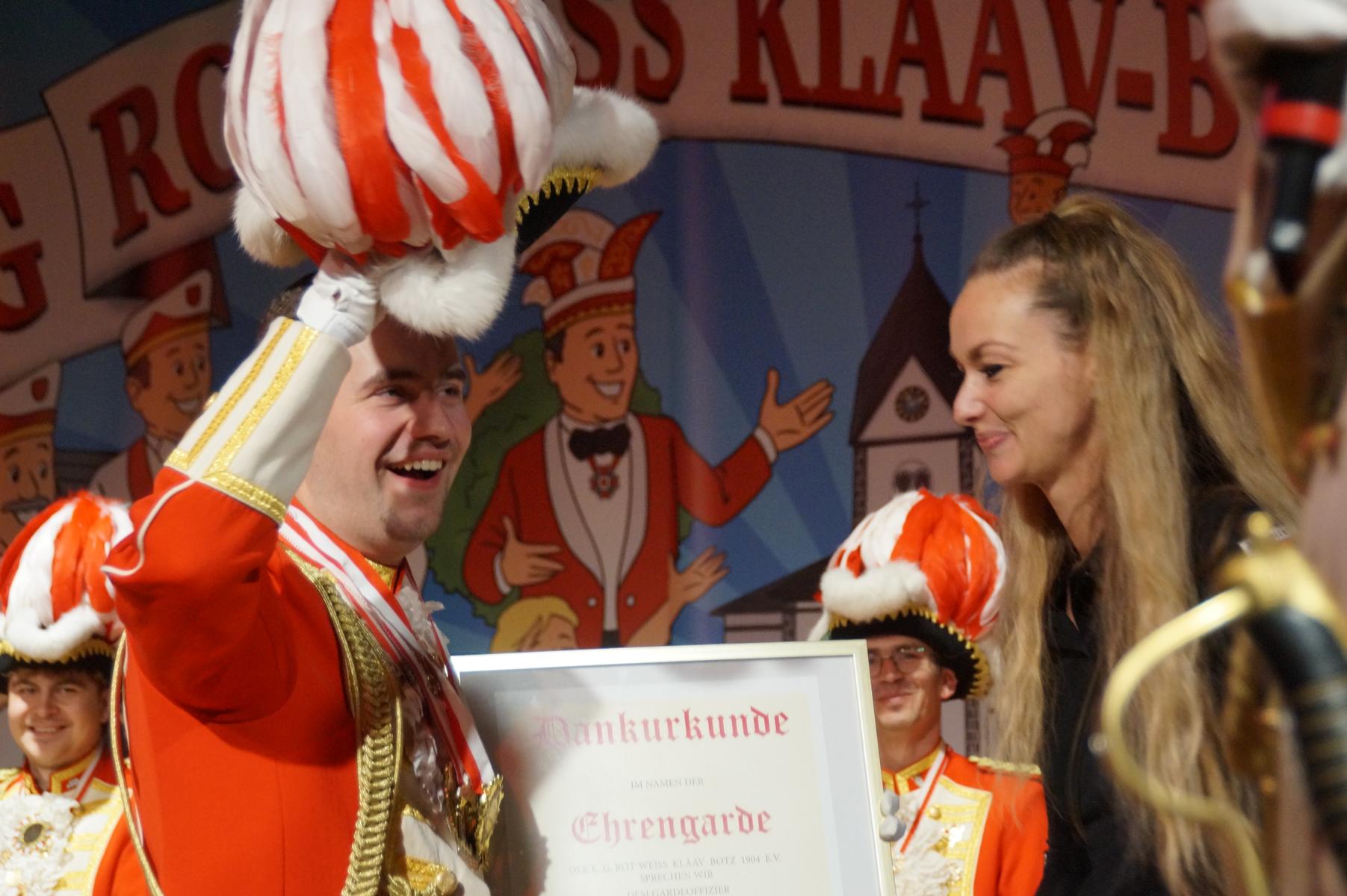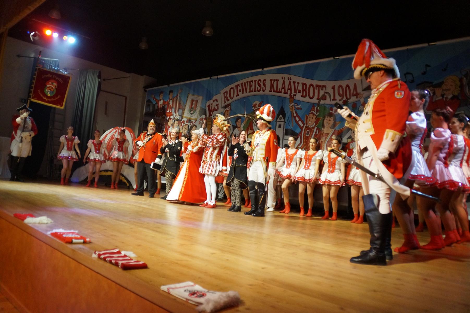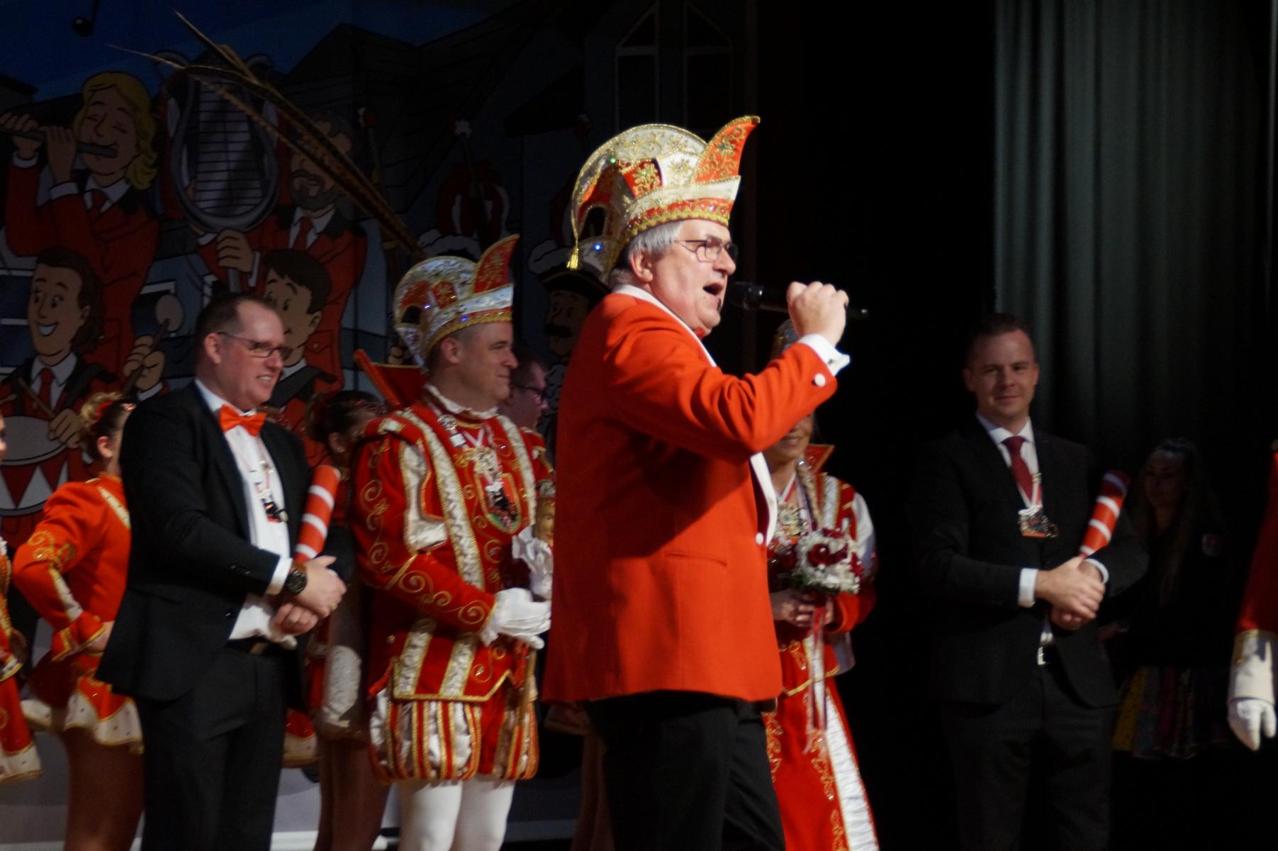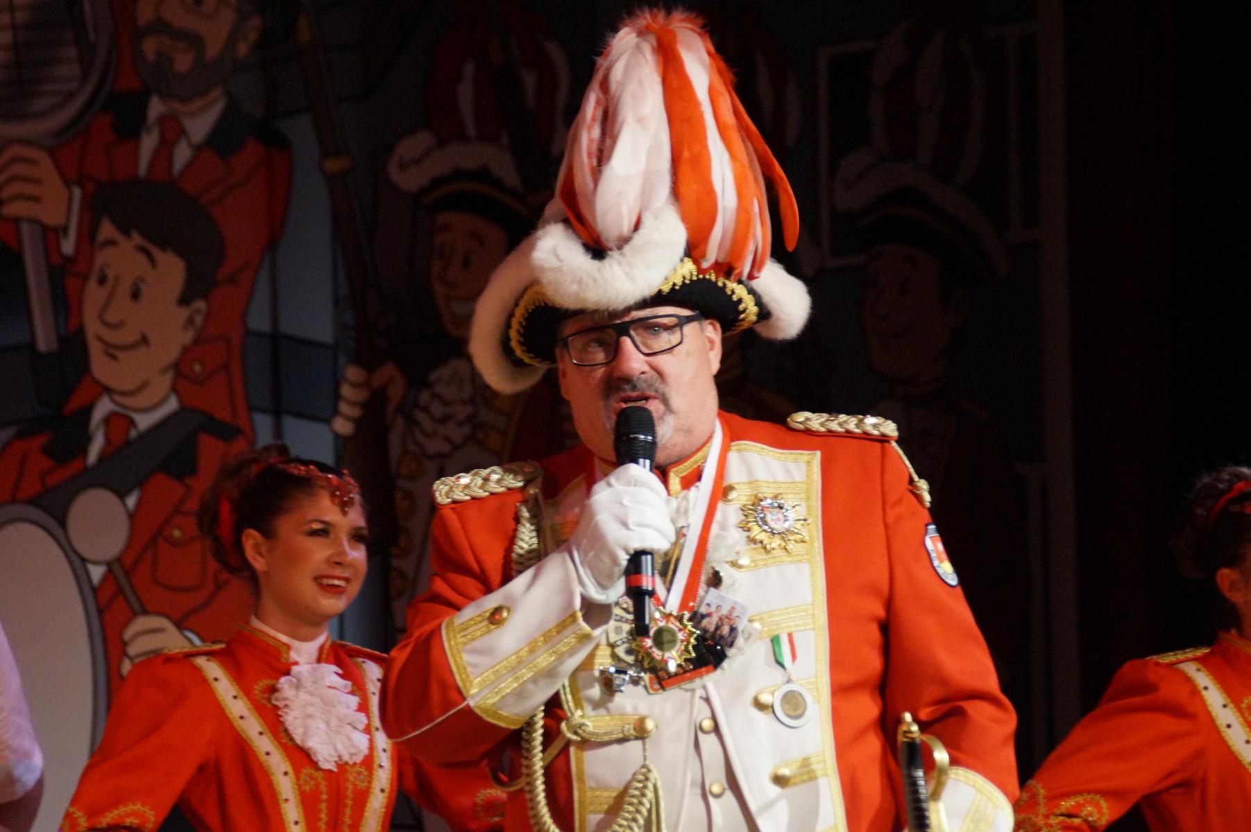 Pünktlich um 19:11 Uhr eröffnete Kommandeur Roland Schramm die Veranstaltung. In seiner Begrüßung hieß er besonders Prinz Michael I., Aegidia Daniela I., den Vorstand der KG Klääv Botz, Präsident Guido Ottersbach sowie die Senatoren willkommen.