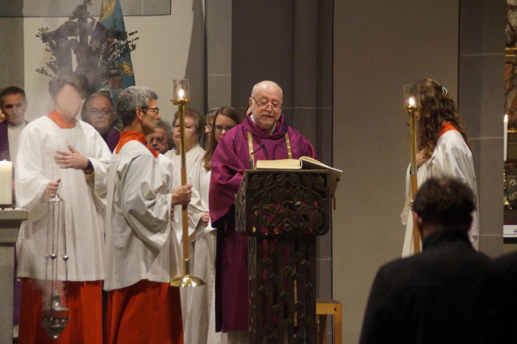 Am ersten Adventsonntag (30.11.2025) wurde die Abendmesse zu einem besonderen Erlebnis. In die vollbesetzte Kirche St. Johann Baptist zogen viele Messdiener und Messdienerinnen aus mehreren Gemeinden, gefolgt von einem großen Pastoralteam ein. Drei Monate nach dem offiziellen Beginn wurde Markus Hoitz als leitender Pfarrer von Kreisdechant Hans-Josef Lahr eingeführt. „Installation“ ist der Begriff für diese Handlung. Pfarrer Lahr erzählte, dass ein Junge, der dies hörte, meinte, es hätte was mit Heizung zu tun. Gar nicht so falsch. Im übertragenen Sinn wird Markus Hoitz hier mit seinem priesterlichen Wirken für Wärme sorgen. Pfarrer Lahr las die entsprechen Urkunde vom Kardinal Woelki vor. Auf die sonst üblichen Rituale bei dieser Zeremonie des Abreitens von Altar, Ambo und Stuhl des Priesters wurde verzichtet.