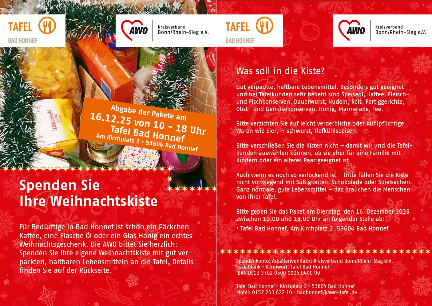 Bad Honnef: 16.12. 2024 – 10 bis 18 Uhr: Tafel Bad Honnef: Am Kirchplatz 2