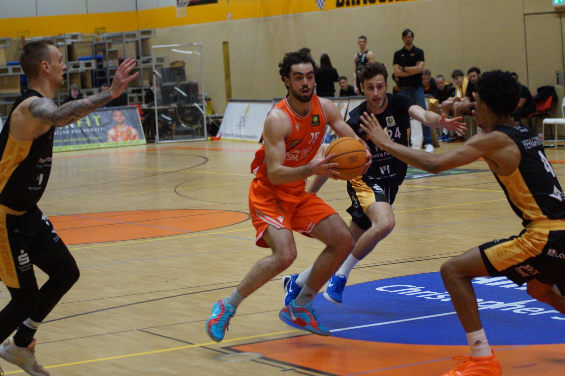 Was der Dragons-Coach seinen Jungs für die zweite Spielhälfte mit auf den Weg gab wird ein Geheimnis bleiben, aber es zeigte Wirkung. Die Dragons waren wie ausgewechselt, nahmen die harten Zweikämpfe an und waren plötzlich ebenbürtig. Rhöndorf startete stark ins dritte Viertel und glich in der 24. Minute durch einen Dreier von Lagui Diallo aus. Die Dragons nutzten das Momentum zu einem 14:0-Lauf, gleichbedeutend mit der 52:48-Führung (25“). Das letzte Wort im Viertel gehörte allerdings Bernaus Point Guard Guy Nahmias, der einen Buzzer-Dreier zum 59:61 reinnagelte.