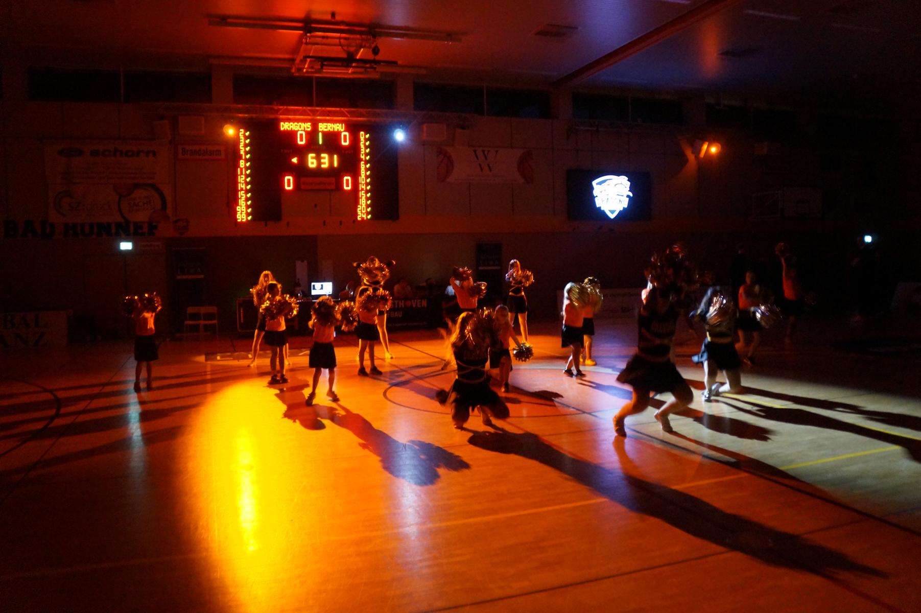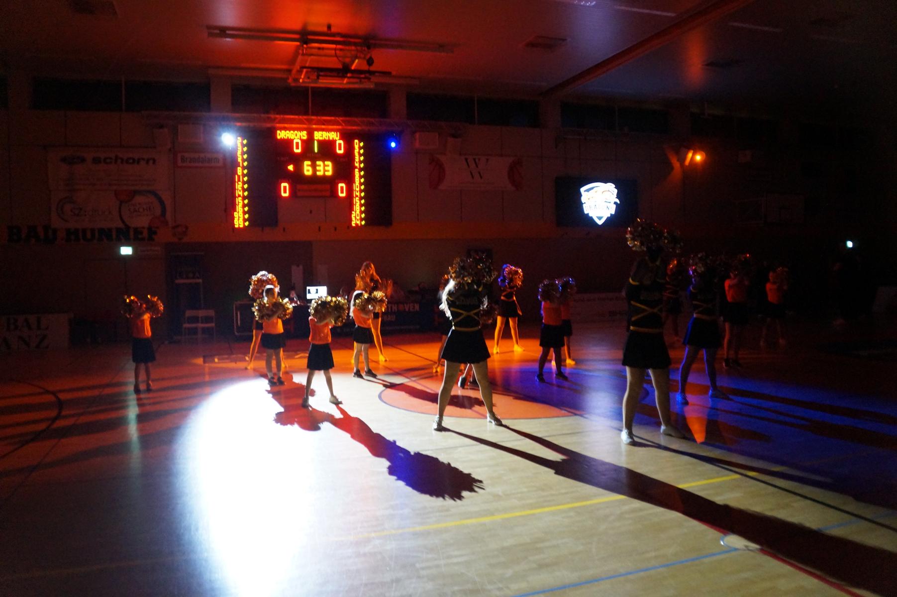 Nach einem Erfolgserlebnis sah es für die Hausherren in der ersten Halbzeit jedoch nicht aus. Bernau beindruckte die Hausherren mit Power-Basketball aus dem Lehrbuch. Die Gäste spielten ein konsequente Ganzfeldpresse, was den Offensiv-Rhythmus Rhöndorfs zunächst empfindlich störte. Zudem machte Bernau seinem Ruf als eines der Rebound stärksten Teams der Liga alle Ehre. Insgesamt 29 Abpraller sammelte LOK ein, fast doppelt so viele wie die Dragons (14). Und die Brandburger verwandelten ihre Korbchancen „in the Paint“, sprich in der Zone hochprozentig (17:24=71 %). Da Rhöndorf auch noch ein paar hundertprozentige Würfe verfehlte, ging das Team von Coach Oppland zwischenzeitlich verdient mit 30:43 in Führung (18“). Es war einem 6:0-Lauf von Rhöndorf zu verdanken, dass der Vorsprung zum Pausentee auf acht Punkte schmolz (38:46).
