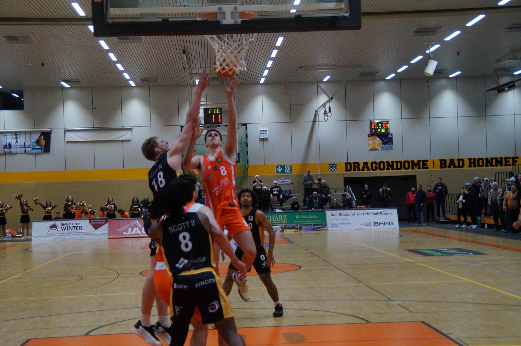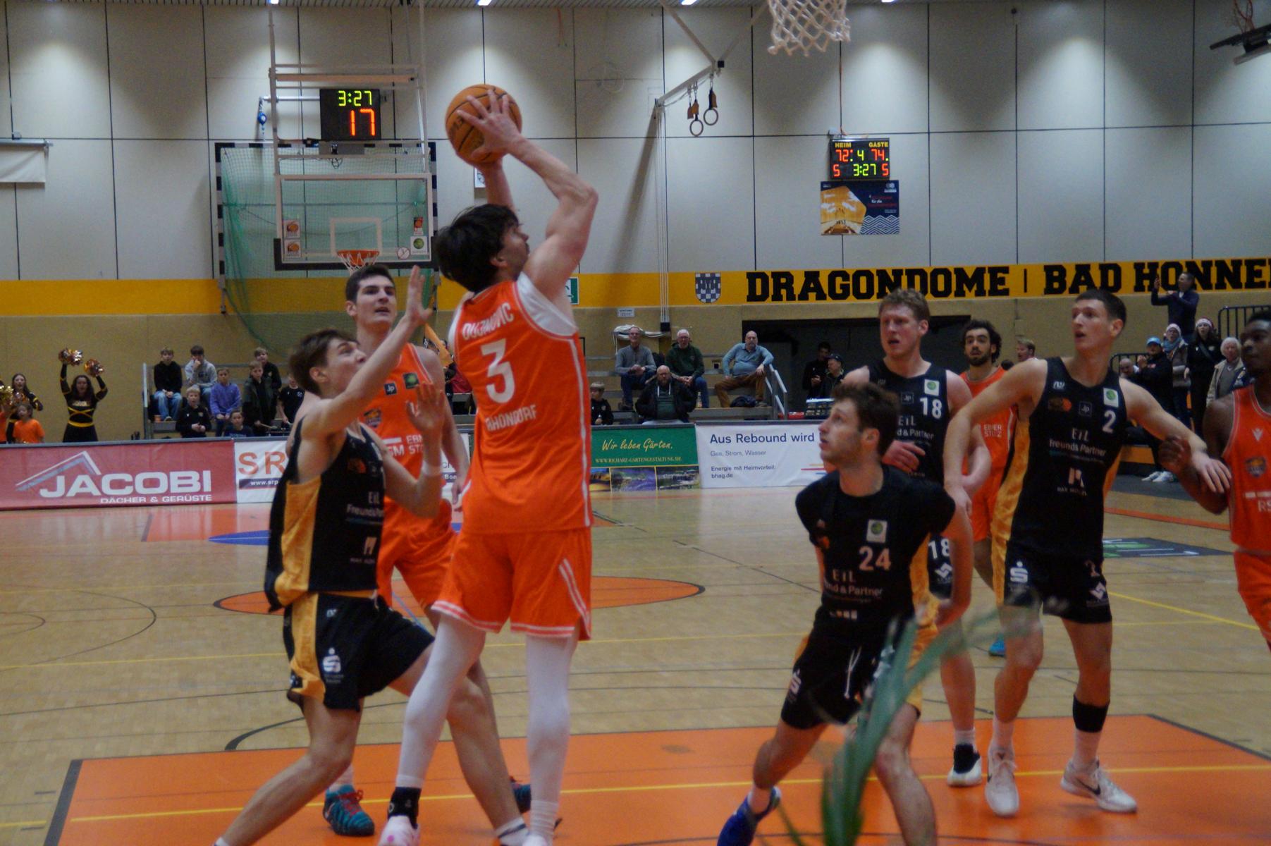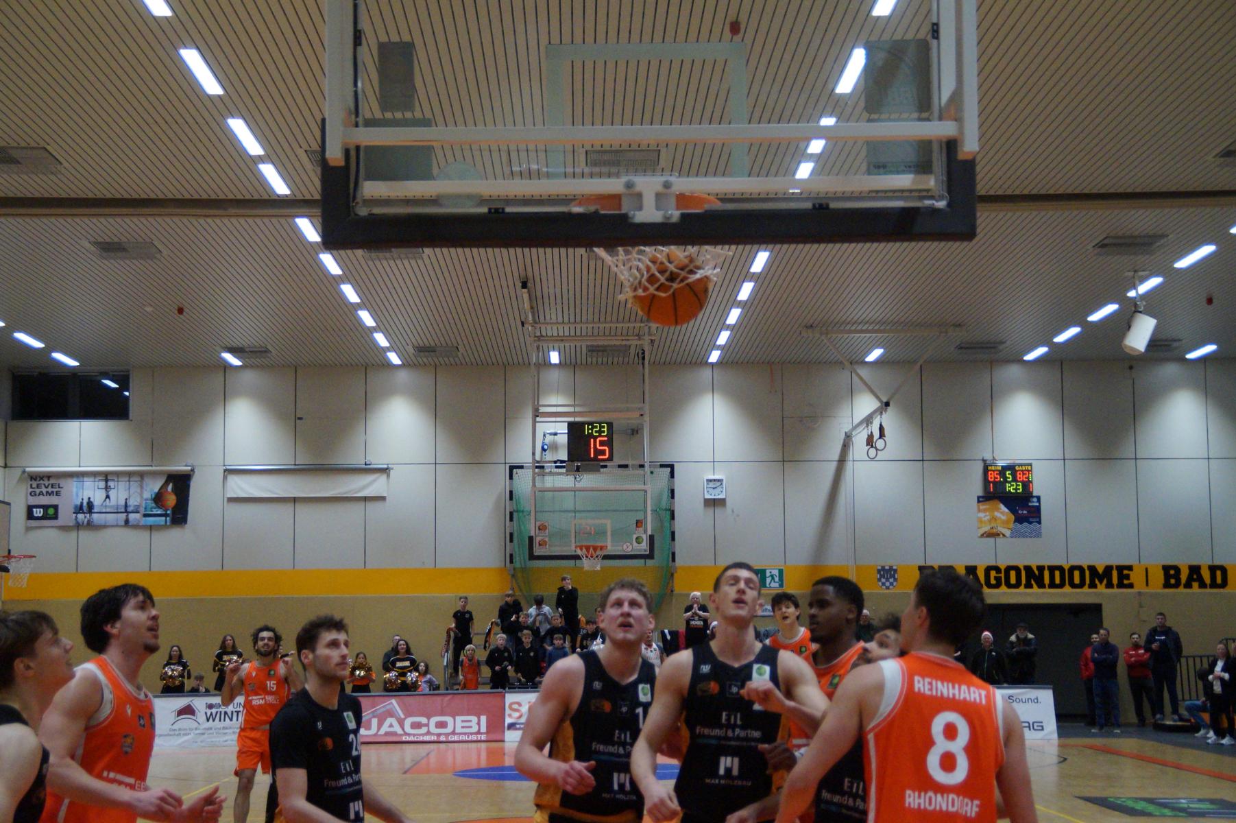 Im letzten Spielabschnitt gings hin- und her, die Führung wechselte mehrfach, bis Rhondorf das Momentum zum Sieg in eigener Hand hatte. Juhwan Harris-Dyson stand 28 Sekunden vor Schluss beim Zwischenstand von 78:79 an der Freiwurflinie, zuvor hatte der angeschlagene US-Amerikaner bereits zwei Chancen vergeben, verwandelte diesmal zumindest einen zum 79:79 – gleichbedeutend mit Overtime.