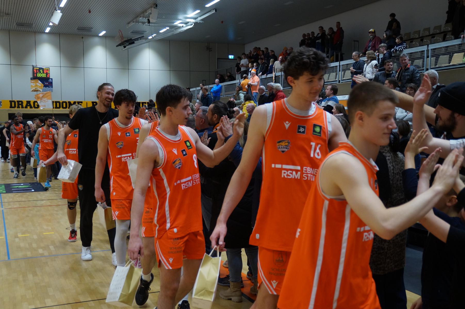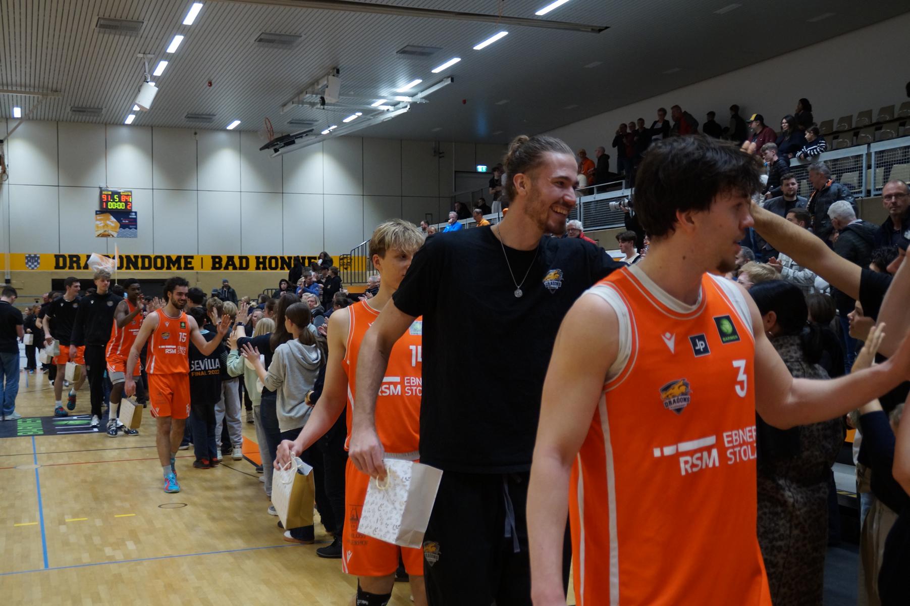 Max Becker (Headcoach Dragons Rhöndorf): „Wir haben heute in der ersten Halbzeit, gerade im Rebound, überhaupt keinen Zugriff gehabt. Trotz zahlreicher vergebener bester Korbchancen, haben wir es geschafft zur Halbzeit trotzdem in Schlagdistanz zu bleiben. So konnten wir mit positiver Energie in die zweite Halbzeit starten. Was die Jungs da abgeliefert haben war purer Einsatzwillen, pure Energie – darauf bin ich sehr stolz. Es war ein wichtiger Sieg für uns, wir haben uns erneut bewiesen, dass wir mit den besten Teams der Liga mithalten können. Ganz wichtig, wir haben uns aus dem Ergebnistief der letzten Wochen befreien können.“