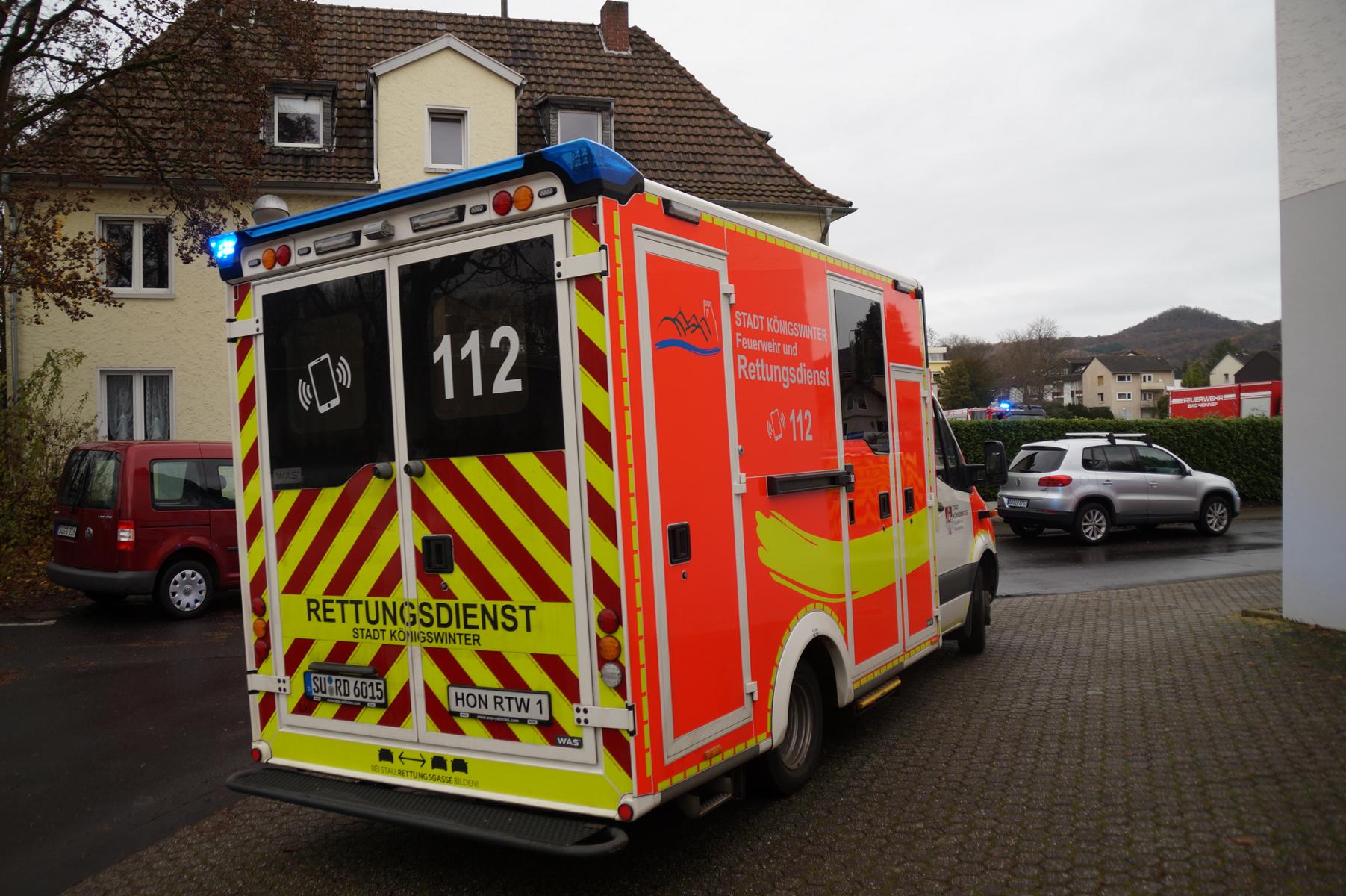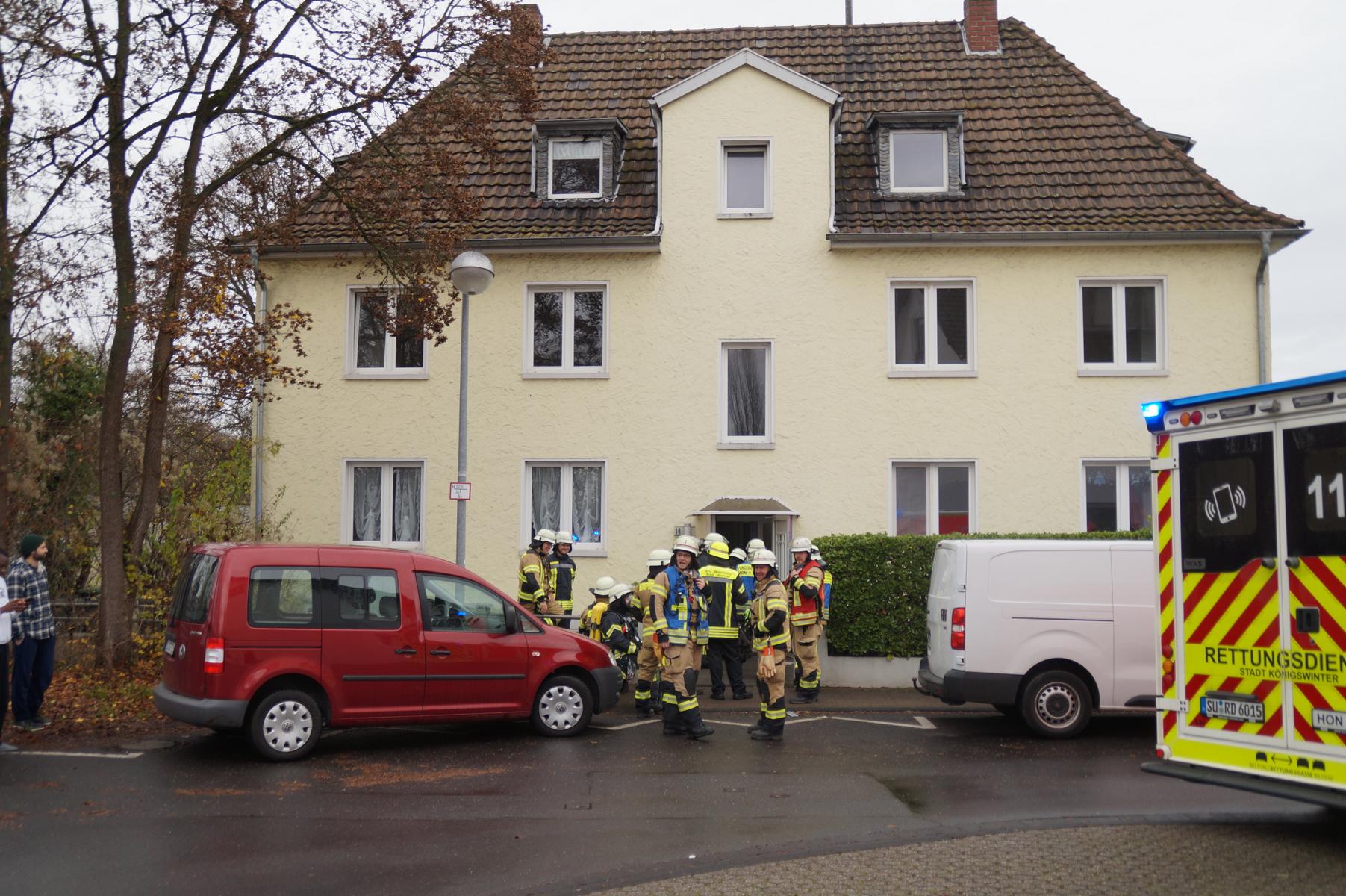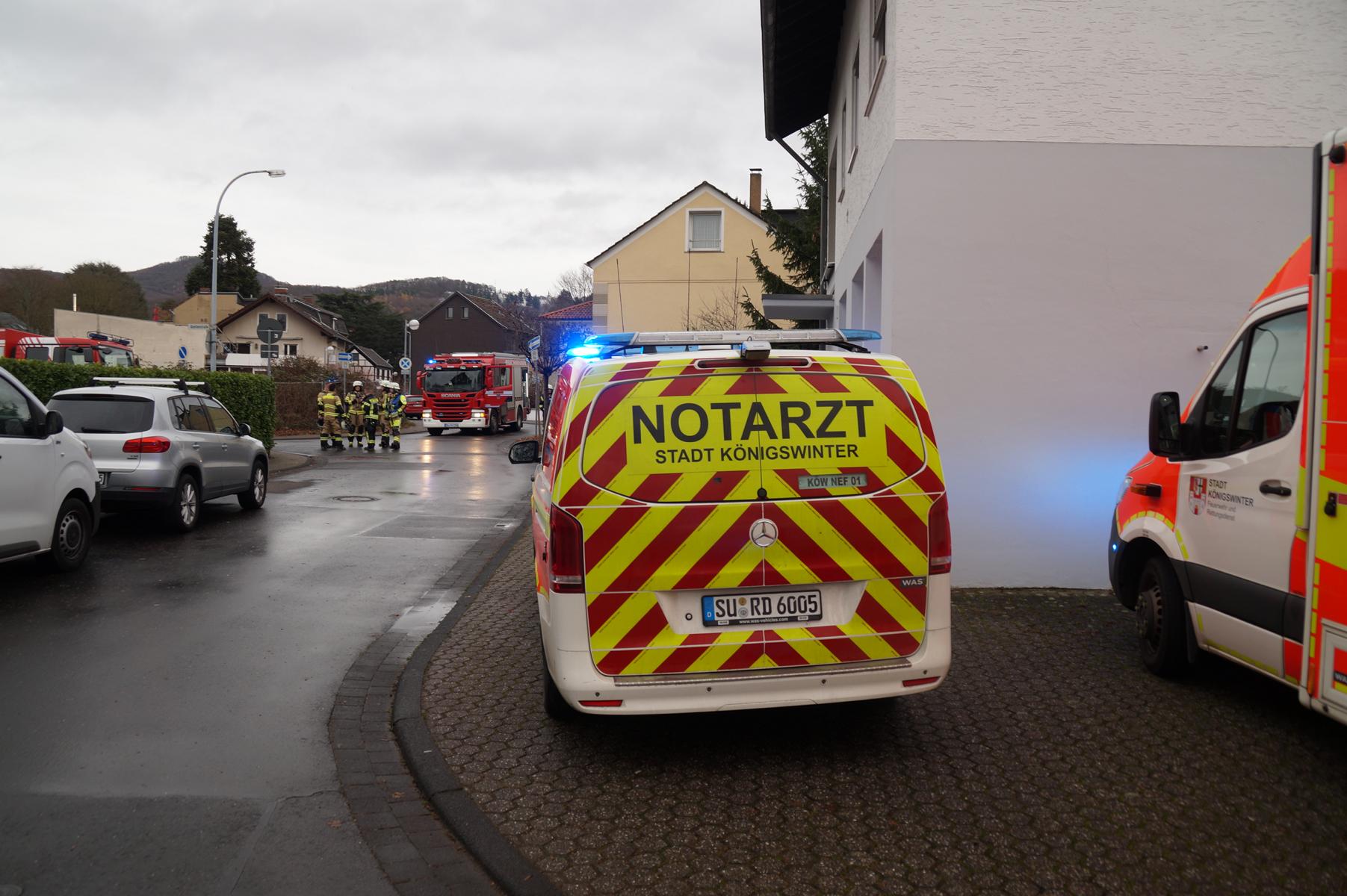 Daraufhin alarmierte der Rettungsdienst die Freiwillige Feuerwehr Bad Honnef. Die Feuerwehr rückte mit Kräften aus Bad Honnef, Rhöndorf und Aegidienberg an, kontrollierte die Räume unter Atemschutz und führte weitere CO‑Messungen durch. Das Gebäude wurde anschließend umfassend belüftet. Auch der Bezirksschornsteinfeger wurde zur Einsatzstelle gerufen.
