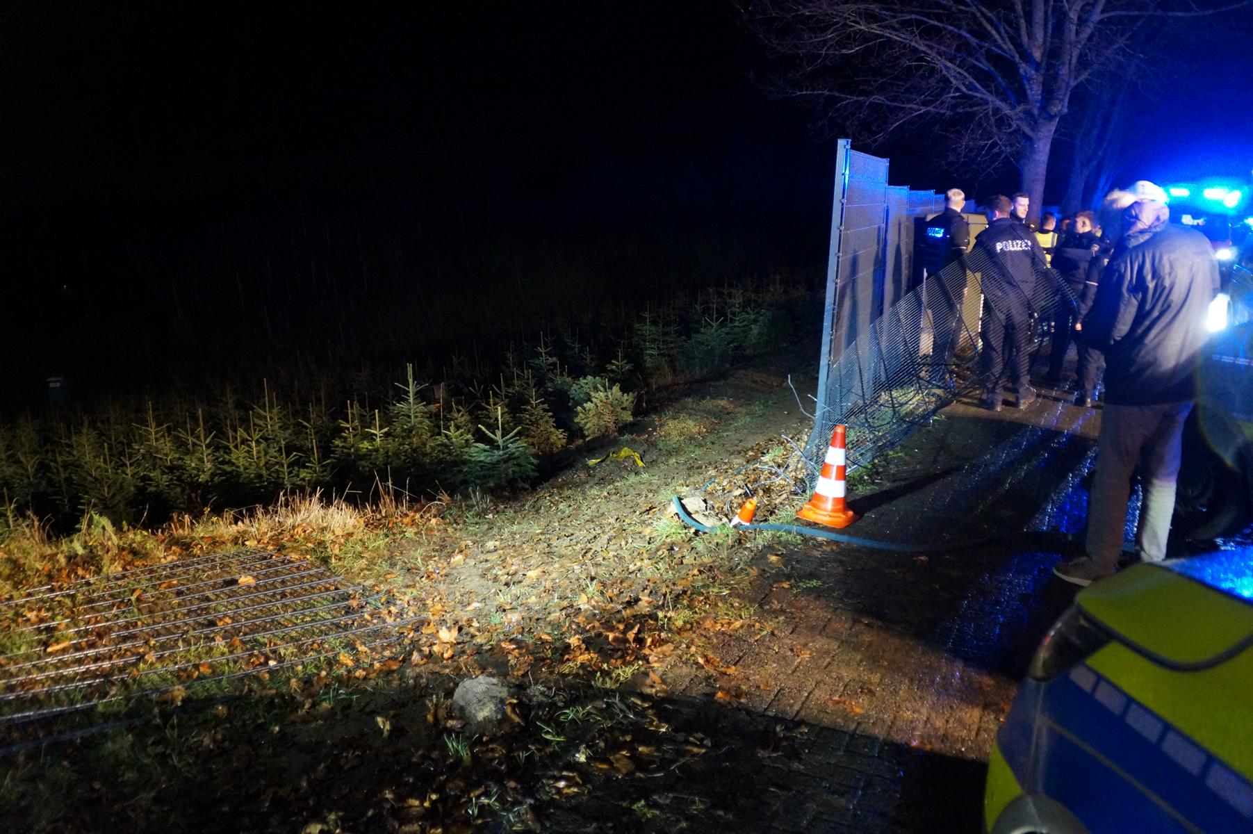 Auf der Landstraße bei Bad Honnef-Hövel verlor der Fahrer schließlich die Kontrolle über das Fahrzeug. Der Wagen kam von der Fahrbahn ab, durchbrach einen stabilen Metallzaun und stürzte rund 50 Meter in eine Tannenschonung eines Weihnachtsbaumhandels hinab, wo er zum Stillstand kam. Die Polizei sperrte den Bereich weiträumig ab und sicherte die Unfallstelle.