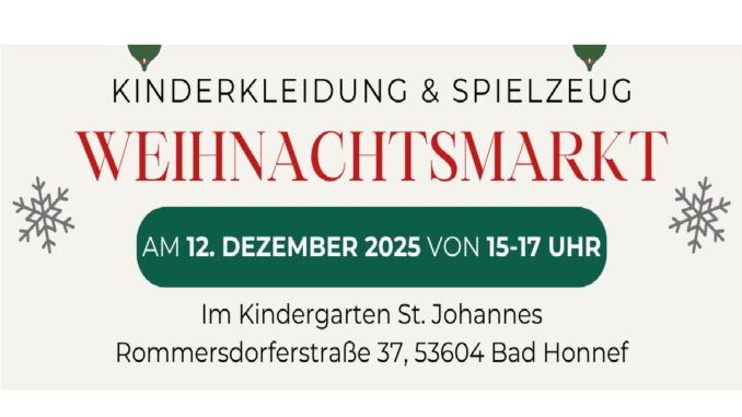 Schon Morgen!!! — Einladung zum Kinder- und Spielzeug-Weihnachtsmarkt im Kindergarten St. Johannes am 12.12.25