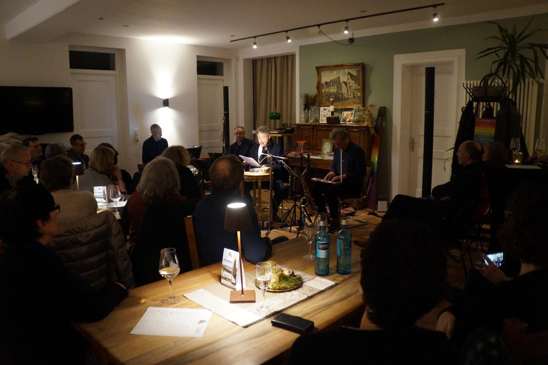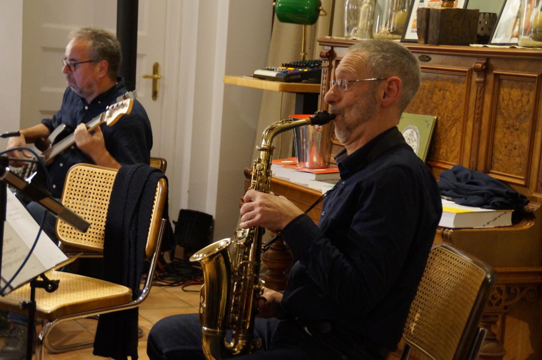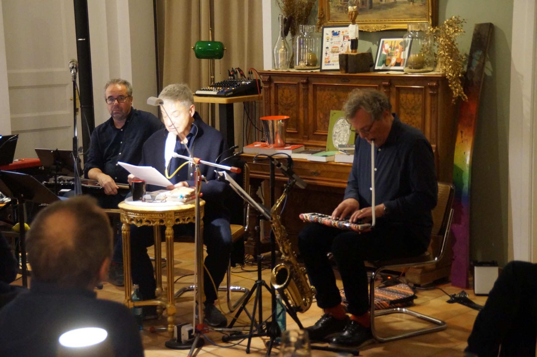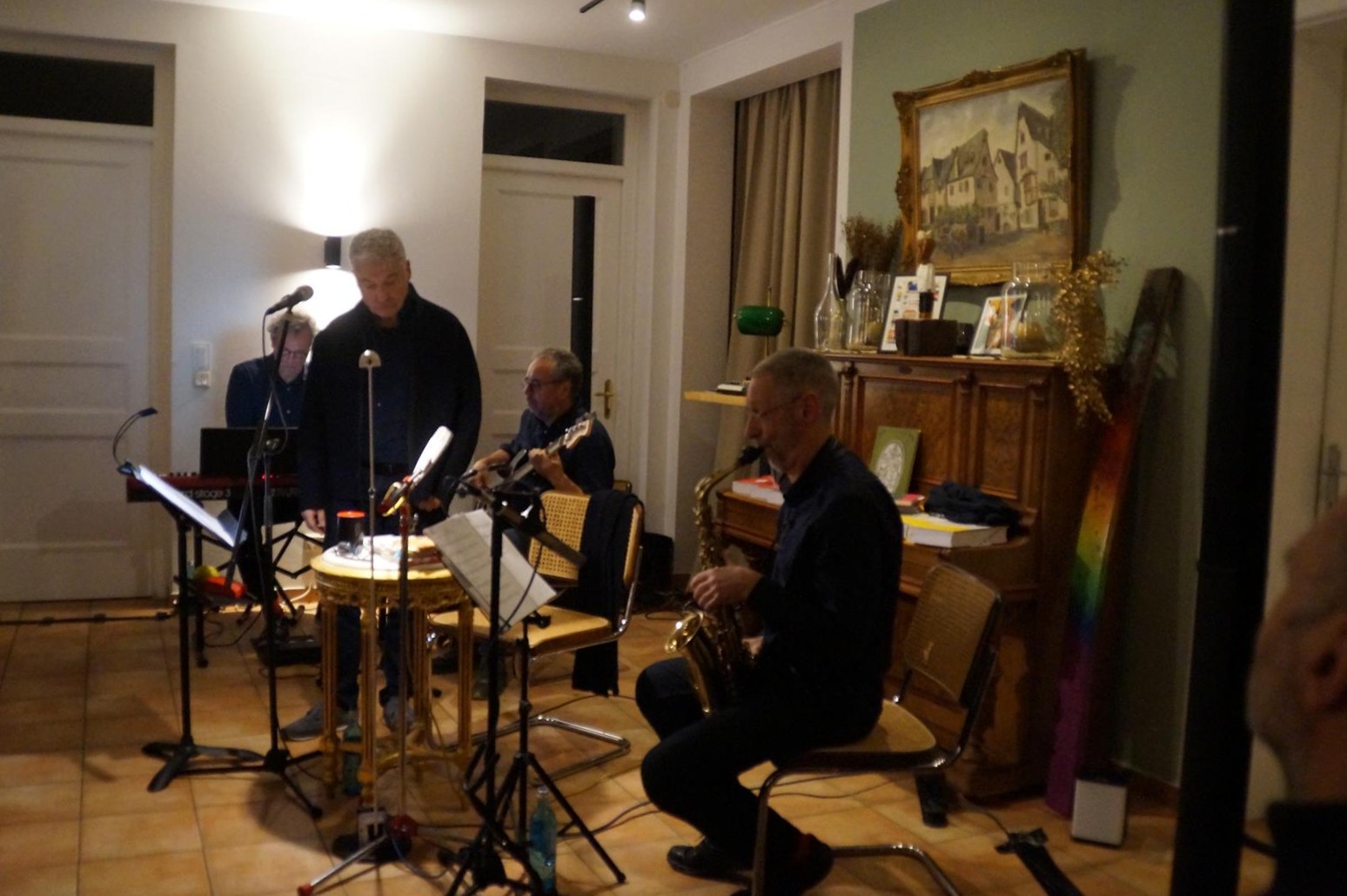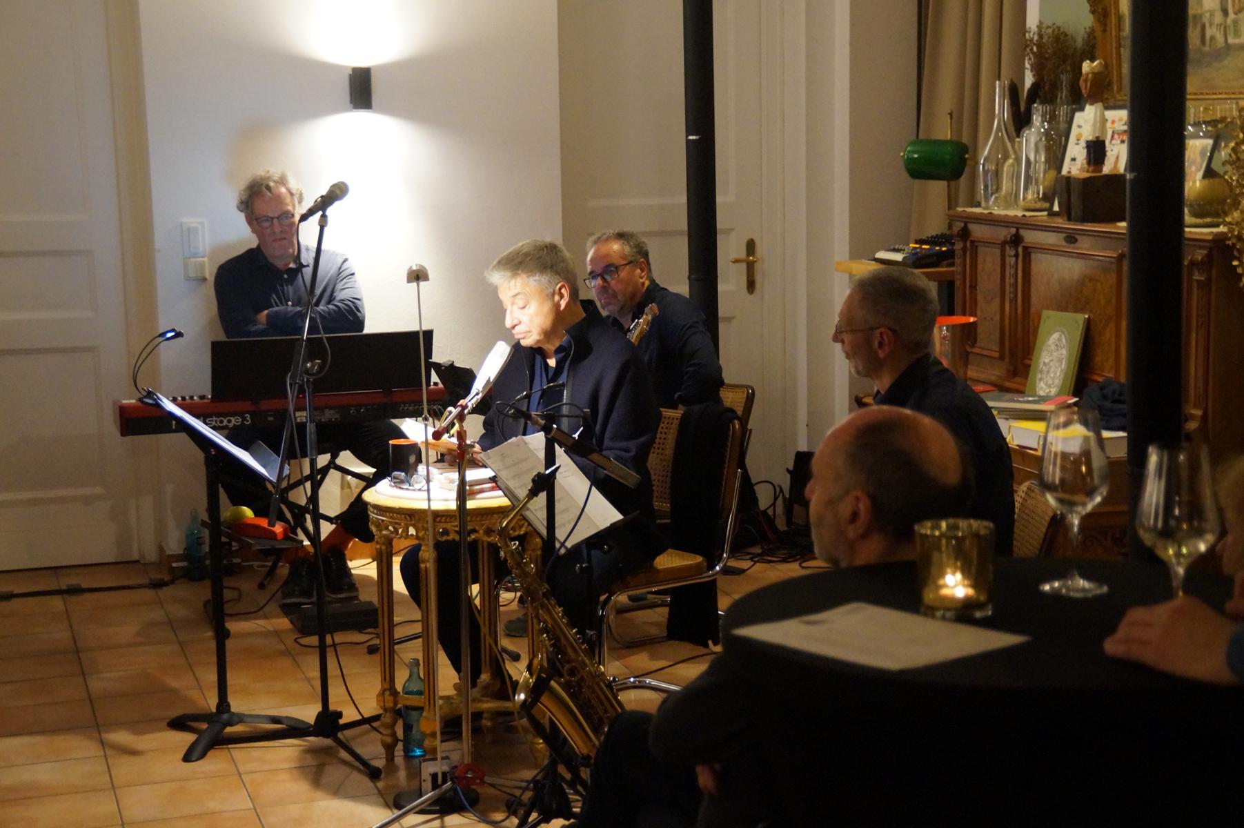 Curt Beil (Piano), Rainer Berg (Bass), Ernst Nellessen (Saxofon) und Thomas Heyer (Gesang und Lyrik) präsentierten ein Programm aus Jazzstücken und literarischen – satirischen Texten, darunter Werke von Brecht, Ringelnatz und weiteren Autoren. Die Mischung aus Musik und gesprochenem Wort prägte den Abend und sorgte für eine ruhige, konzentrierte Atmosphäre.