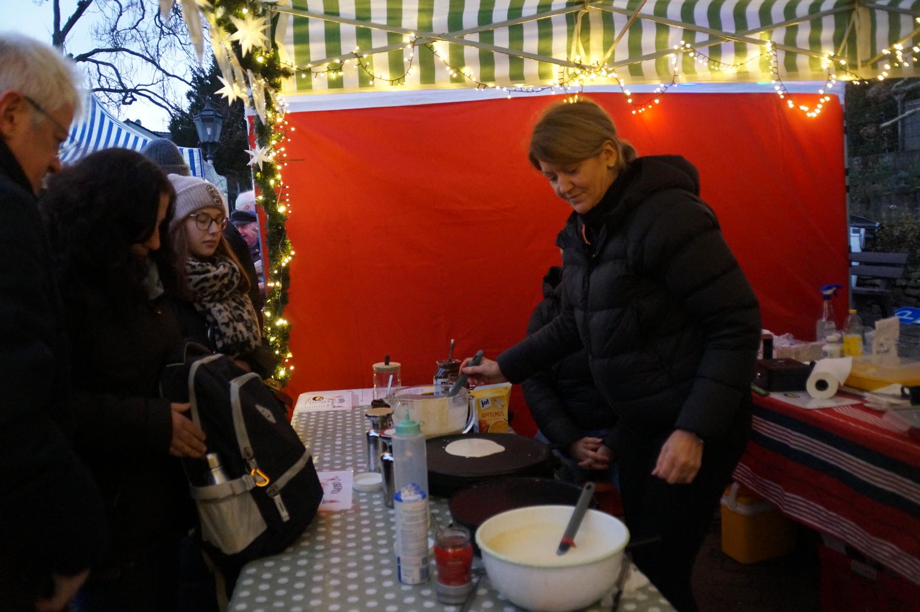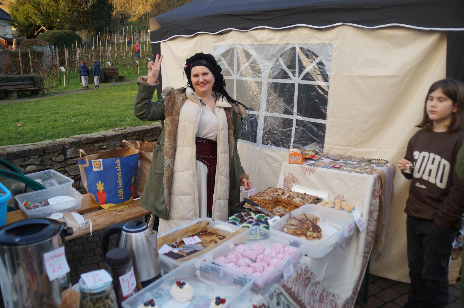 Der Förderverein der Löwenburgschule Rhöndorf verkaufte Selbstgebasteltes. Bei Peter Profittlich in „Profittlich’s Knusperhäuschen“ gab es ein Adventsbrot, Stollen, Plätzchen und Waffeln. Ob Socken, diverse Dekoartikel,Kunsthandwerk, Honig, Kerzen oder andere Leckereien aus heimischer Produktion, für jeden war etwas dabei.