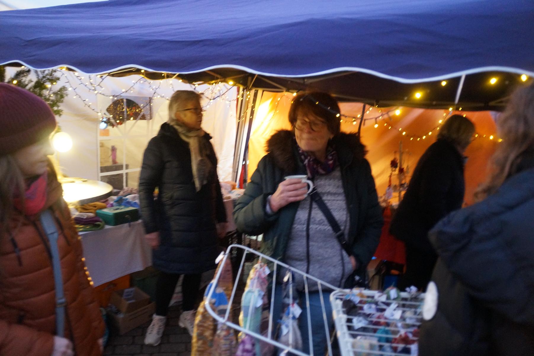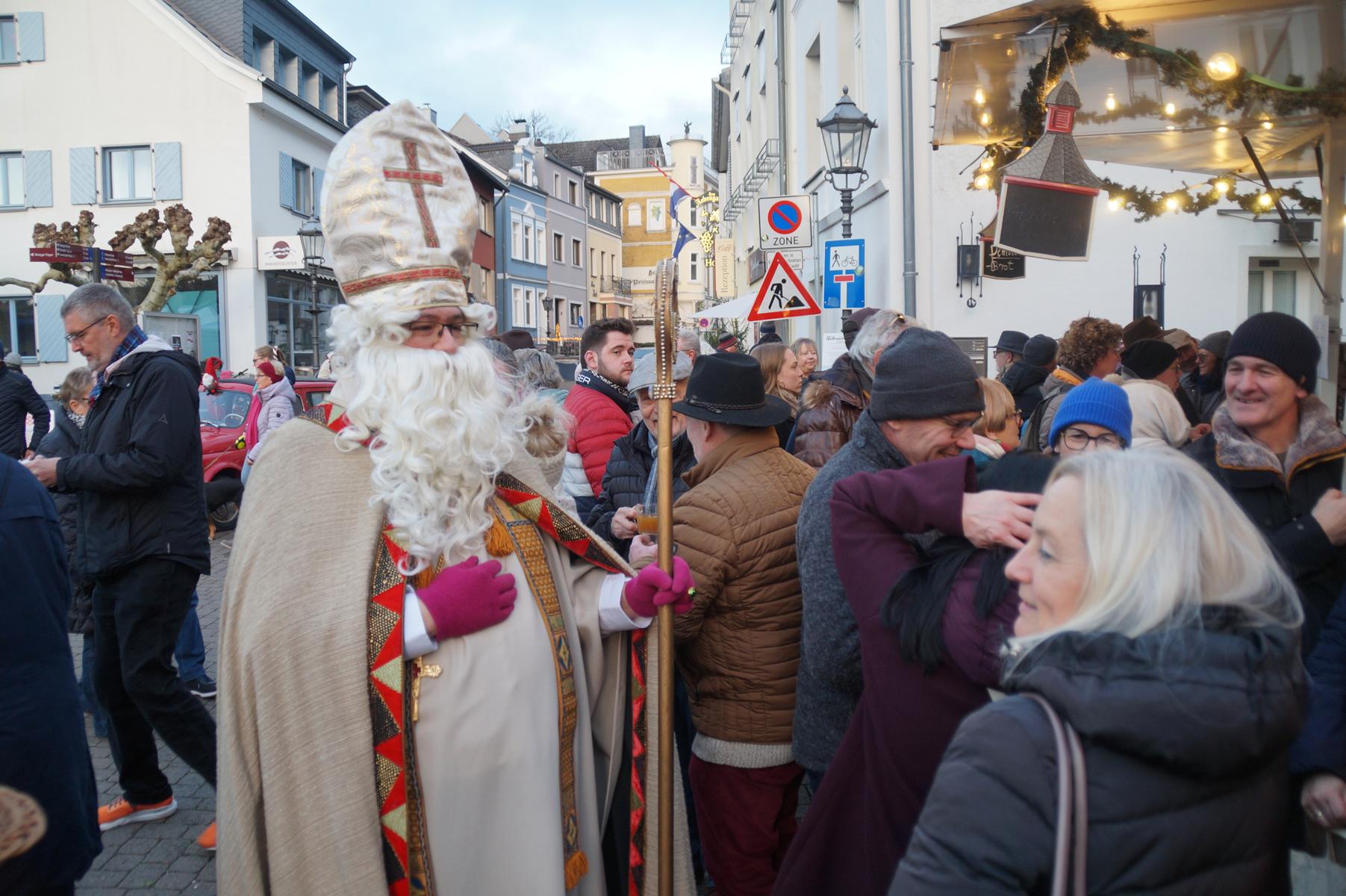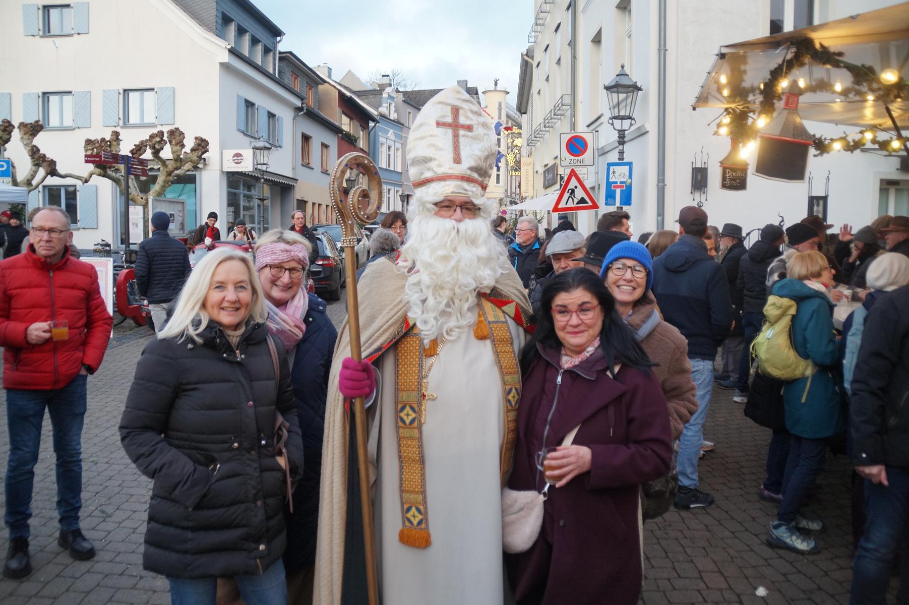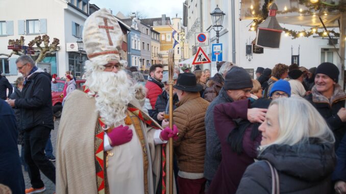 Am Nachmittag besuchte der Nikolaus den Weihnachtsmarkt und verteilten sie kleine Tütchen mit allerlei Süßwaren an die anwesenden Kinder.