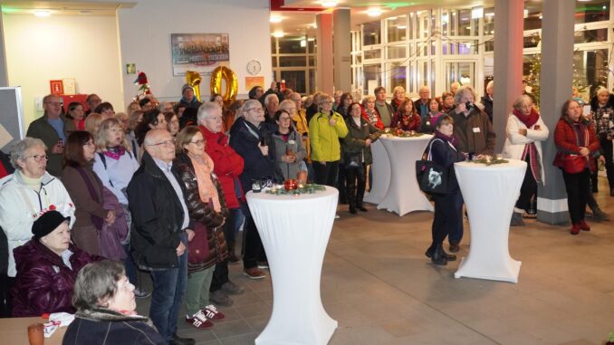 | Unmittelbar nach den Begrüßungsreden übernahm Stella Batzella, in diesem Jahr Finalistin beim Kleinkunstwettbewerb, das Mikrofon und sang gemeinsam mit allen anwesenden Gästen Weihnachtslieder. Ein beeindruckender Moment, der bei dem einen oder anderen Anwesenden für Gänsehaut sorgte. |