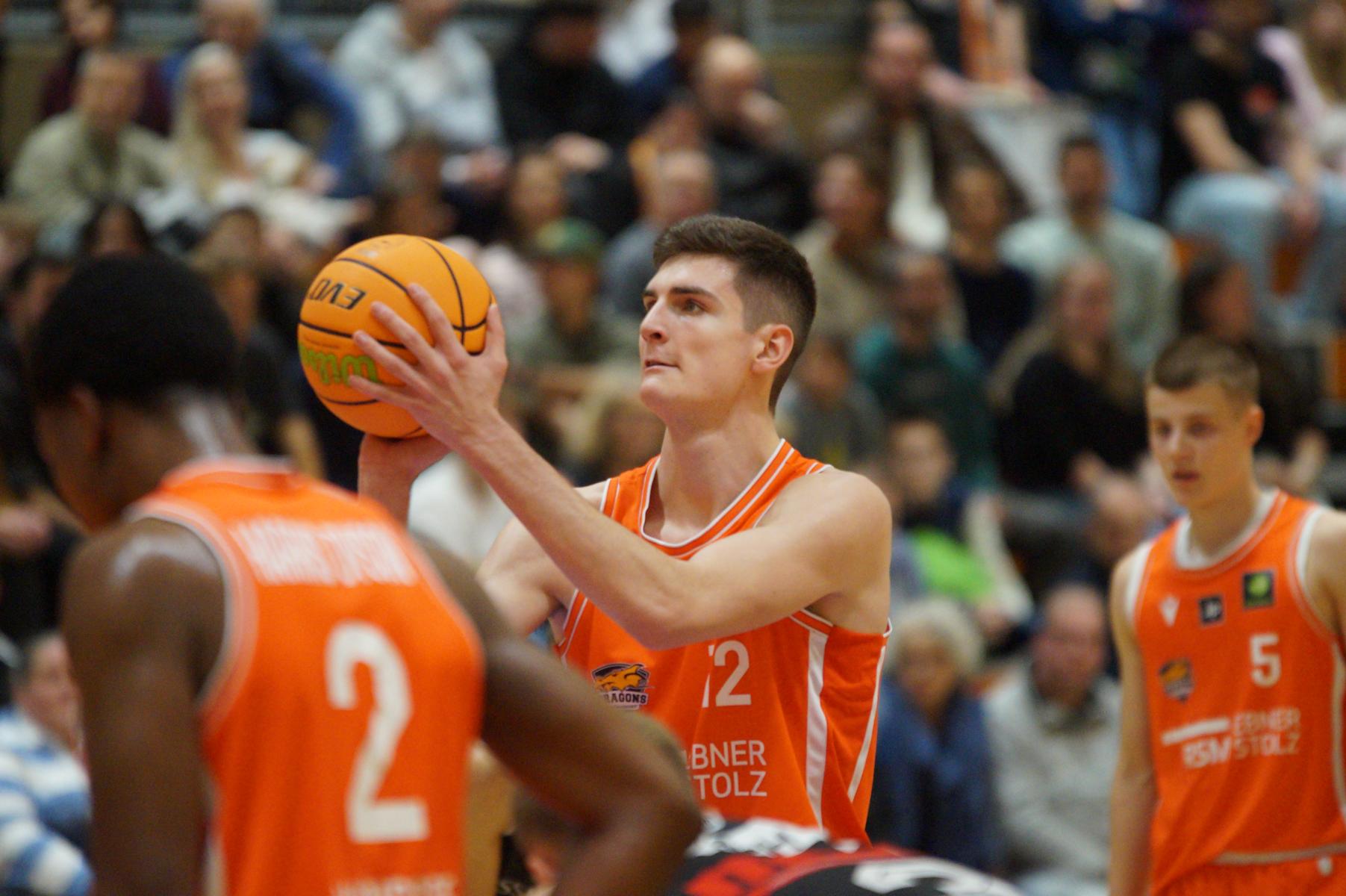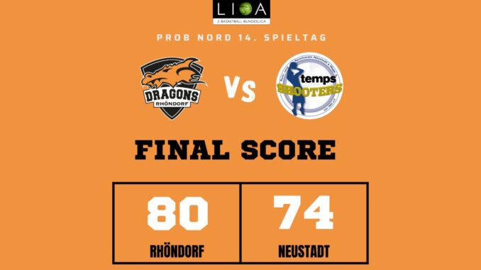 Rhöndorf sorgt am Samstagabend (20.12.2025 ), im gut gefüllten DragonDome, mit einem 80:74-Sieg (49:43) für feierliche Weihnachtsstimmung. Gegen die Neustadt temps Shooters liefern die Dragons über weite Strecken eine konzentrierte Topleistung ab. Es ist der fünfte Heimsieg der laufenden Saison, der die Rheinländer im Hinblick auf die Playoffs in Schlagdistanz hält.
