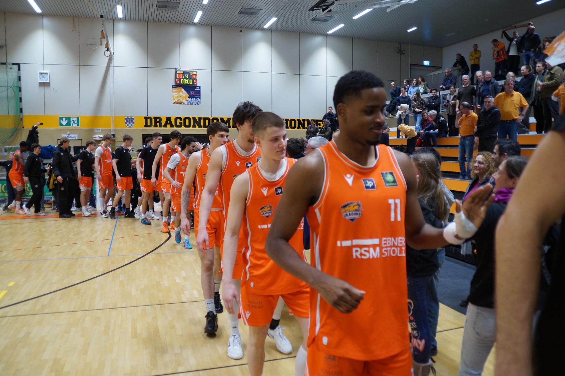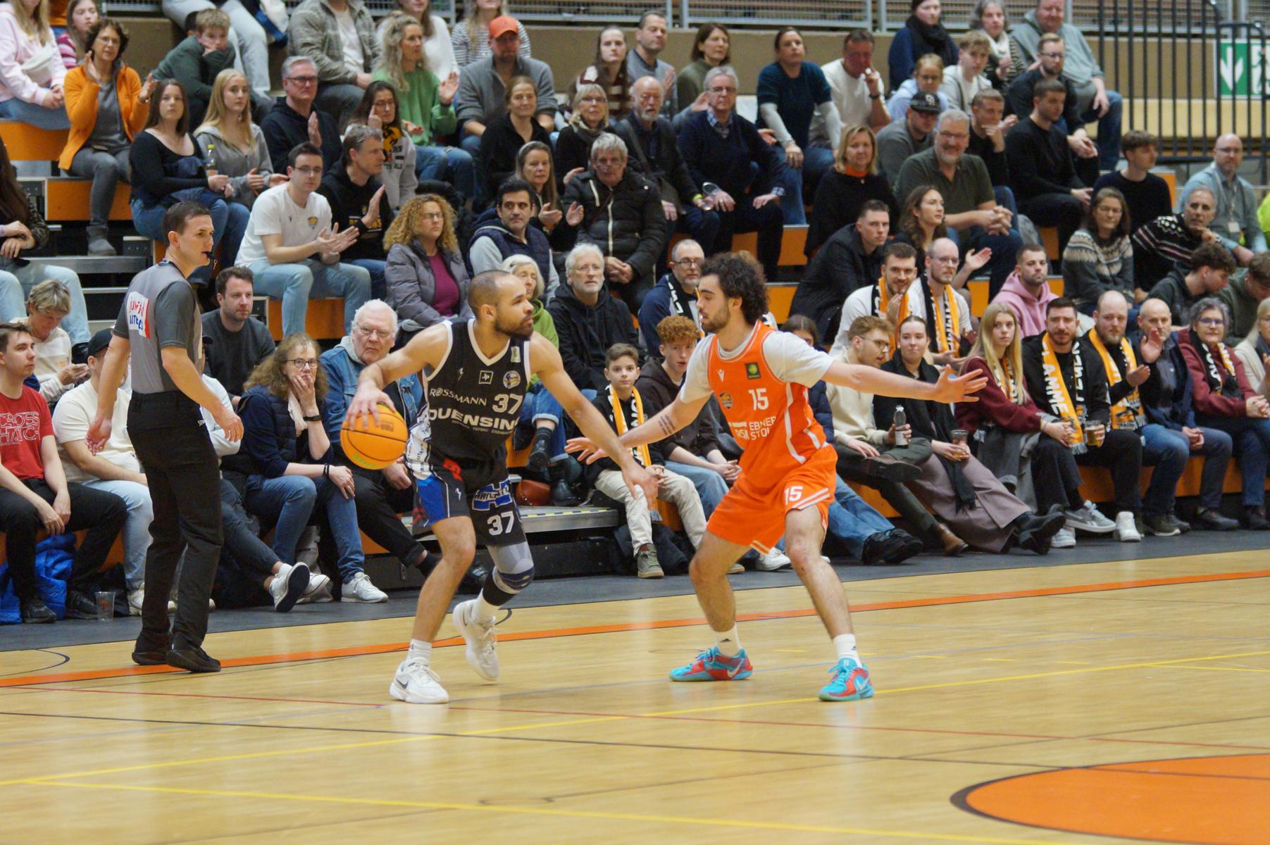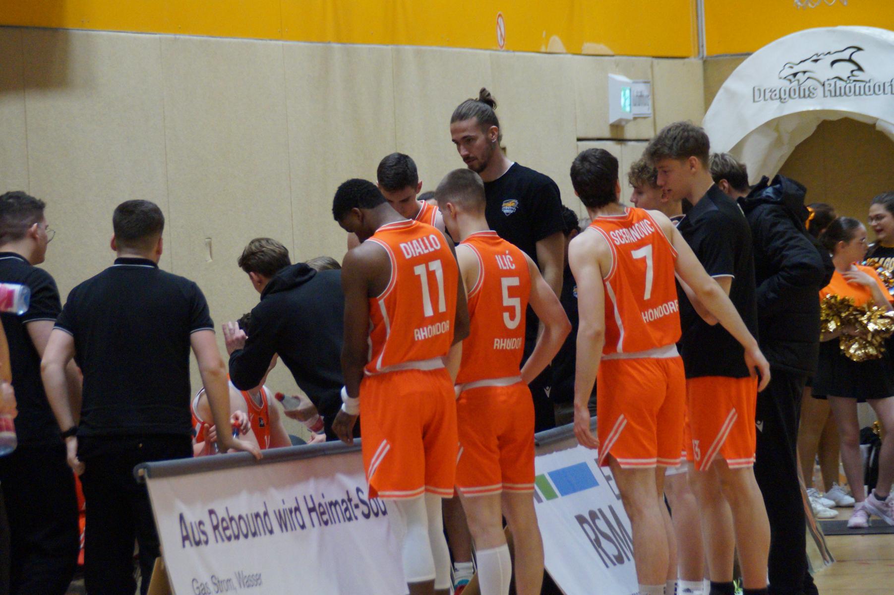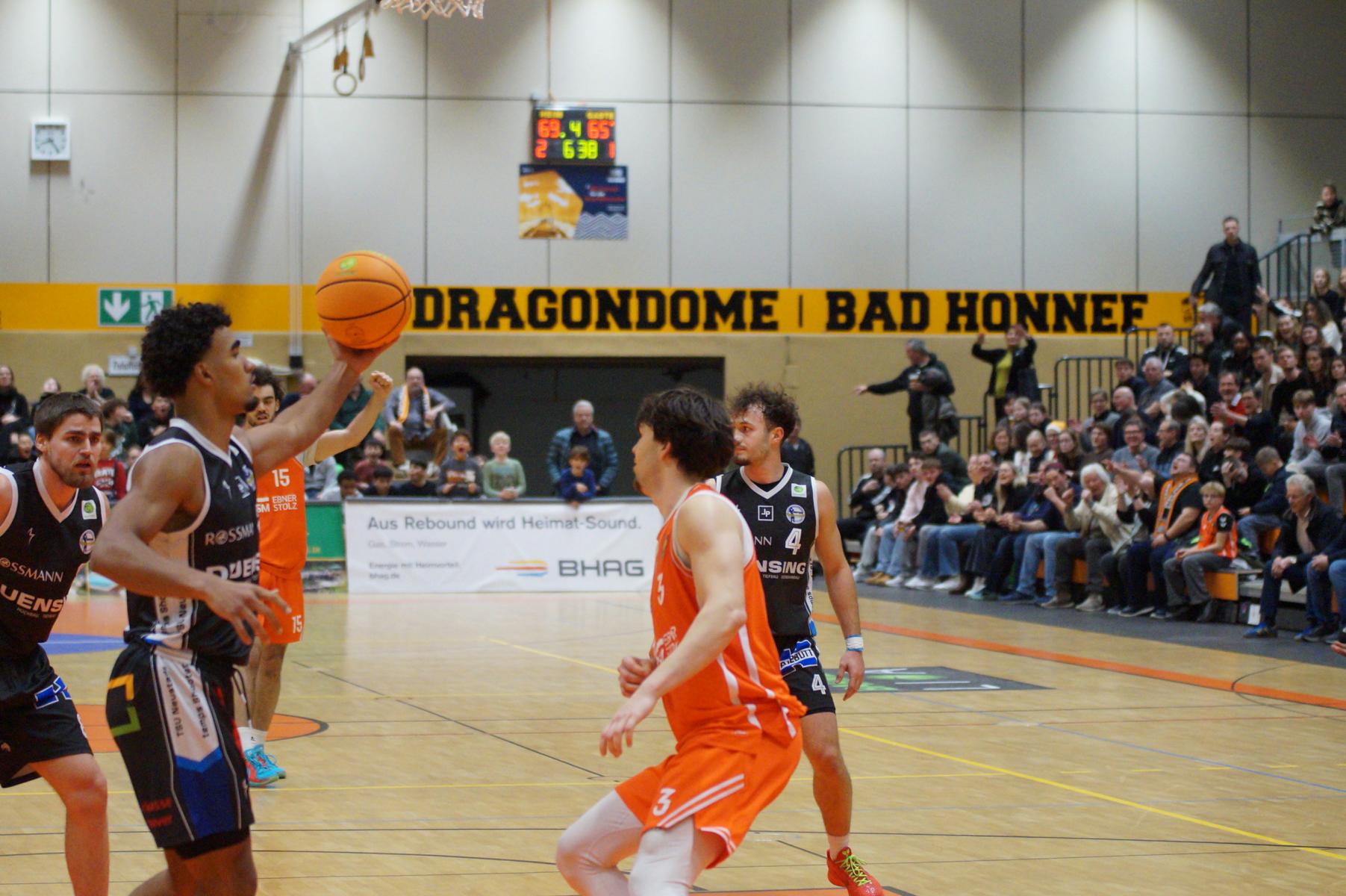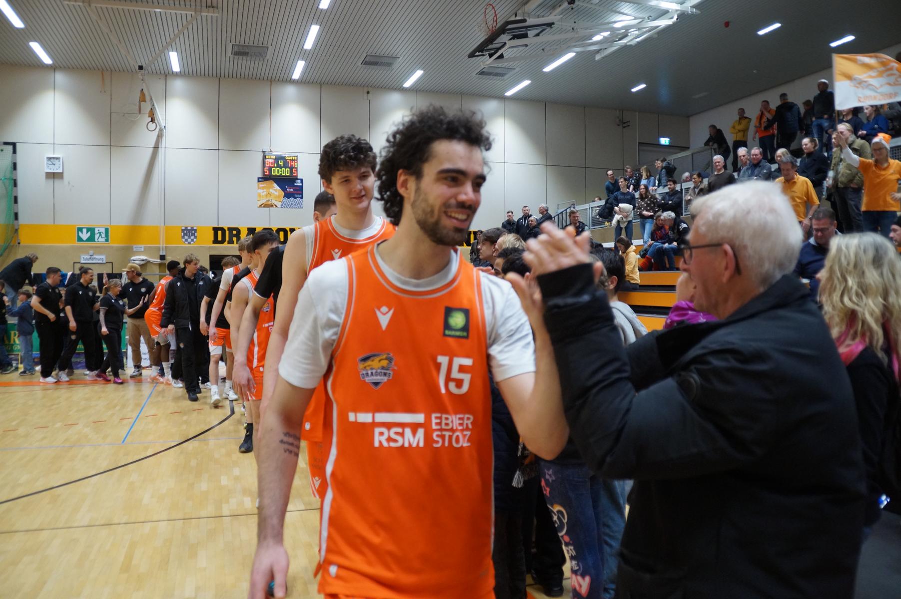Im Abschlussviertel wurde die Begegnung dann zunehmend physischer und hektischer. Die spielerische Qualität sank, aber in kämpferischer Hinsicht blieb das Niveau hoch. Bis in die letzte Minute war es ein enges Duell auf Augenhöhe. In den letzten zwei Minuten erlaubten sich die Dragons schlicht weniger Fehler und Jorge Mejias (18 Pkt.), Topscorer der Begegnung, machte mit vier Punkten den Deckel drauf (80:74). Neben dem Spanier glänzte auf Rhöndorfer Seite einmal mehr Juhwan Harris-Dyson (14 Pkt.), mit spektakulären Flugeinlagen sowie Vuk Scepanovic (13 Pkt.) als Scharfschütze aus der Distanz. Rhöndorfs Wurfquoten waren insgesamt überzeugend (2er 59% / 3er 30%), lediglich an der Freiwurflinie ließen sie dagegen einmal mehr zu viel liegen (9/18 50%), was diesmal allerdings nicht einscheidend war. Bei Neustadt zählten Aimé Olma (14 Pkt.), Emil Loch (16 Pkt.), Samuel Mpacko (11 Pkt.) und Elias Marei (10 Pkt.) zu den auffälligsten Akteuren.