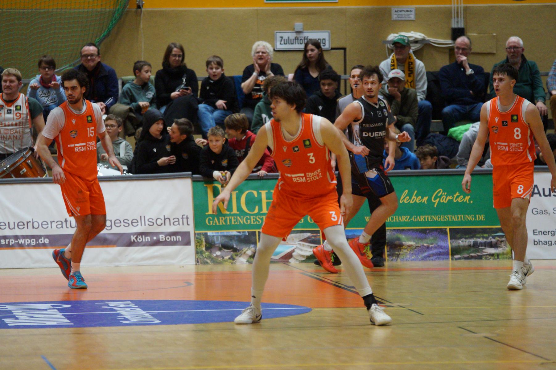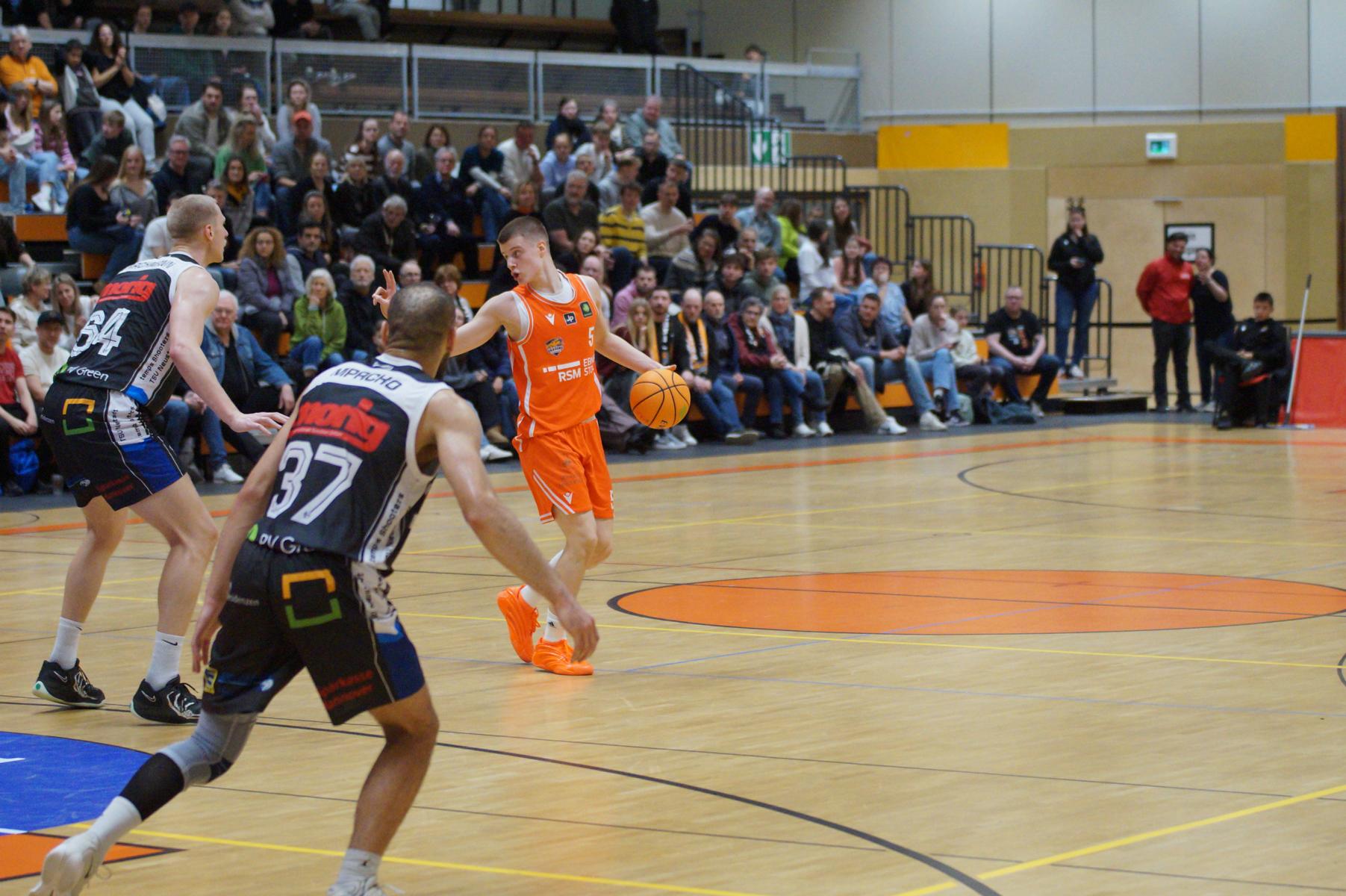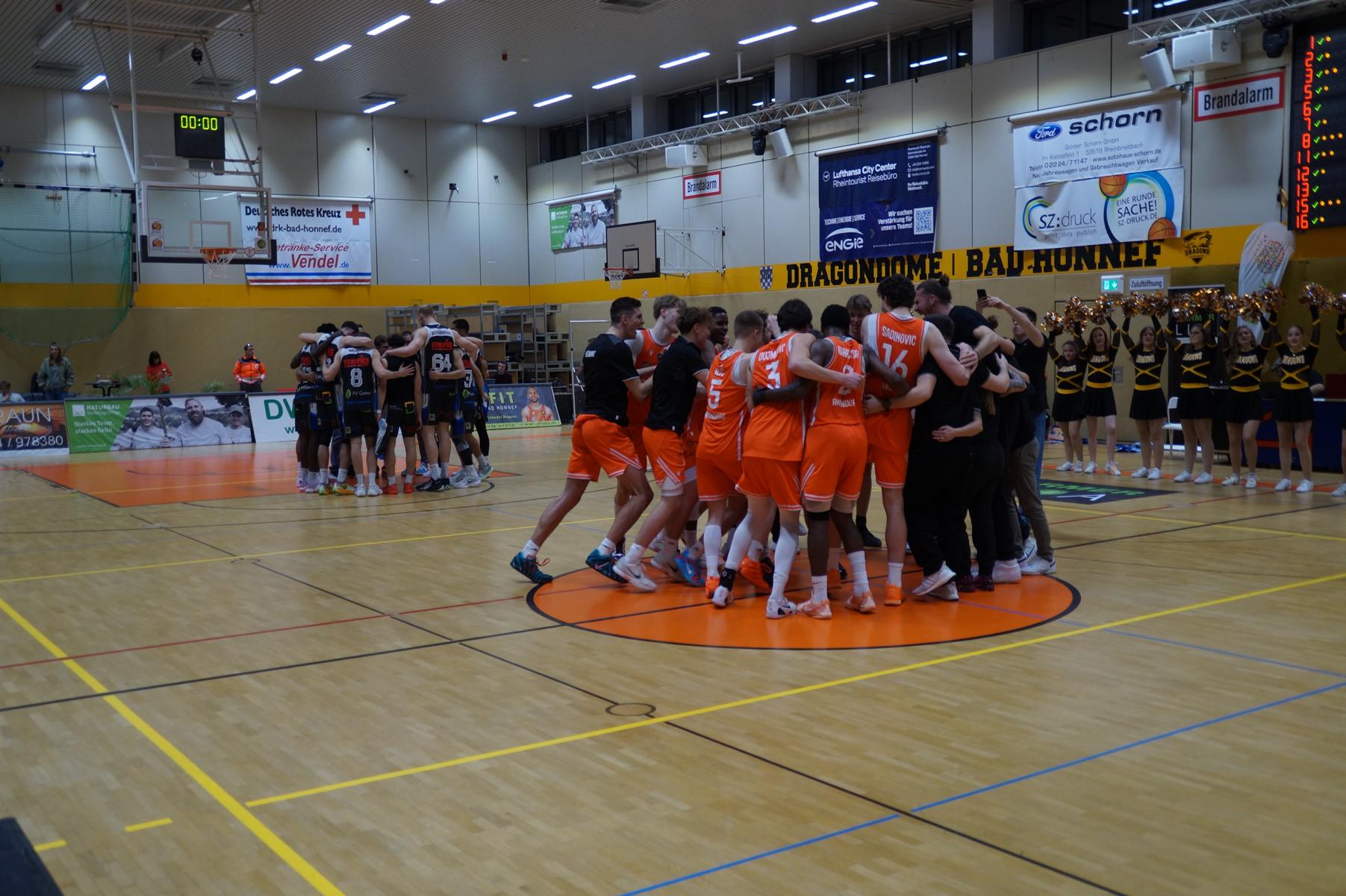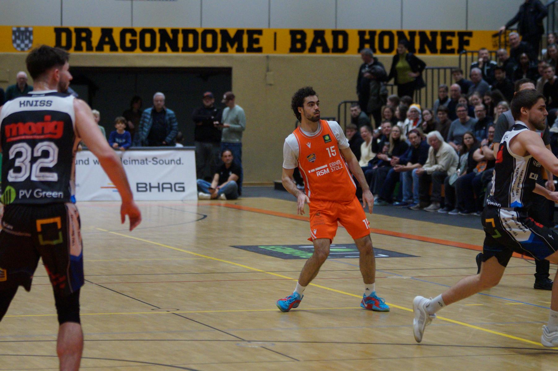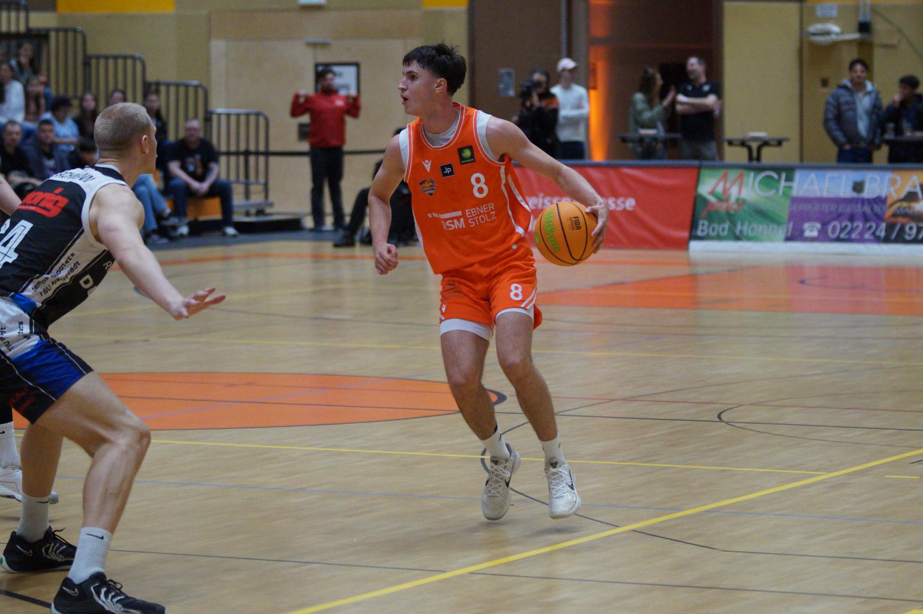 Im Abschlussviertel wurde die Begegnung dann zunehmend physischer und hektischer. Die spielerische Qualität sank, aber in kämpferischer Hinsicht blieb das Niveau hoch. Bis in die letzte Minute war es ein enges Duell auf Augenhöhe. In den letzten zwei Minuten erlaubten sich die Dragons schlicht weniger Fehler und Jorge Mejias (18 Pkt.), Topscorer der Begegnung, machte mit vier Punkten den Deckel drauf (80:74). Neben dem Spanier glänzte auf Rhöndorfer Seite einmal mehr Juhwan Harris-Dyson (14 Pkt.), mit spektakulären Flugeinlagen sowie Vuk Scepanovic (13 Pkt.) als Scharfschütze aus der Distanz. Rhöndorfs Wurfquoten waren insgesamt überzeugend (2er 59% / 3er 30%), lediglich an der Freiwurflinie ließen sie dagegen einmal mehr zu viel liegen (9/18 50%), was diesmal allerdings nicht einscheidend war. Bei Neustadt zählten Aimé Olma (14 Pkt.), Emil Loch (16 Pkt.), Samuel Mpacko (11 Pkt.) und Elias Marei (10 Pkt.) zu den auffälligsten Akteuren.