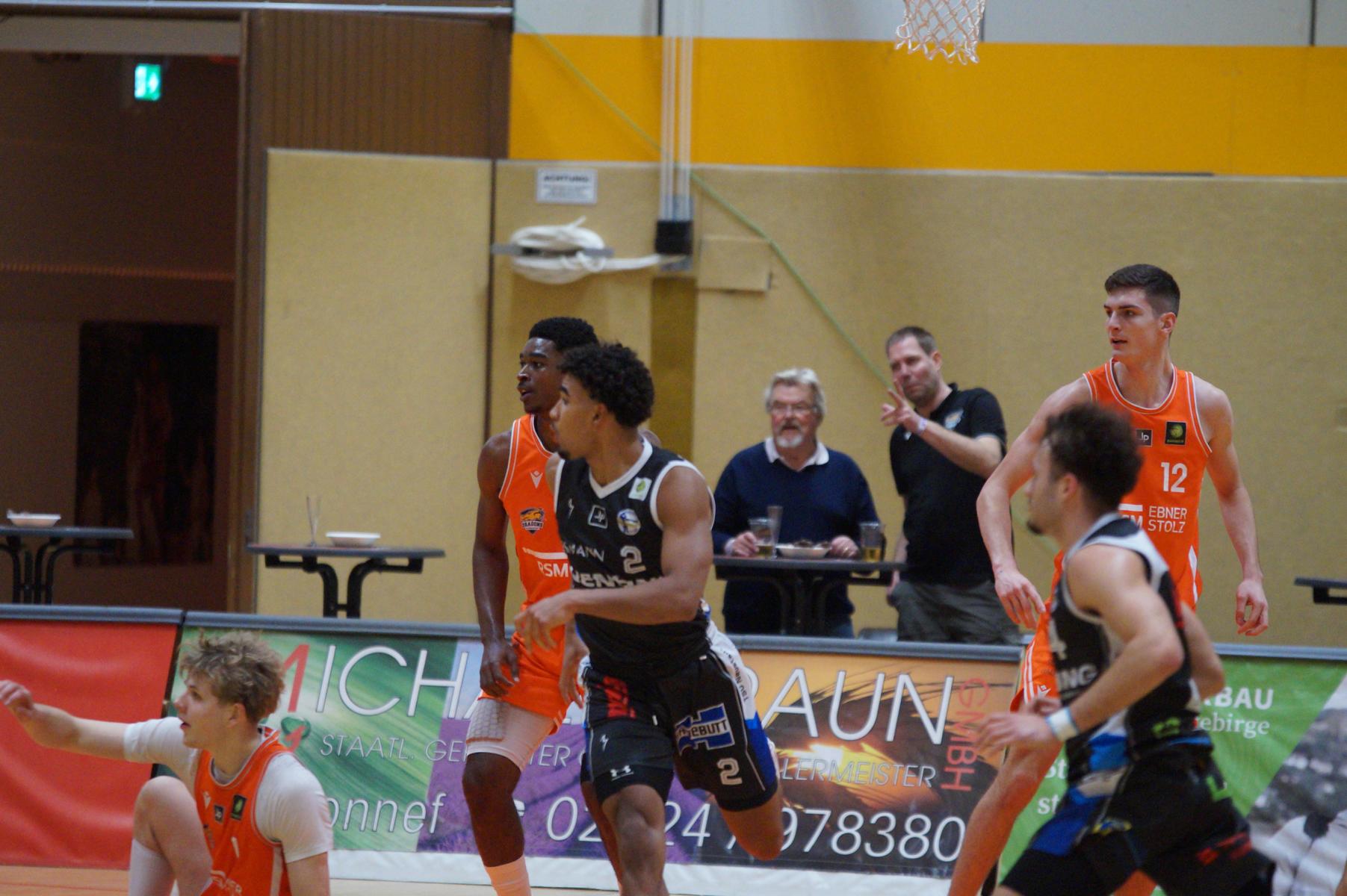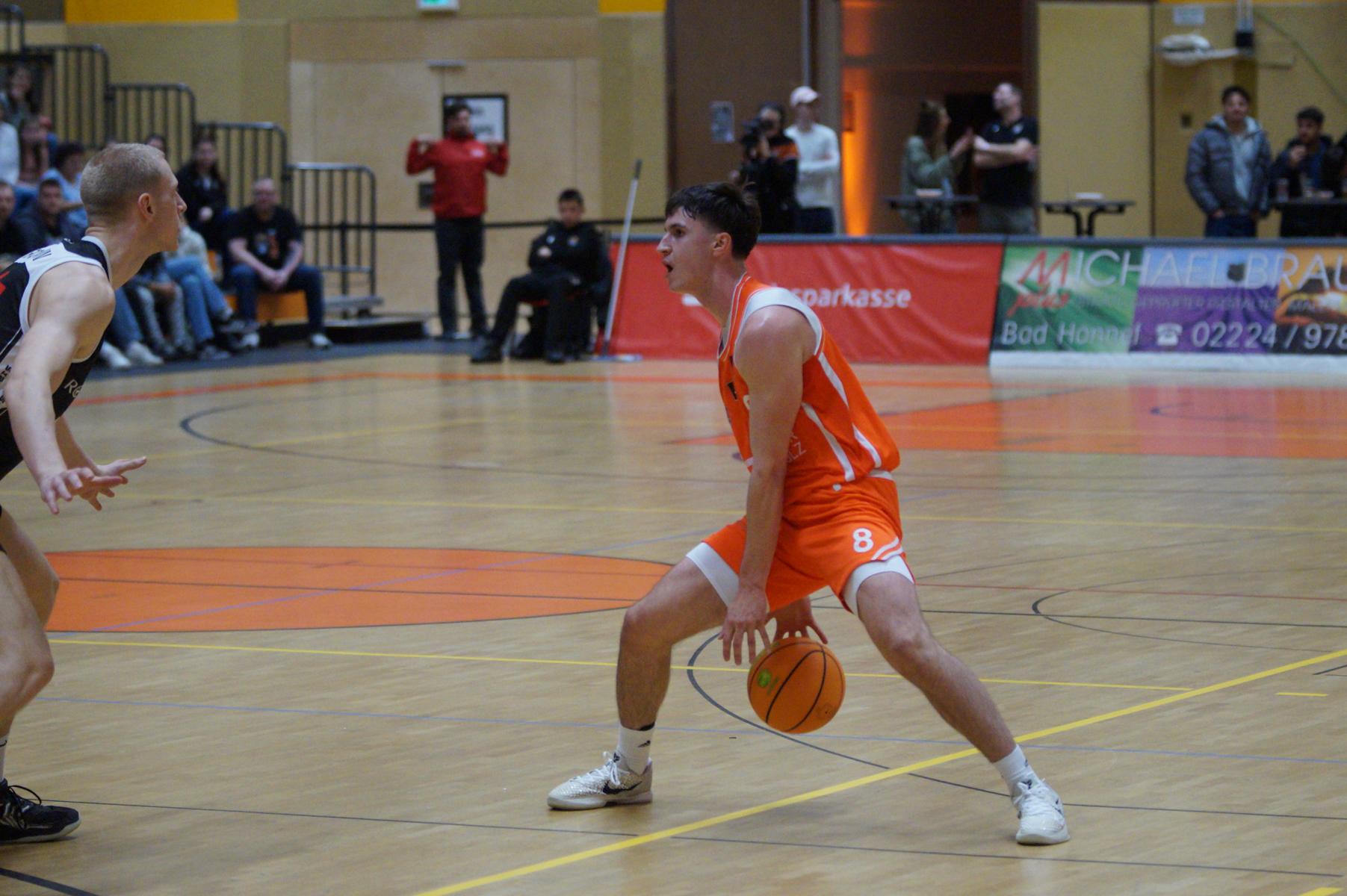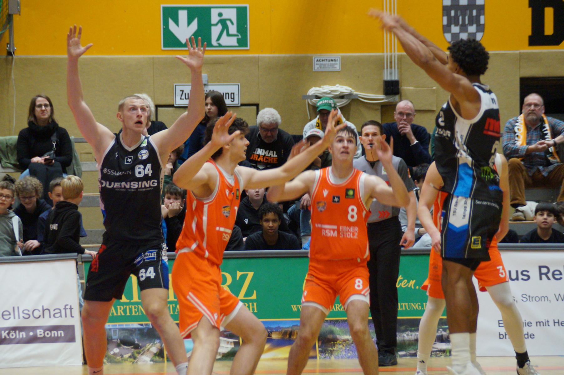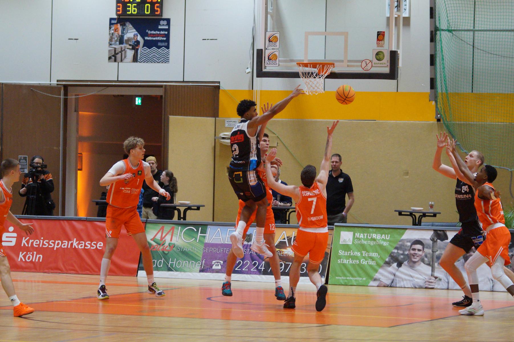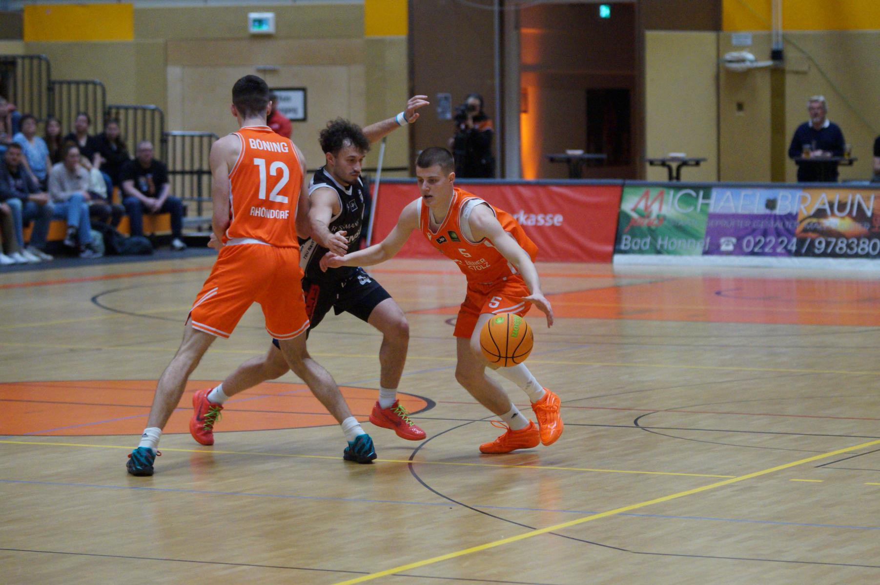 Im Abschlussviertel wurde die Begegnung dann zunehmend physischer und hektischer. Die spielerische Qualität sank, aber in kämpferischer Hinsicht blieb das Niveau hoch. Bis in die letzte Minute war es ein enges Duell auf Augenhöhe. In den letzten zwei Minuten erlaubten sich die Dragons schlicht weniger Fehler und Jorge Mejias (18 Pkt.), Topscorer der Begegnung, machte mit vier Punkten den Deckel drauf (80:74). Neben dem Spanier glänzte auf Rhöndorfer Seite einmal mehr Juhwan Harris-Dyson (14 Pkt.), mit spektakulären Flugeinlagen sowie Vuk Scepanovic (13 Pkt.) als Scharfschütze aus der Distanz. Rhöndorfs Wurfquoten waren insgesamt überzeugend (2er 59% / 3er 30%), lediglich an der Freiwurflinie ließen sie dagegen einmal mehr zu viel liegen (9/18 50%), was diesmal allerdings nicht einscheidend war. Bei Neustadt zählten Aimé Olma (14 Pkt.), Emil Loch (16 Pkt.), Samuel Mpacko (11 Pkt.) und Elias Marei (10 Pkt.) zu den auffälligsten Akteuren.