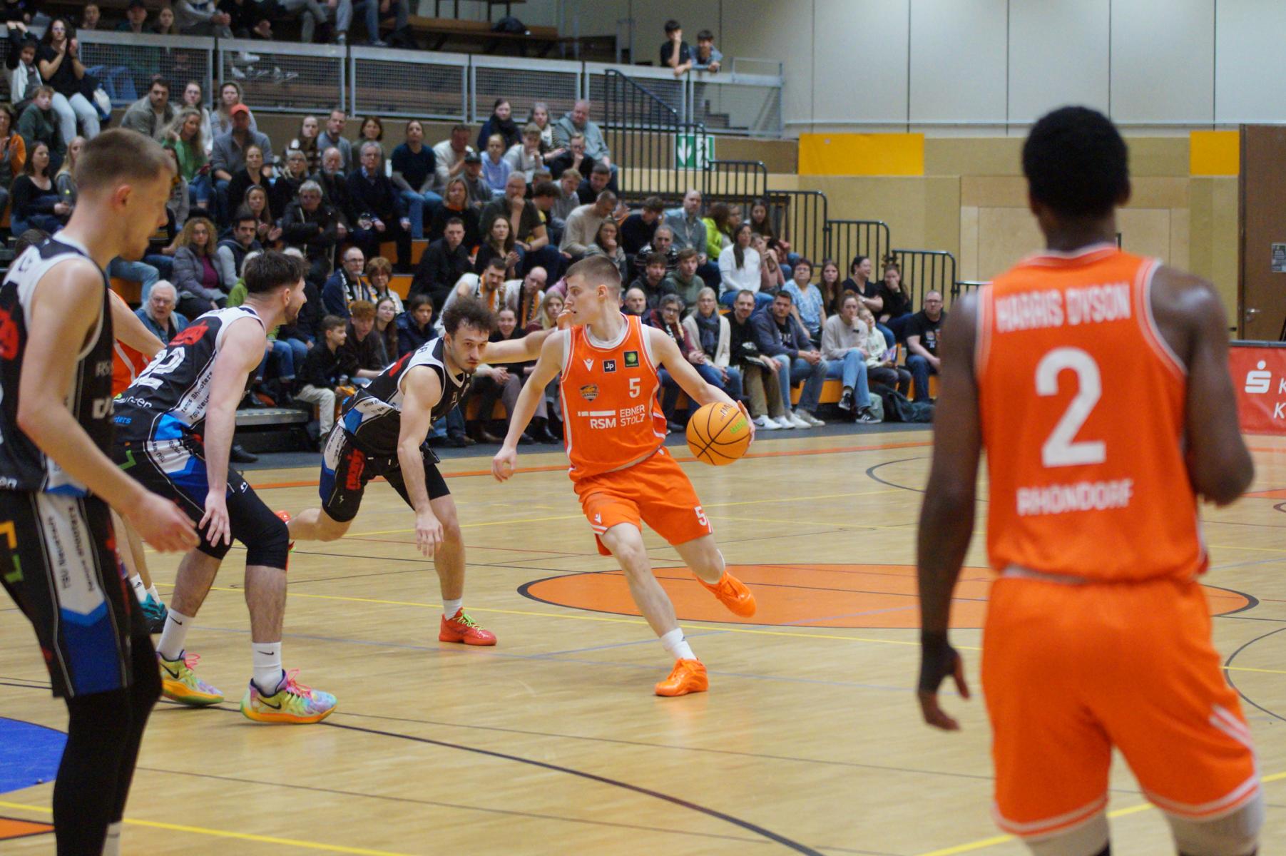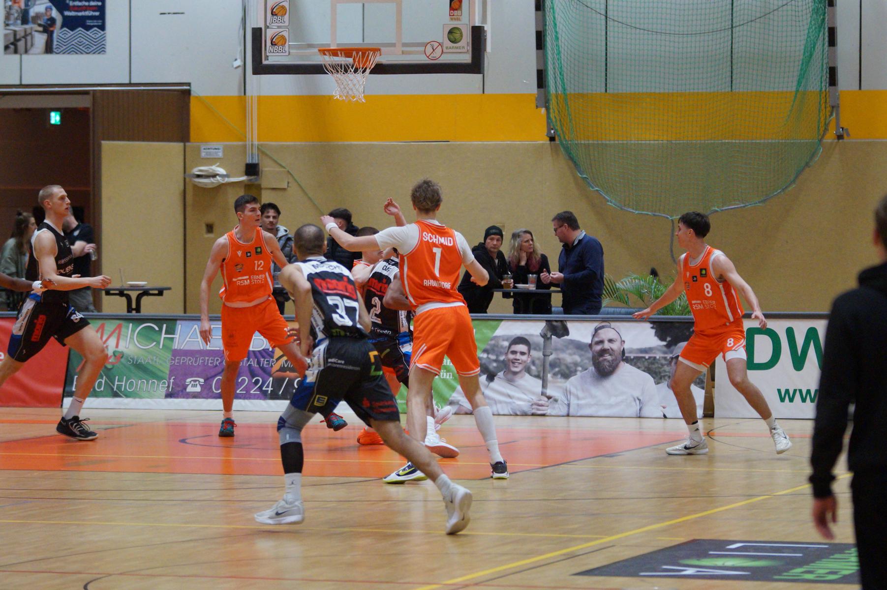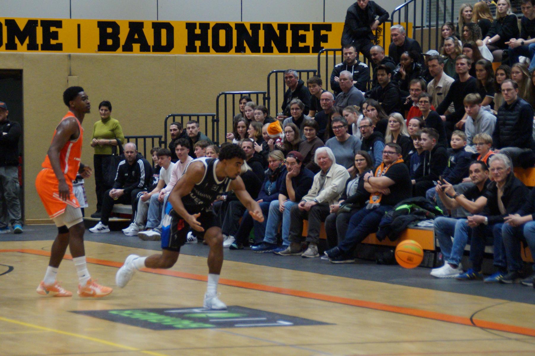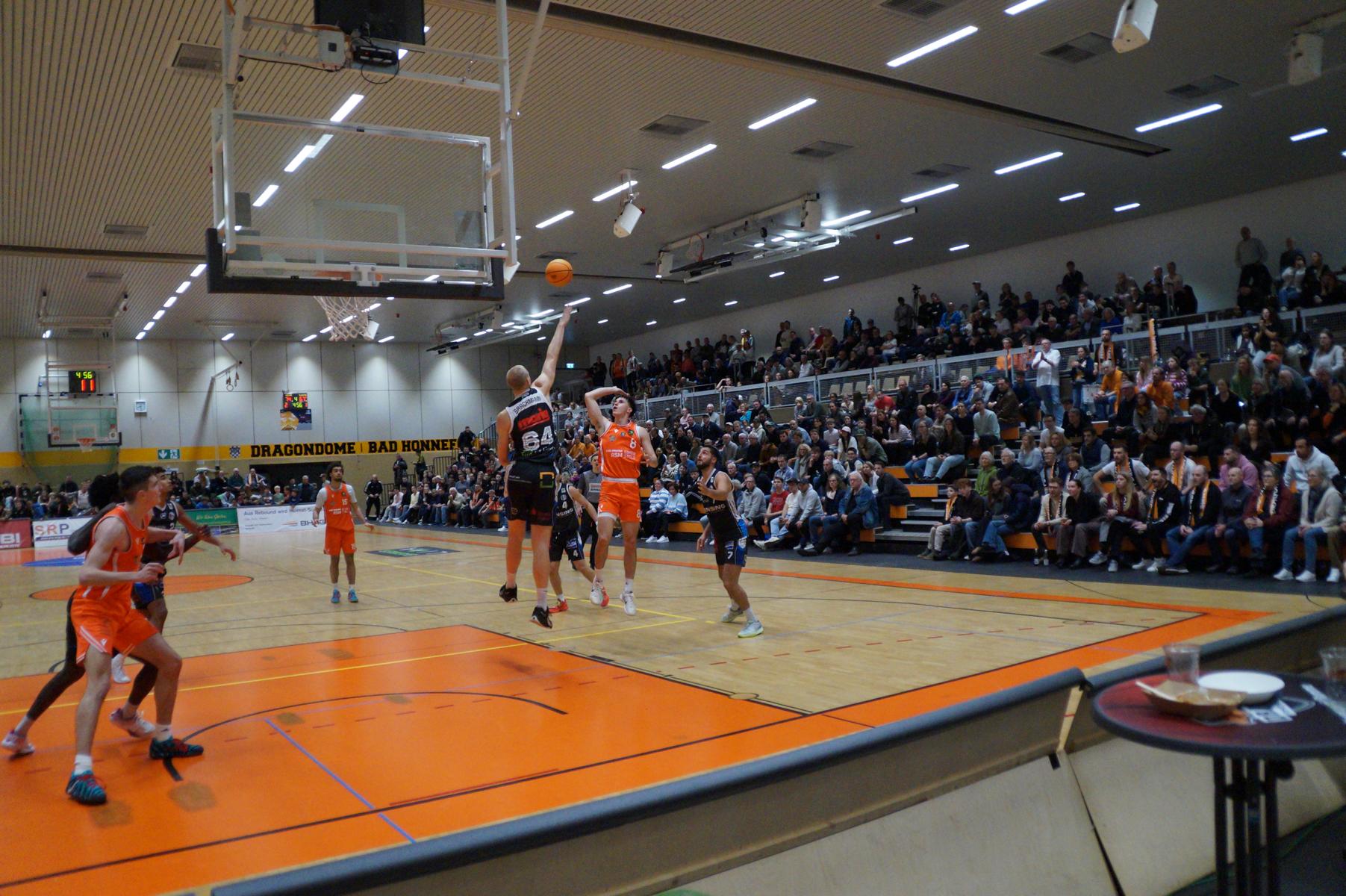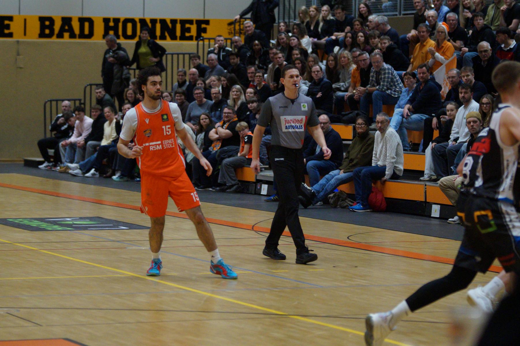 Im Abschlussviertel wurde die Begegnung dann zunehmend physischer und hektischer. Die spielerische Qualität sank, aber in kämpferischer Hinsicht blieb das Niveau hoch. Bis in die letzte Minute war es ein enges Duell auf Augenhöhe. In den letzten zwei Minuten erlaubten sich die Dragons schlicht weniger Fehler und Jorge Mejias (18 Pkt.), Topscorer der Begegnung, machte mit vier Punkten den Deckel drauf (80:74). Neben dem Spanier glänzte auf Rhöndorfer Seite einmal mehr Juhwan Harris-Dyson (14 Pkt.), mit spektakulären Flugeinlagen sowie Vuk Scepanovic (13 Pkt.) als Scharfschütze aus der Distanz. Rhöndorfs Wurfquoten waren insgesamt überzeugend (2er 59% / 3er 30%), lediglich an der Freiwurflinie ließen sie dagegen einmal mehr zu viel liegen (9/18 50%), was diesmal allerdings nicht einscheidend war. Bei Neustadt zählten Aimé Olma (14 Pkt.), Emil Loch (16 Pkt.), Samuel Mpacko (11 Pkt.) und Elias Marei (10 Pkt.) zu den auffälligsten Akteuren.