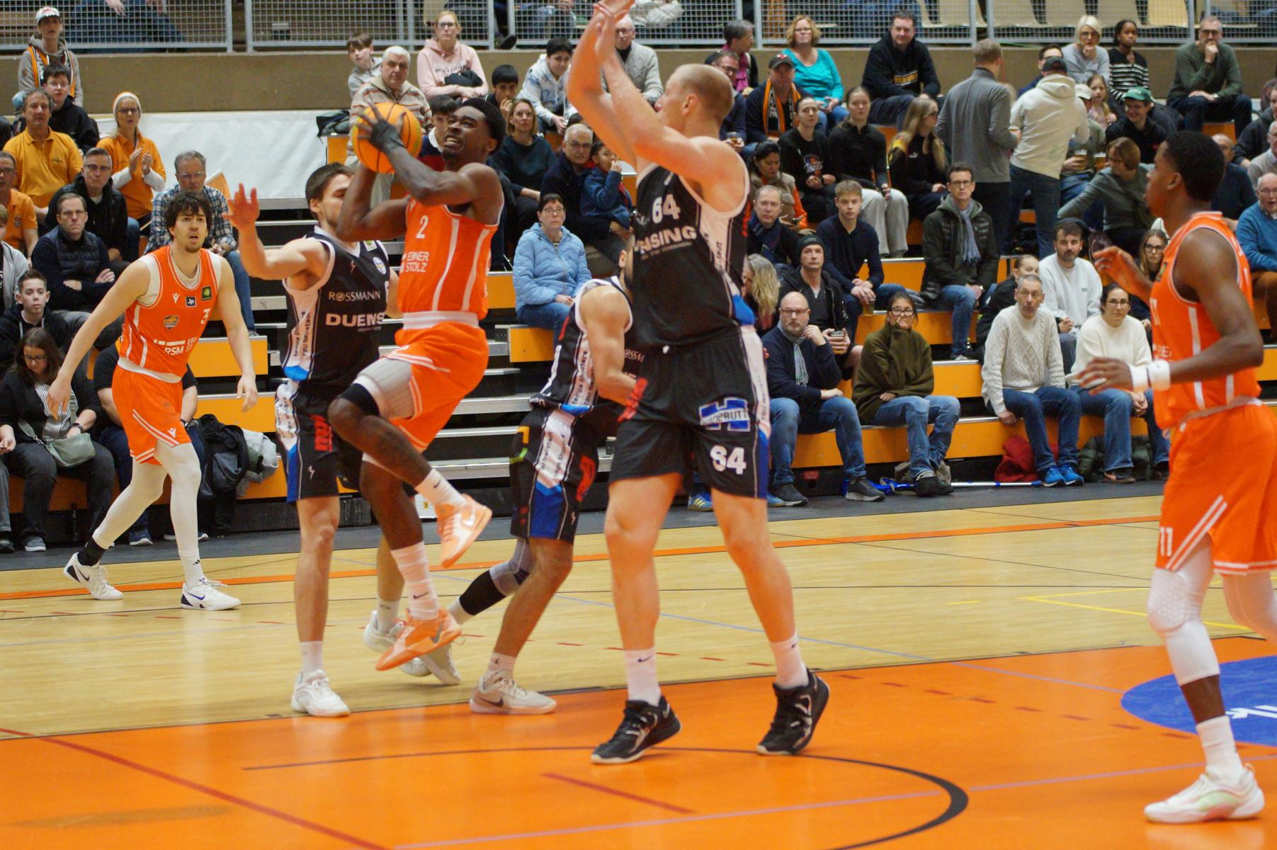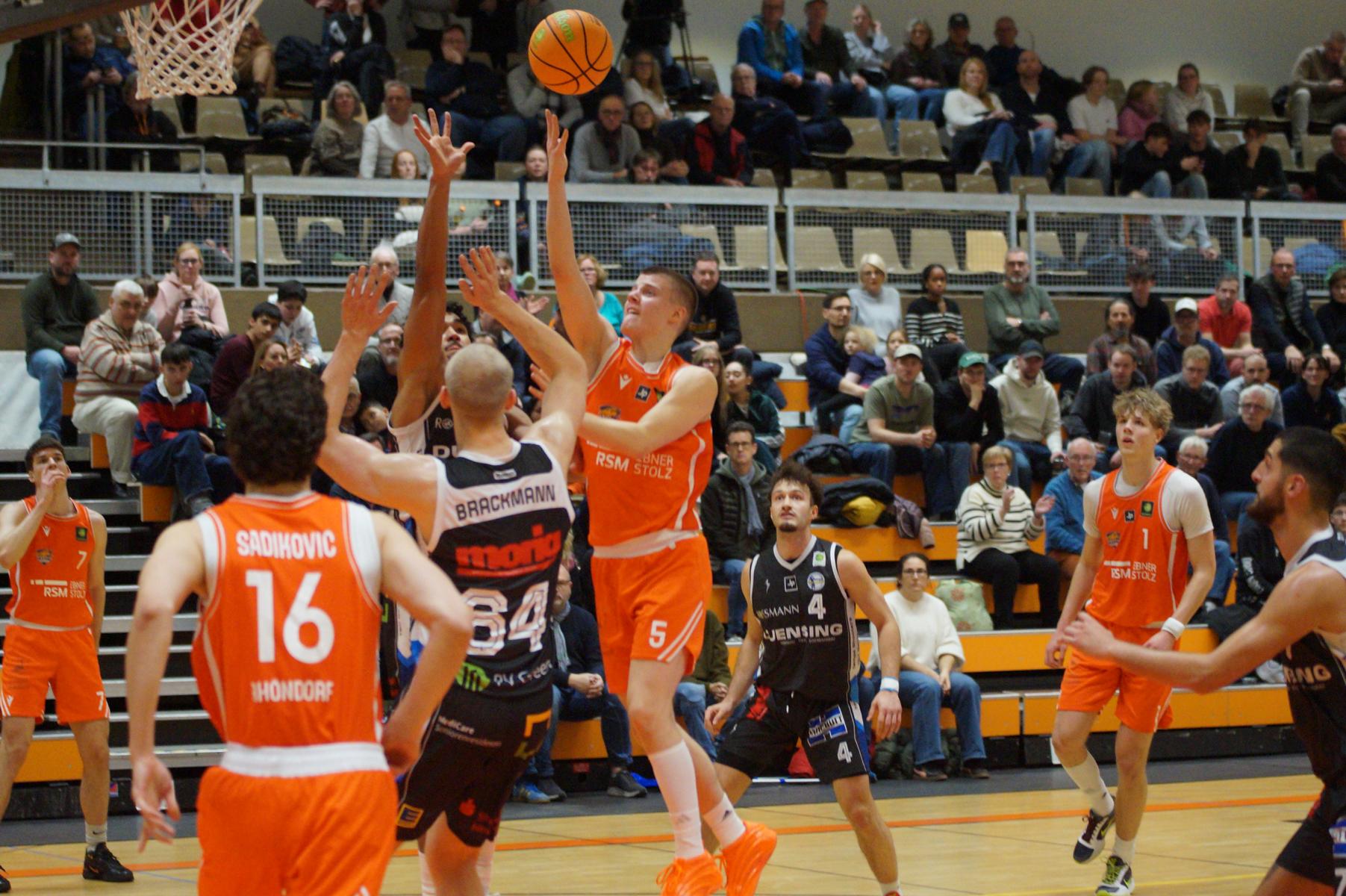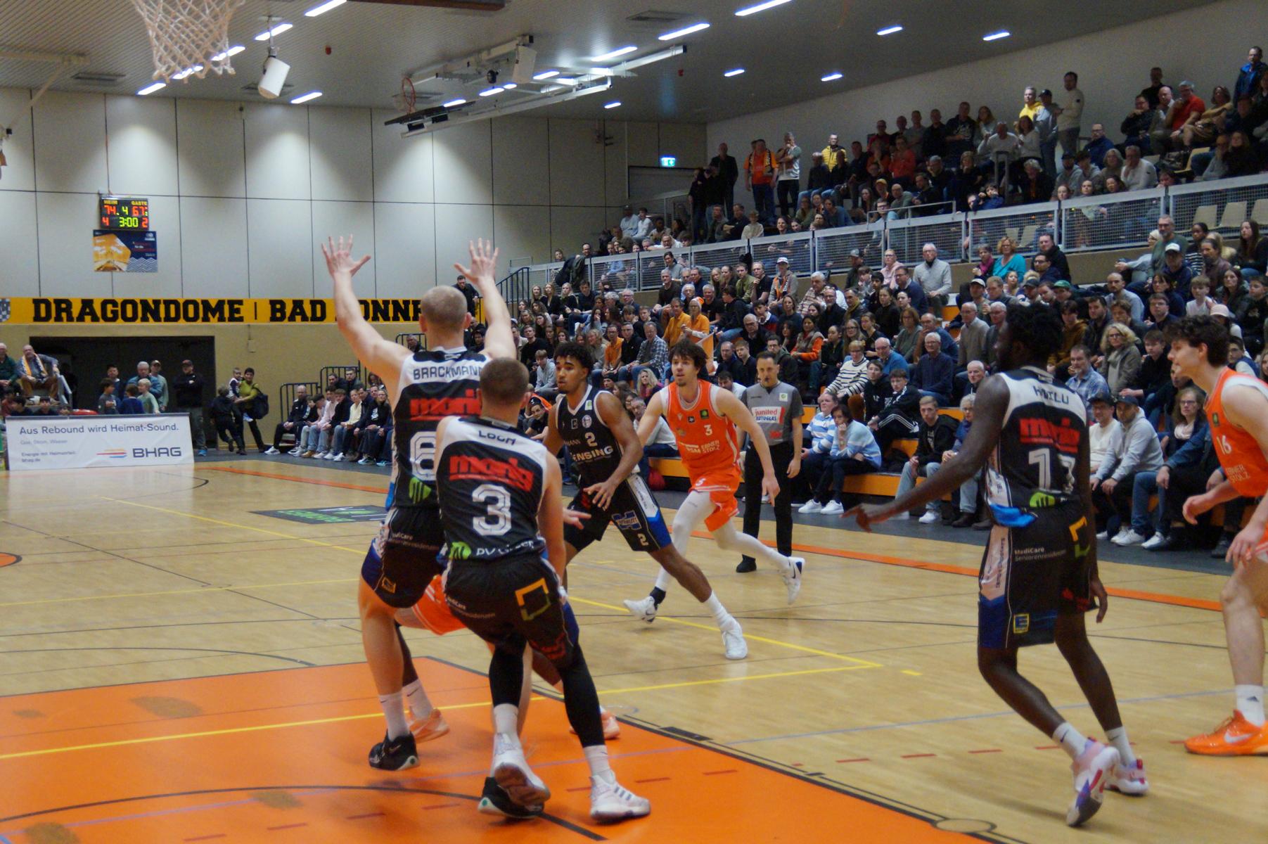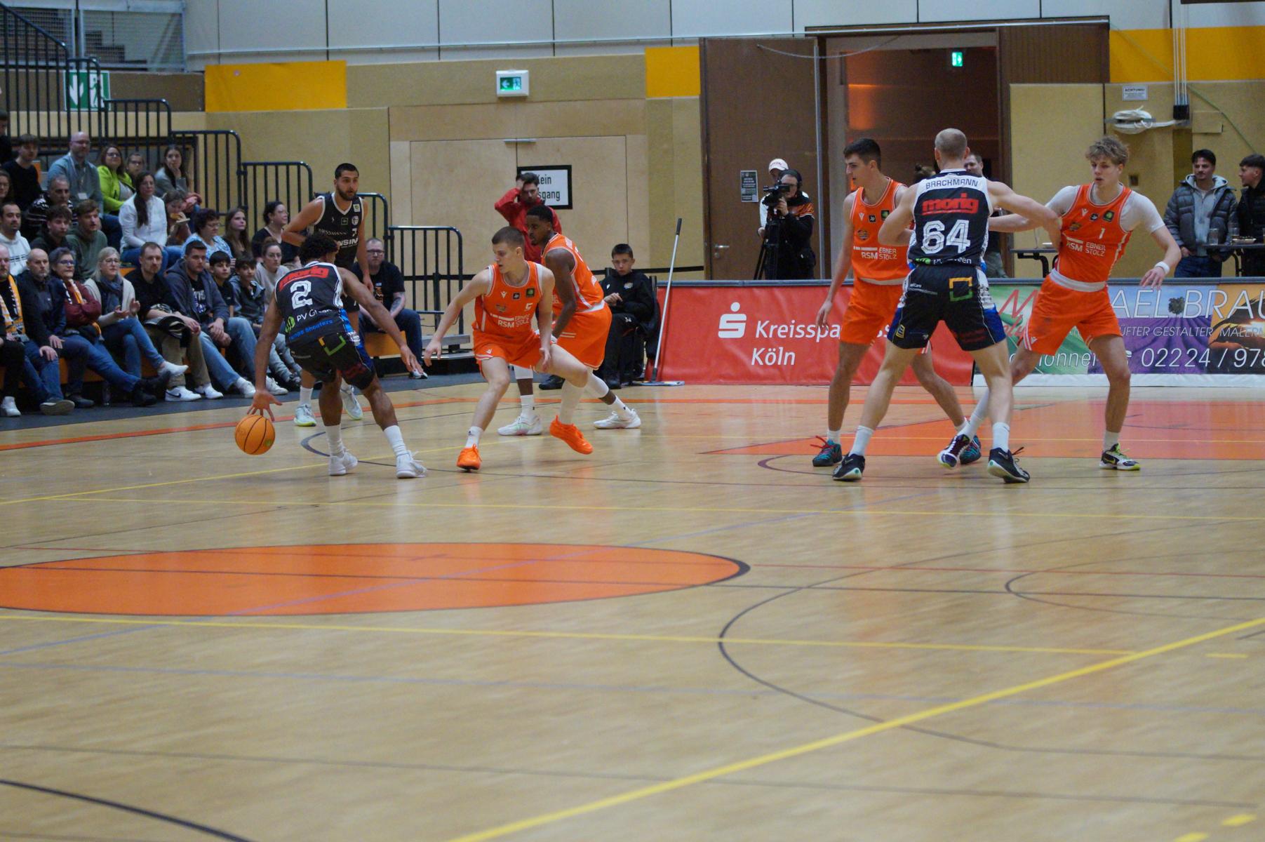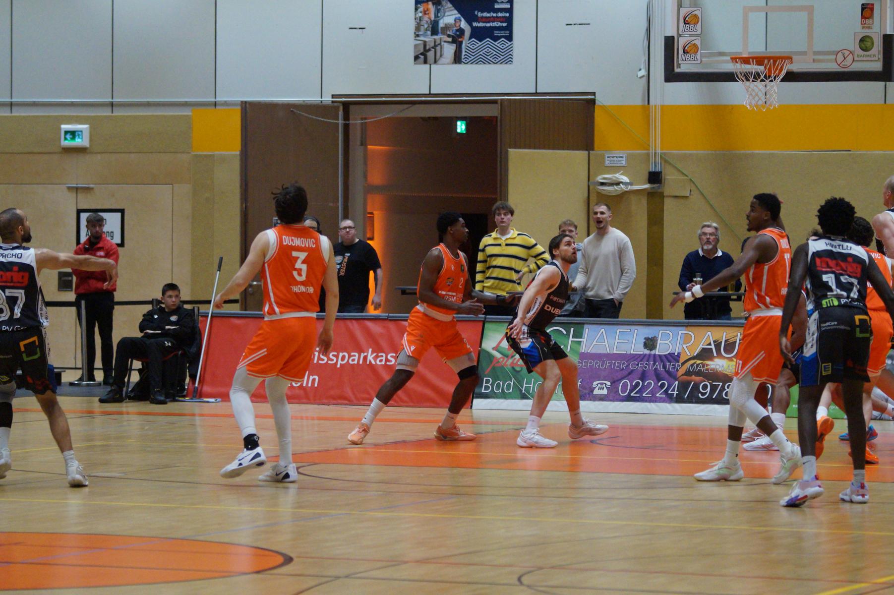 Im Abschlussviertel wurde die Begegnung dann zunehmend physischer und hektischer. Die spielerische Qualität sank, aber in kämpferischer Hinsicht blieb das Niveau hoch. Bis in die letzte Minute war es ein enges Duell auf Augenhöhe. In den letzten zwei Minuten erlaubten sich die Dragons schlicht weniger Fehler und Jorge Mejias (18 Pkt.), Topscorer der Begegnung, machte mit vier Punkten den Deckel drauf (80:74). Neben dem Spanier glänzte auf Rhöndorfer Seite einmal mehr Juhwan Harris-Dyson (14 Pkt.), mit spektakulären Flugeinlagen sowie Vuk Scepanovic (13 Pkt.) als Scharfschütze aus der Distanz. Rhöndorfs Wurfquoten waren insgesamt überzeugend (2er 59% / 3er 30%), lediglich an der Freiwurflinie ließen sie dagegen einmal mehr zu viel liegen (9/18 50%), was diesmal allerdings nicht einscheidend war. Bei Neustadt zählten Aimé Olma (14 Pkt.), Emil Loch (16 Pkt.), Samuel Mpacko (11 Pkt.) und Elias Marei (10 Pkt.) zu den auffälligsten Akteuren.