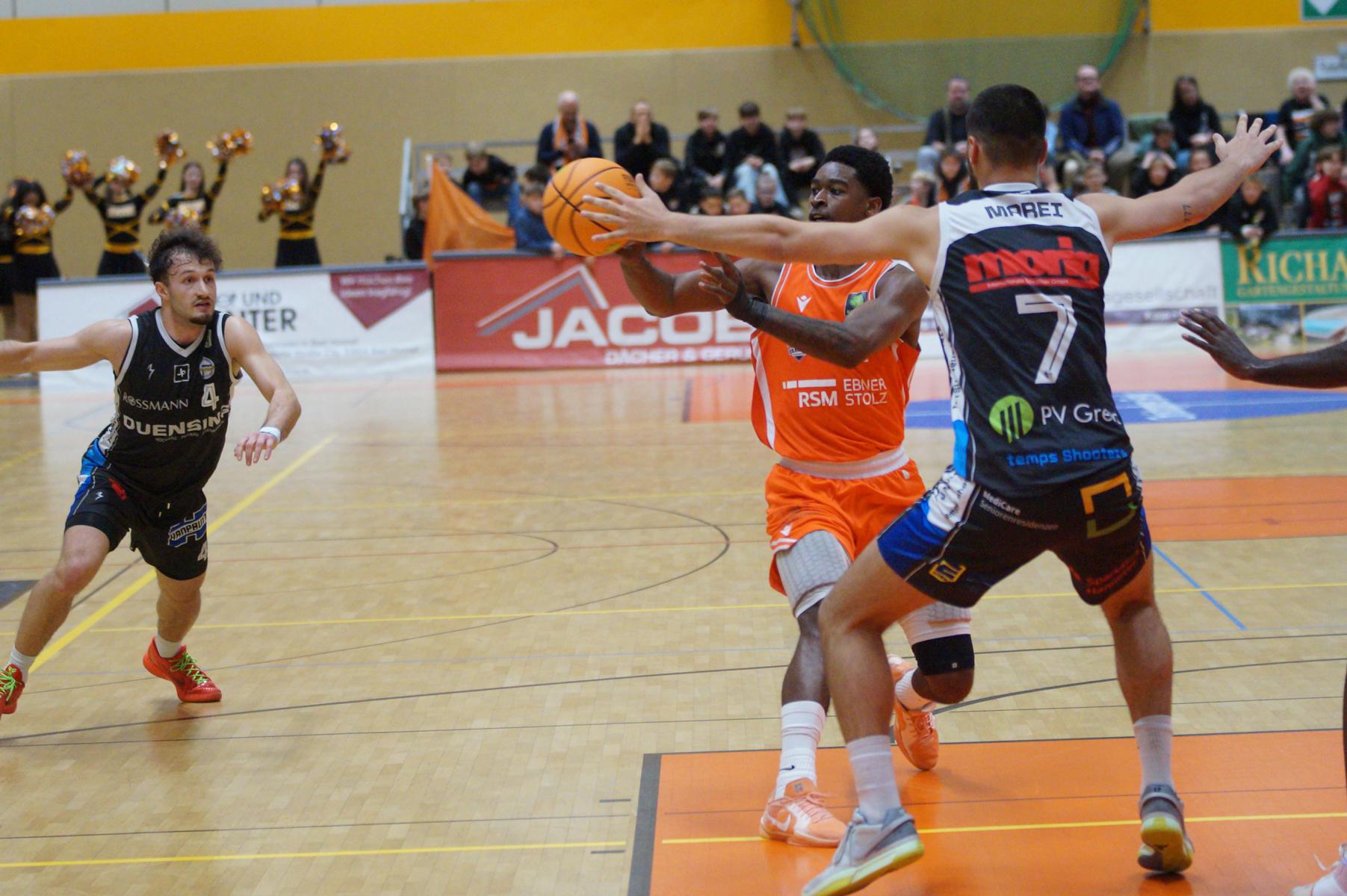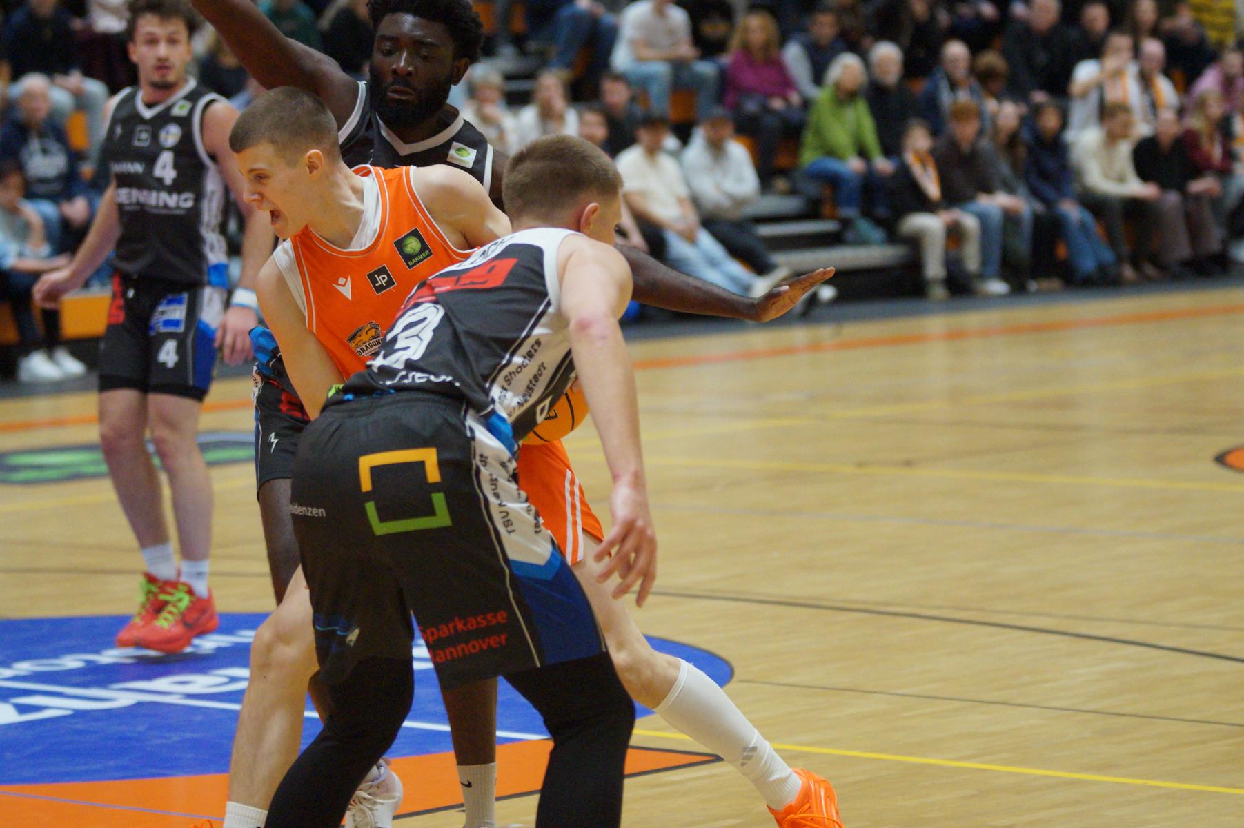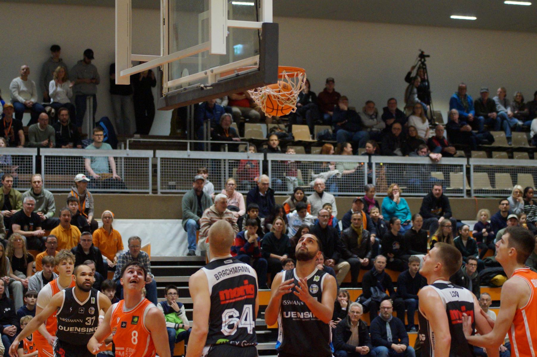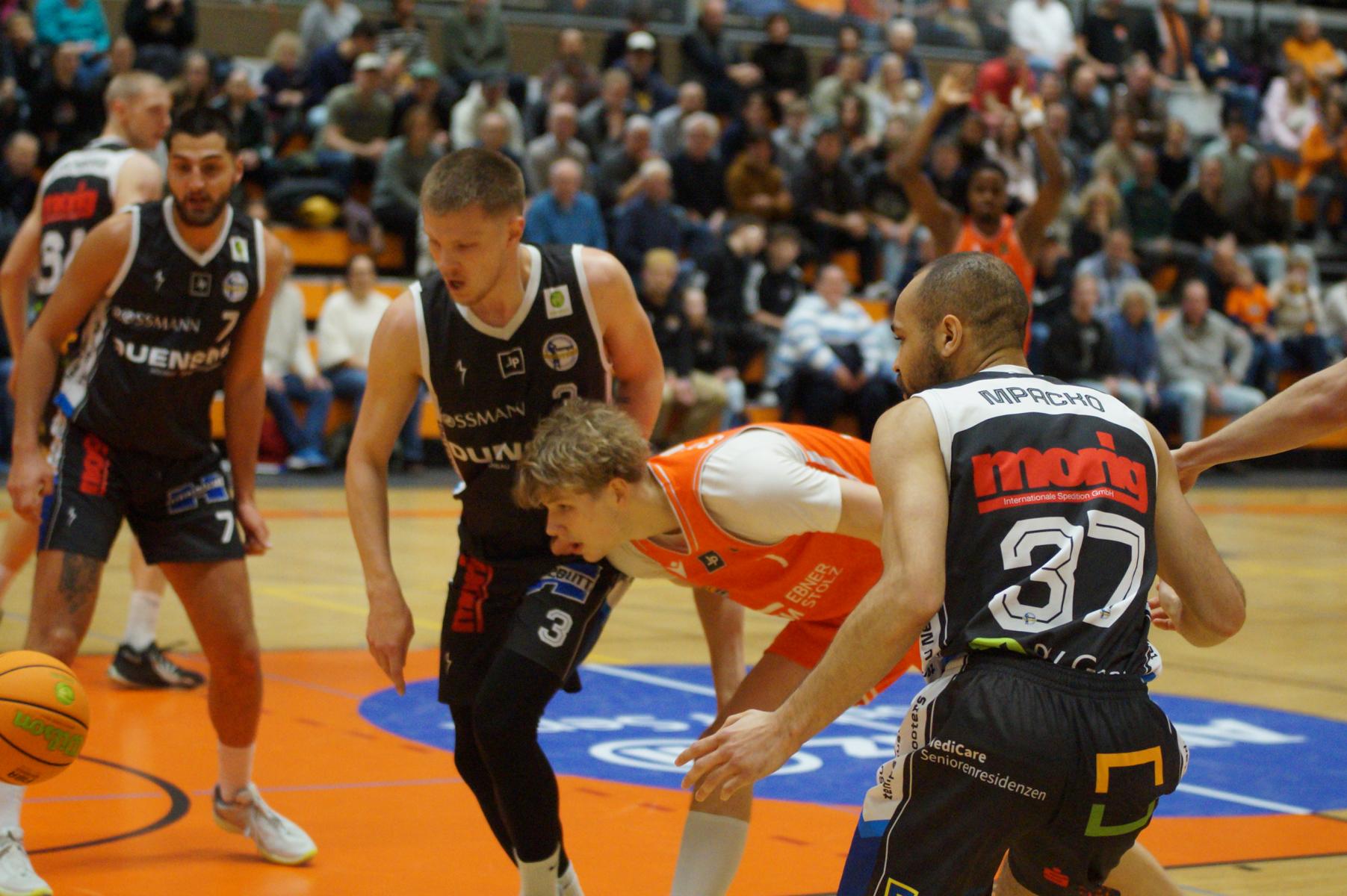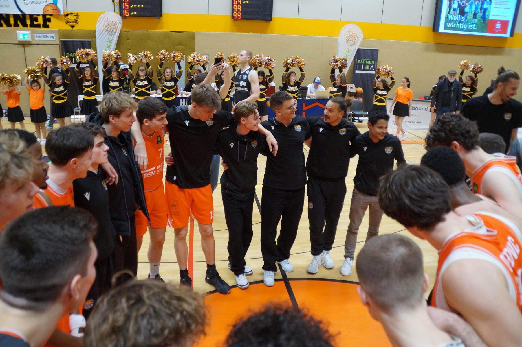 Im Abschlussviertel wurde die Begegnung dann zunehmend physischer und hektischer. Die spielerische Qualität sank, aber in kämpferischer Hinsicht blieb das Niveau hoch. Bis in die letzte Minute war es ein enges Duell auf Augenhöhe. In den letzten zwei Minuten erlaubten sich die Dragons schlicht weniger Fehler und Jorge Mejias (18 Pkt.), Topscorer der Begegnung, machte mit vier Punkten den Deckel drauf (80:74). Neben dem Spanier glänzte auf Rhöndorfer Seite einmal mehr Juhwan Harris-Dyson (14 Pkt.), mit spektakulären Flugeinlagen sowie Vuk Scepanovic (13 Pkt.) als Scharfschütze aus der Distanz. Rhöndorfs Wurfquoten waren insgesamt überzeugend (2er 59% / 3er 30%), lediglich an der Freiwurflinie ließen sie dagegen einmal mehr zu viel liegen (9/18 50%), was diesmal allerdings nicht einscheidend war. Bei Neustadt zählten Aimé Olma (14 Pkt.), Emil Loch (16 Pkt.), Samuel Mpacko (11 Pkt.) und Elias Marei (10 Pkt.) zu den auffälligsten Akteuren.