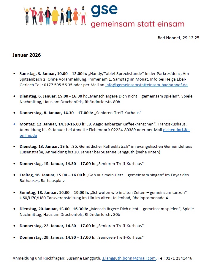 Hier die Termine GSE – gemeinsam statt einsam — Januar 2026