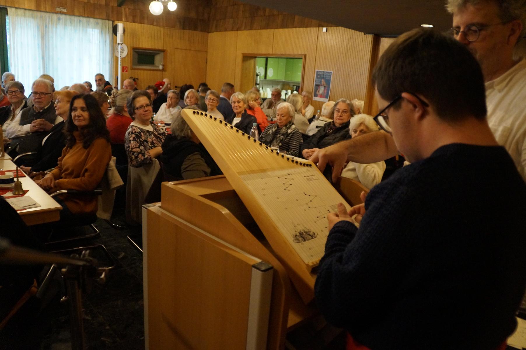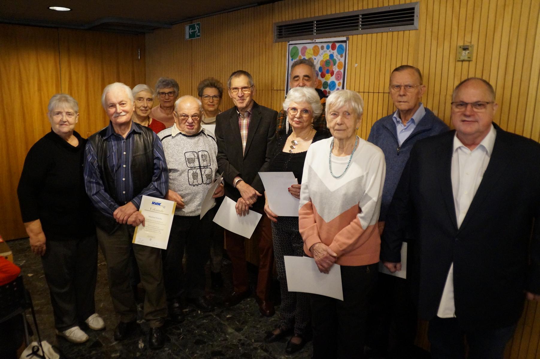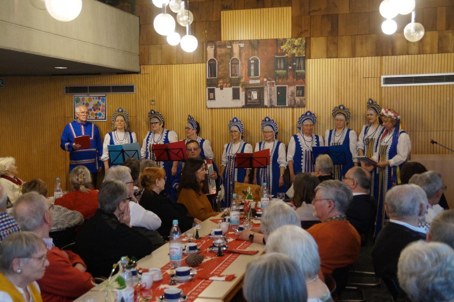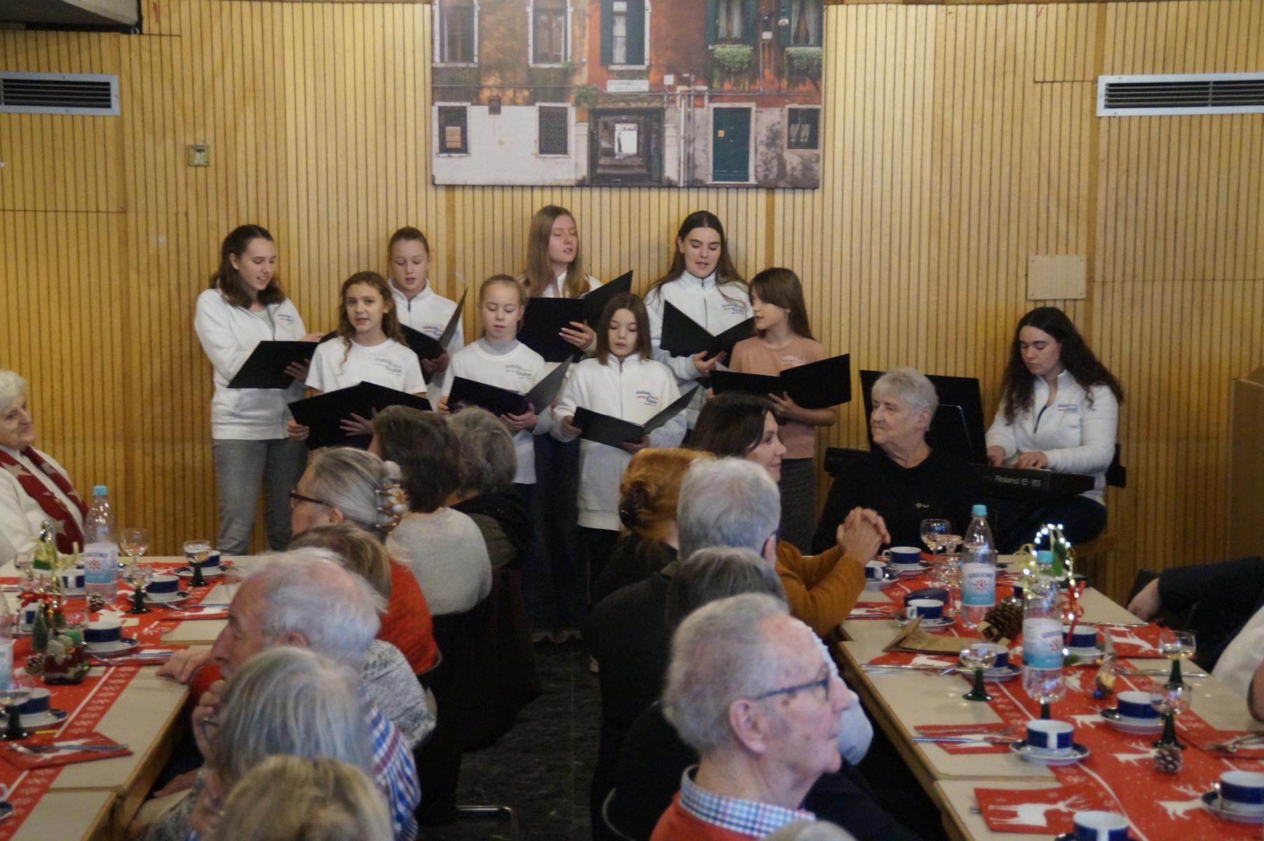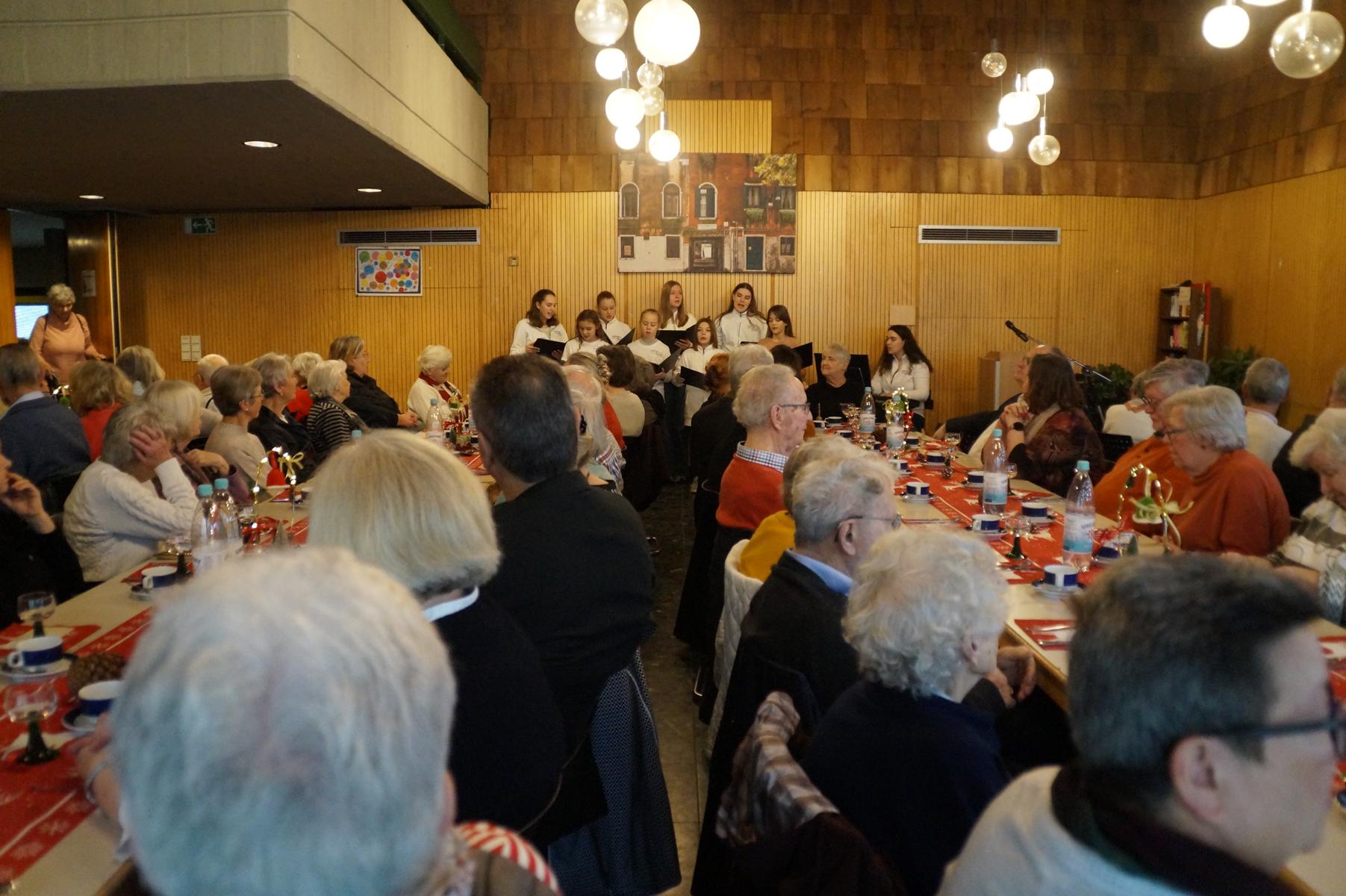 Kein Platz blieb frei bei der diesjährigen Jahresabschlussfeier des VdK in Bad Honnef. Im weihnachtlich geschmückten Pfarrsaal der Katholischen Kirchengemeinde St. Johann Baptist konnte die Vorsitzende, Lieselotte Zastrow, viele Mitglieder, deren Partner und Freunde begrüßen. Jeder Gast erhielt beim Eintreffen ein Los der für das Ende der Veranstaltung geplanten Tombola. Die Vorsitzende hatte wieder einmal für ein abwechslungsreiches Programm gesorgt. So unterhielt uns unser Mitglied Matthias Sesterhenn mit Weihnachtsliedern auf seiner von seinem Vater selbst gebauten Zither. Dies ist seit Jahren eine schon lieb gewordene Tradition. Der Jugendchor der Katholischen Pfarrgemeinde aus Selhof trug ebenfalls weihnachtliche Lieder vor, teils in deutscher, teils in englischer Sprache. Der weißrussische Chor Souvenir aus Meckenheim begeisterte mit seinen Liedern und erhielt langanhaltenden Applaus. Auch für ein reichhaltiges Mittagessen war gesorgt und der Nikolaus besuchte ebenfalls die Veranstaltung und las aus seinem goldenen Buch. Er verband seinen Vortrag mit vielen guten Wünschen für das neue Jahr.