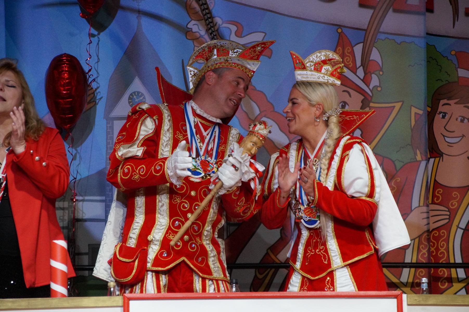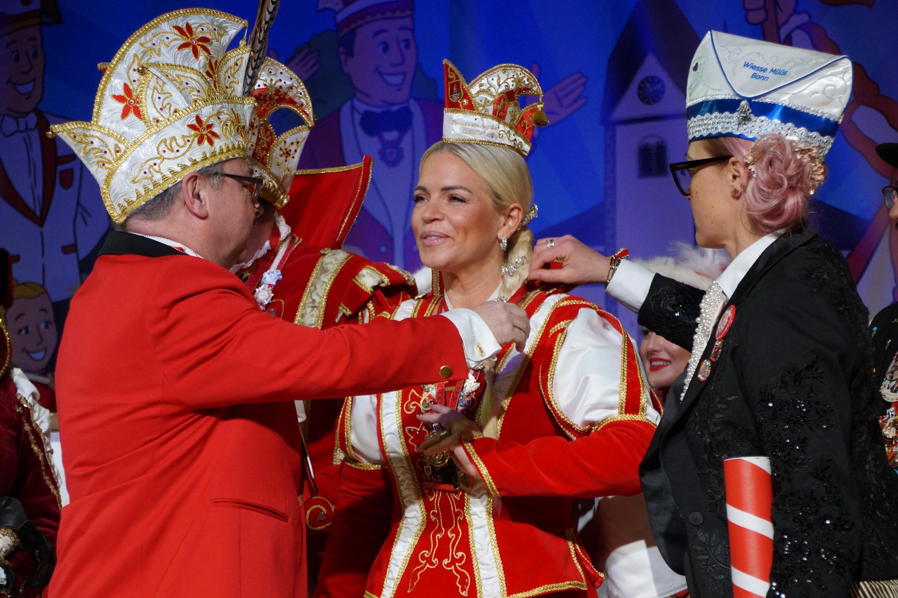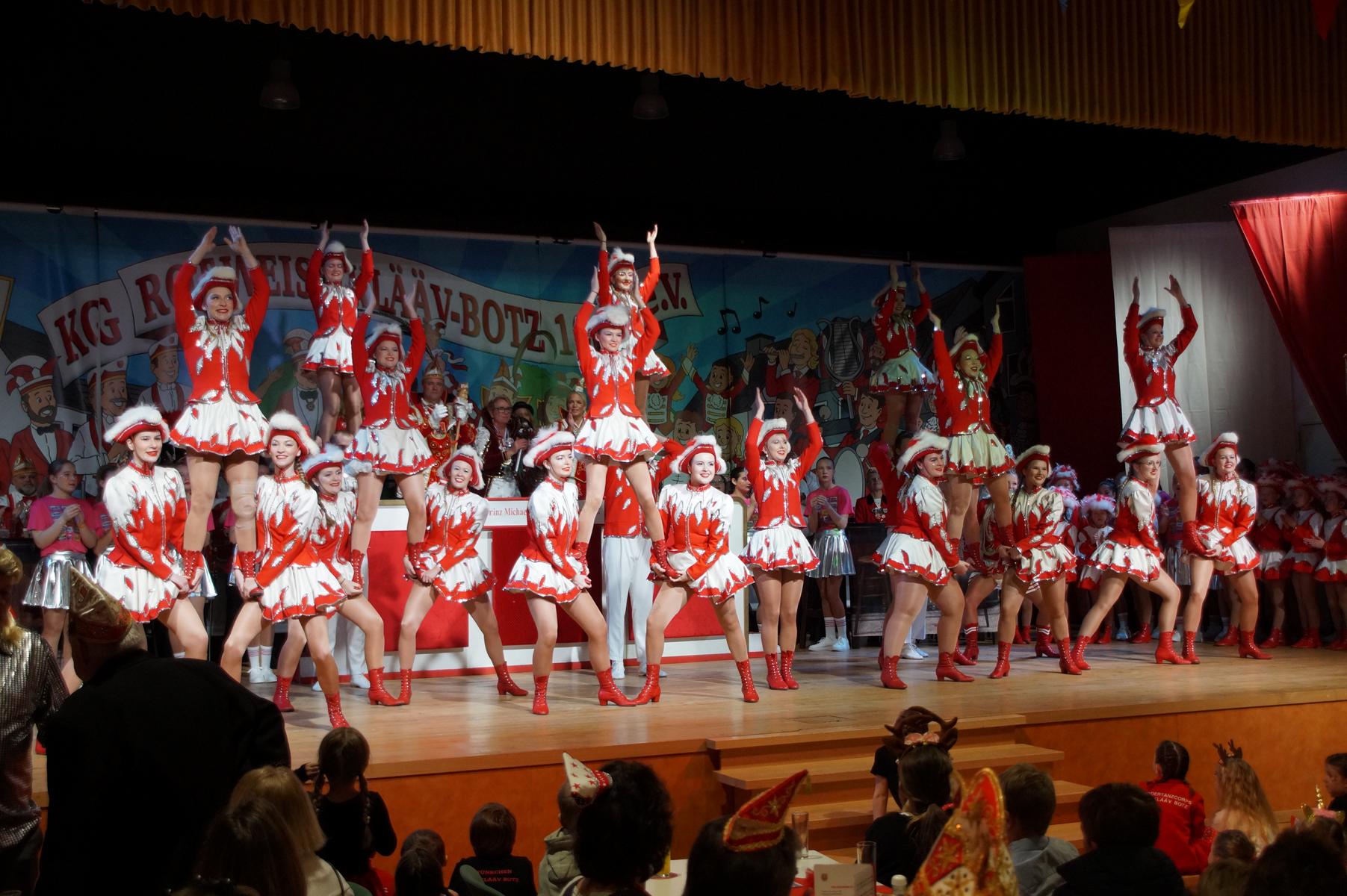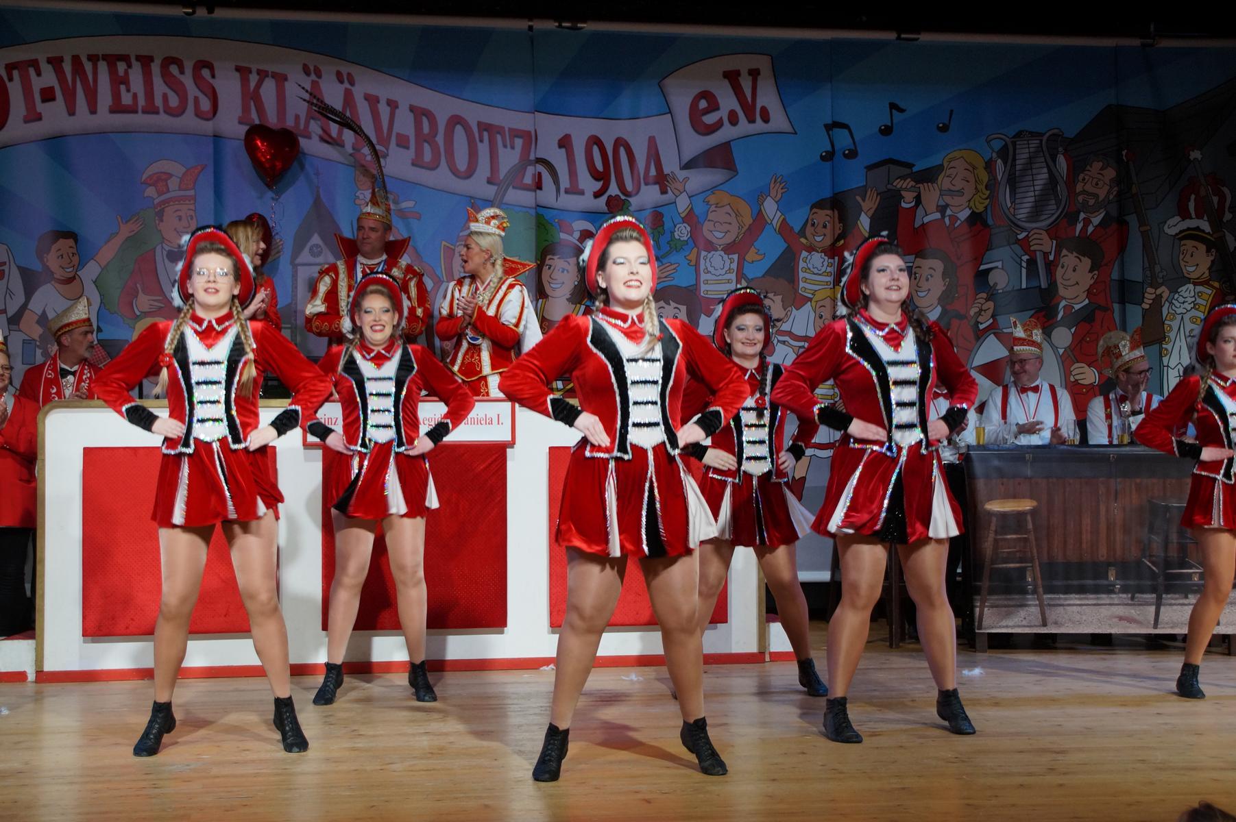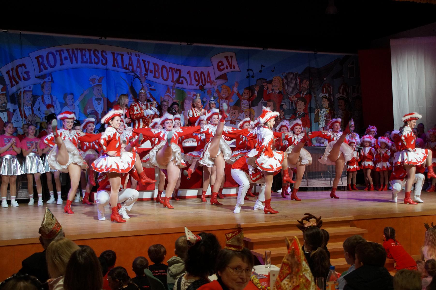 Ein weiterer Höhepunkt war der Auftritt der Prinzengarde der KG Rot-Weiß Klääv Botz, die in ihren rot-weißen Uniformen für ein eindrucksvolles Bild sorgte. Das Siebengebirgsprinzenpaar mit der Stücher KG aus Thomasberg, begleitet vom Spielmannszug der TV Eiche Bad Honnef, brachte das Bürgerhaus mit seinen Klängen noch einmal richtig in Bewegung.