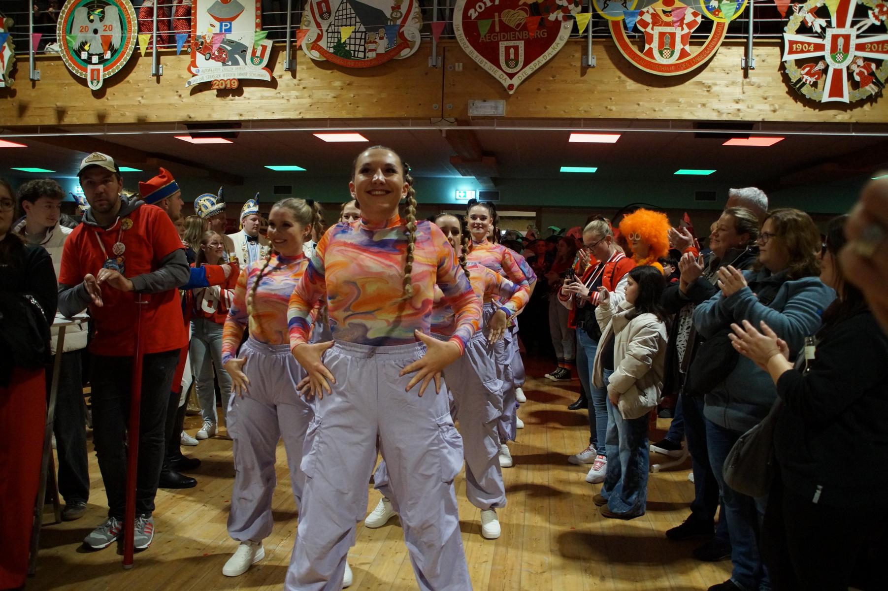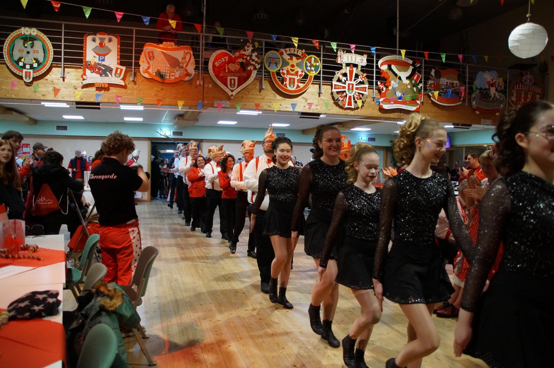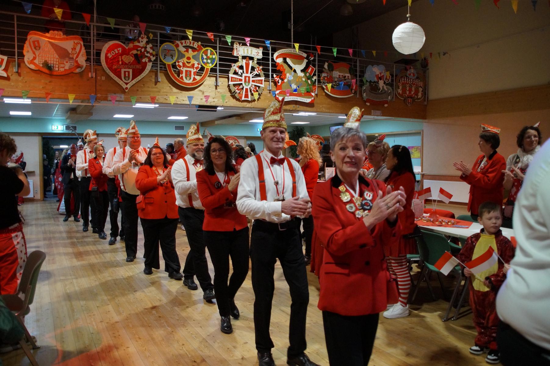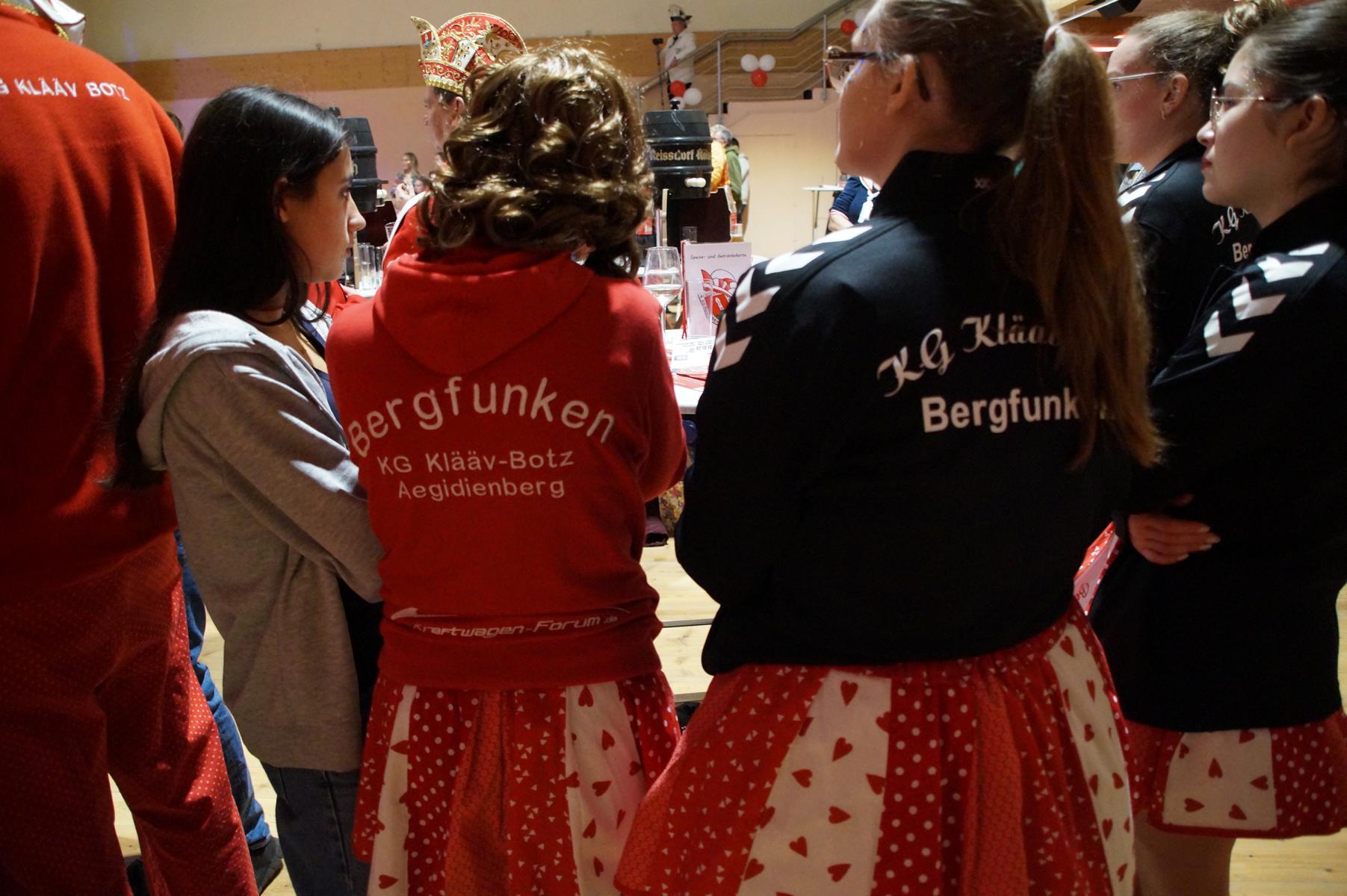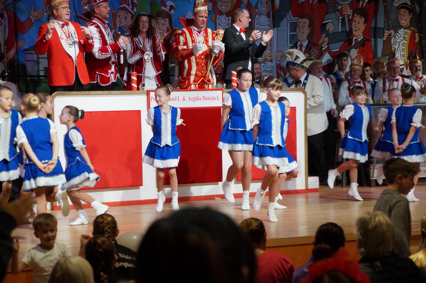 Den Auftakt übernahm die KG selbst: Die Fünkchen, die Bergfunken und der Spielmannszug sorgten mit ihren Auftritten sofort für Stimmung im Saal. Auch das diesjährige Prinzenpaar, Prinz Michael I. und Aegidia Daniela I., feierte mit – für Daniela I. ein besonderer Tag, denn sie hatte Geburtstag. Hinter der Theke kümmerte sich die Ehrengarde um das leibliche Wohl der Gäste.