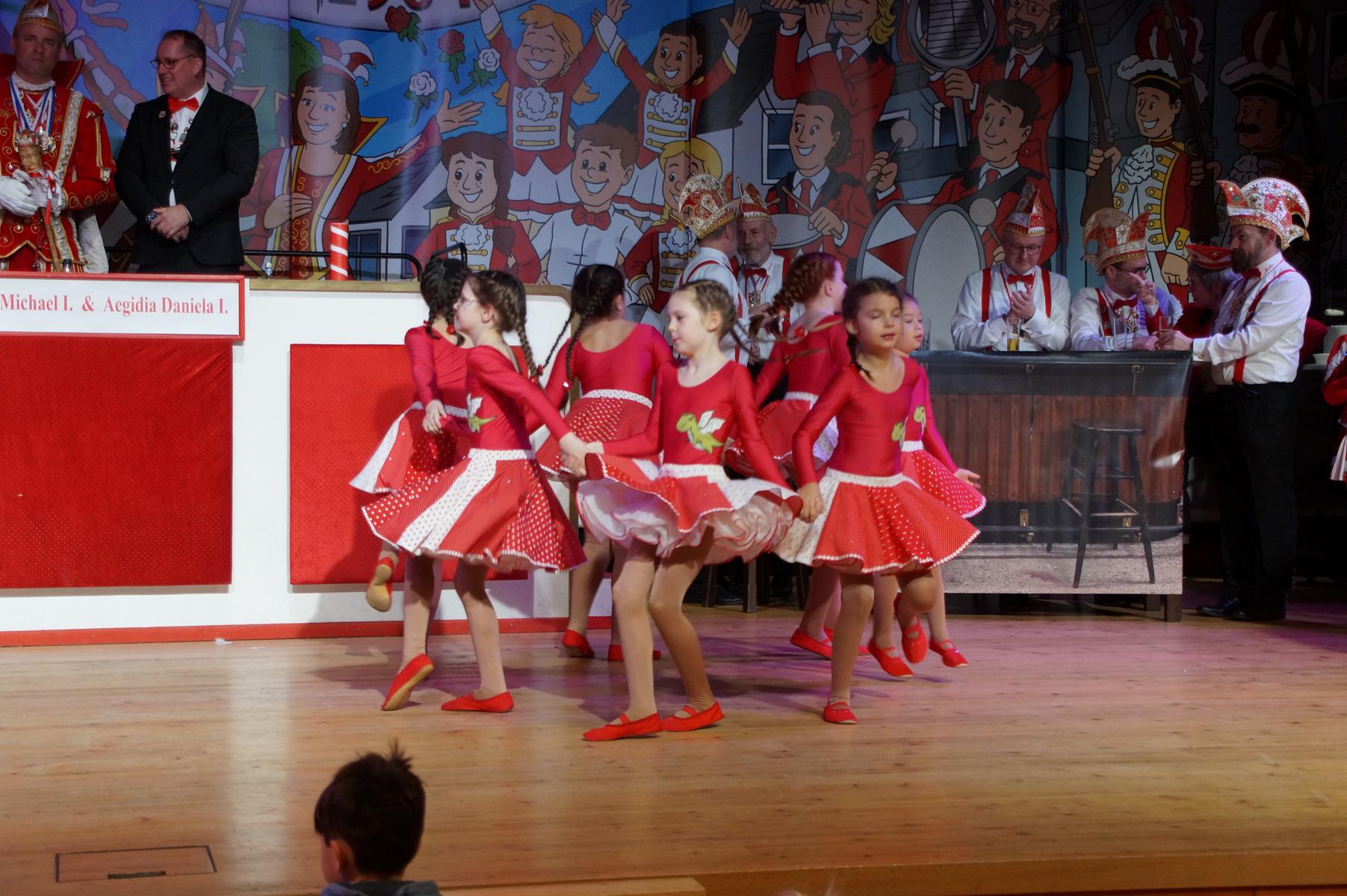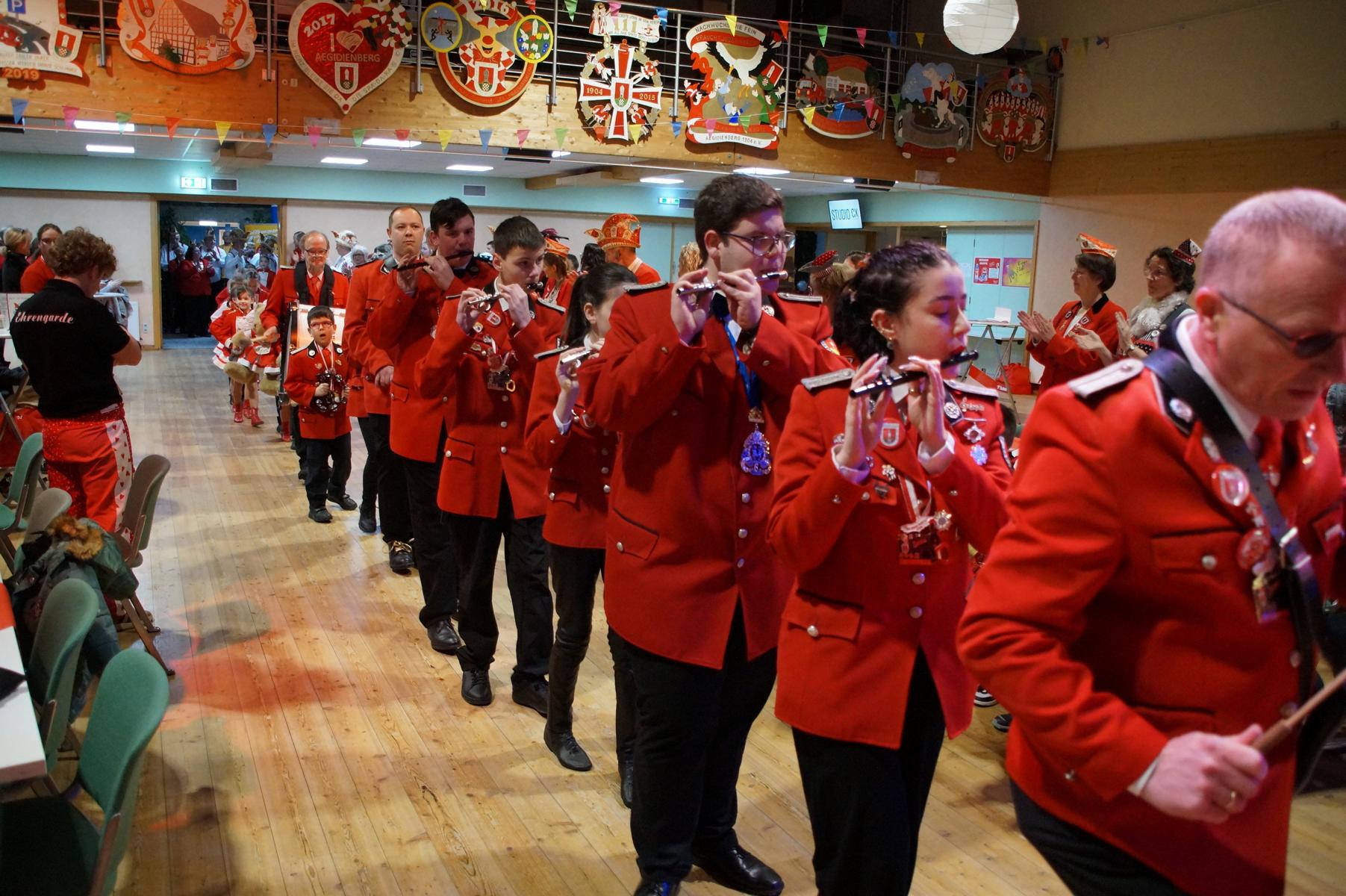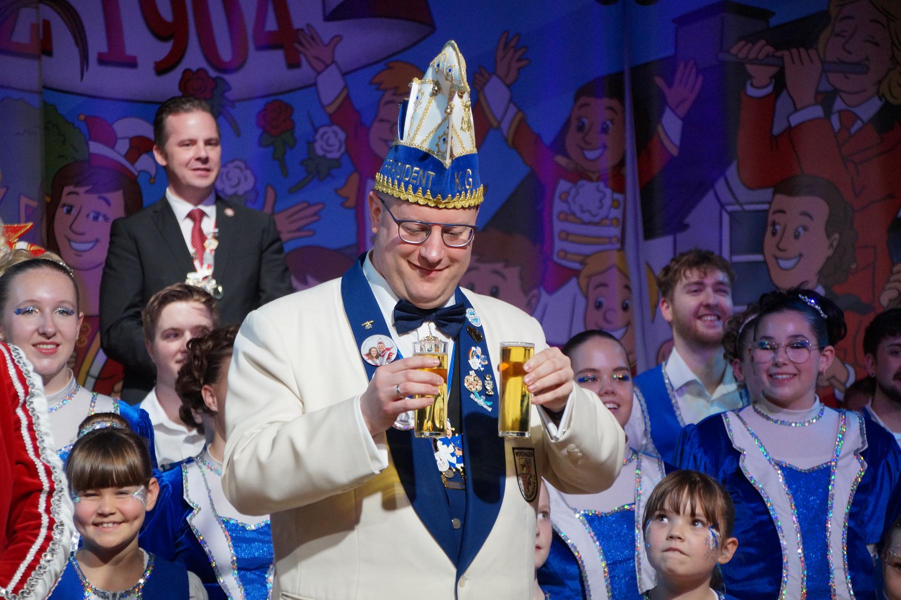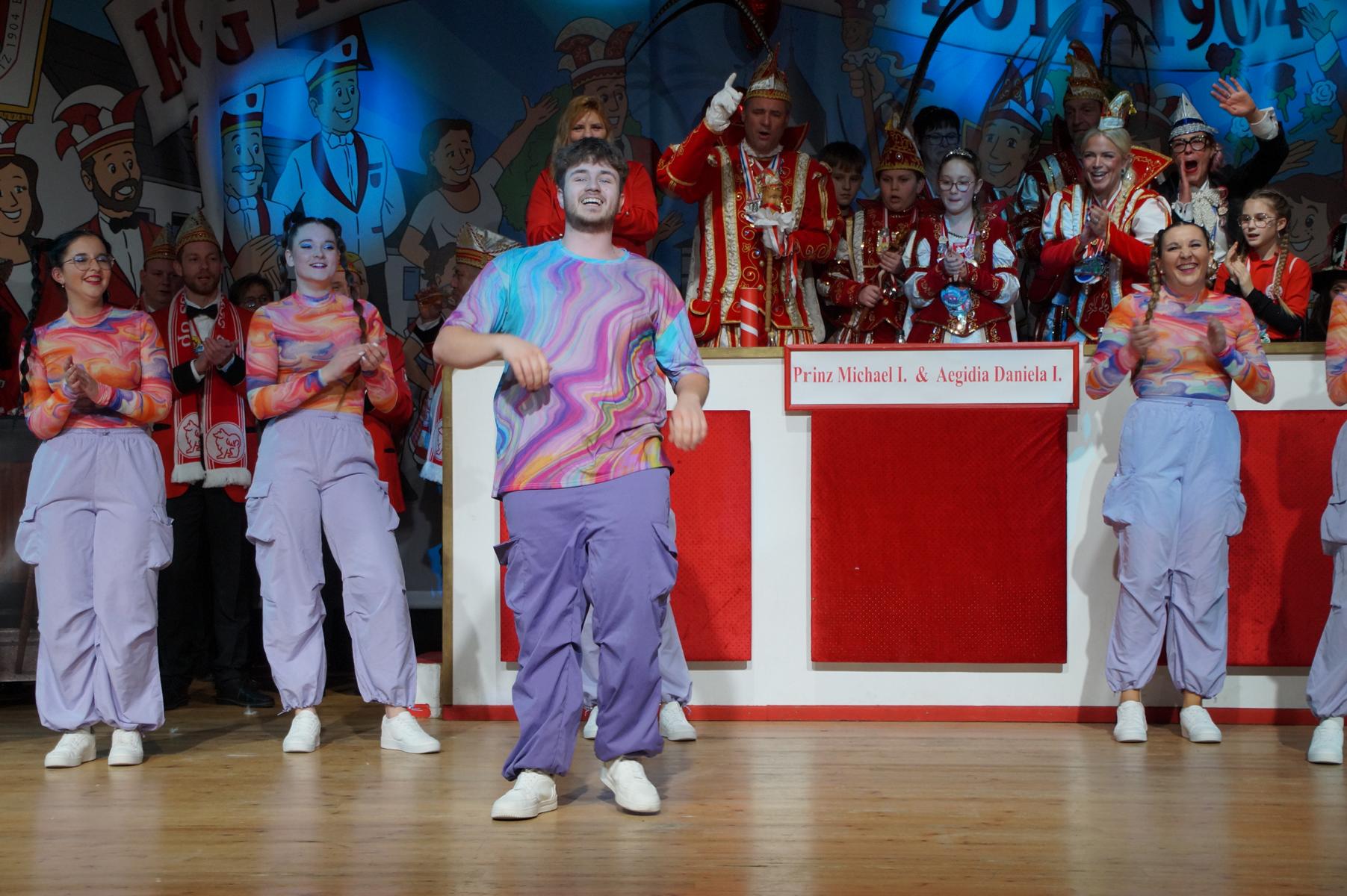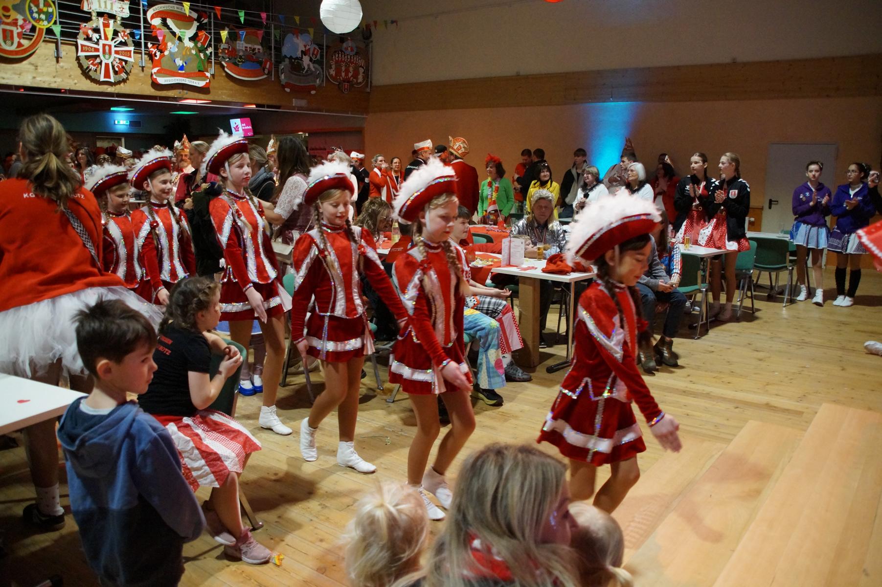 Den Auftakt übernahm die KG selbst: Die Fünkchen, die Bergfunken und der Spielmannszug sorgten mit ihren Auftritten sofort für Stimmung im Saal. Auch das diesjährige Prinzenpaar, Prinz Michael I. und Aegidia Daniela I., feierte mit – für Daniela I. ein besonderer Tag, denn sie hatte Geburtstag. Hinter der Theke kümmerte sich die Ehrengarde um das leibliche Wohl der Gäste.