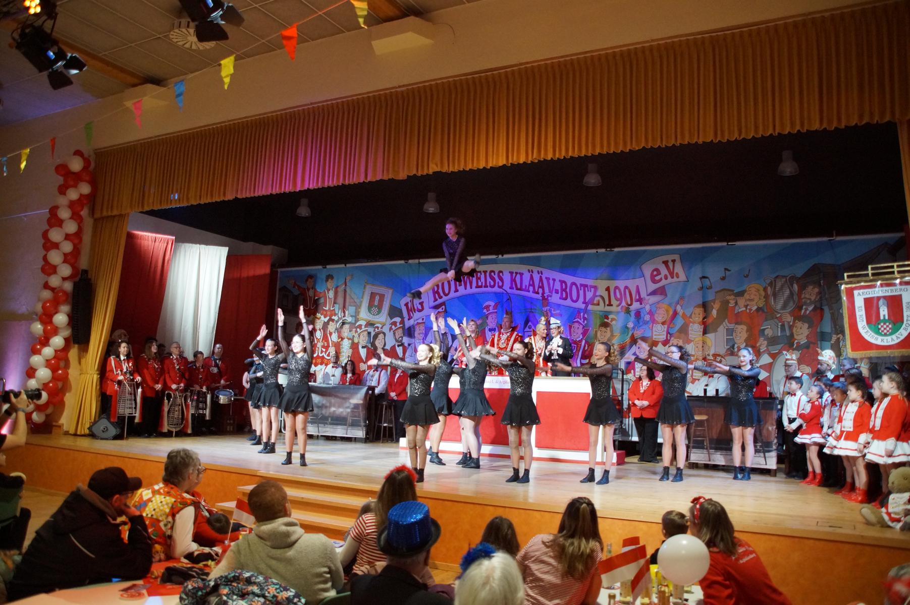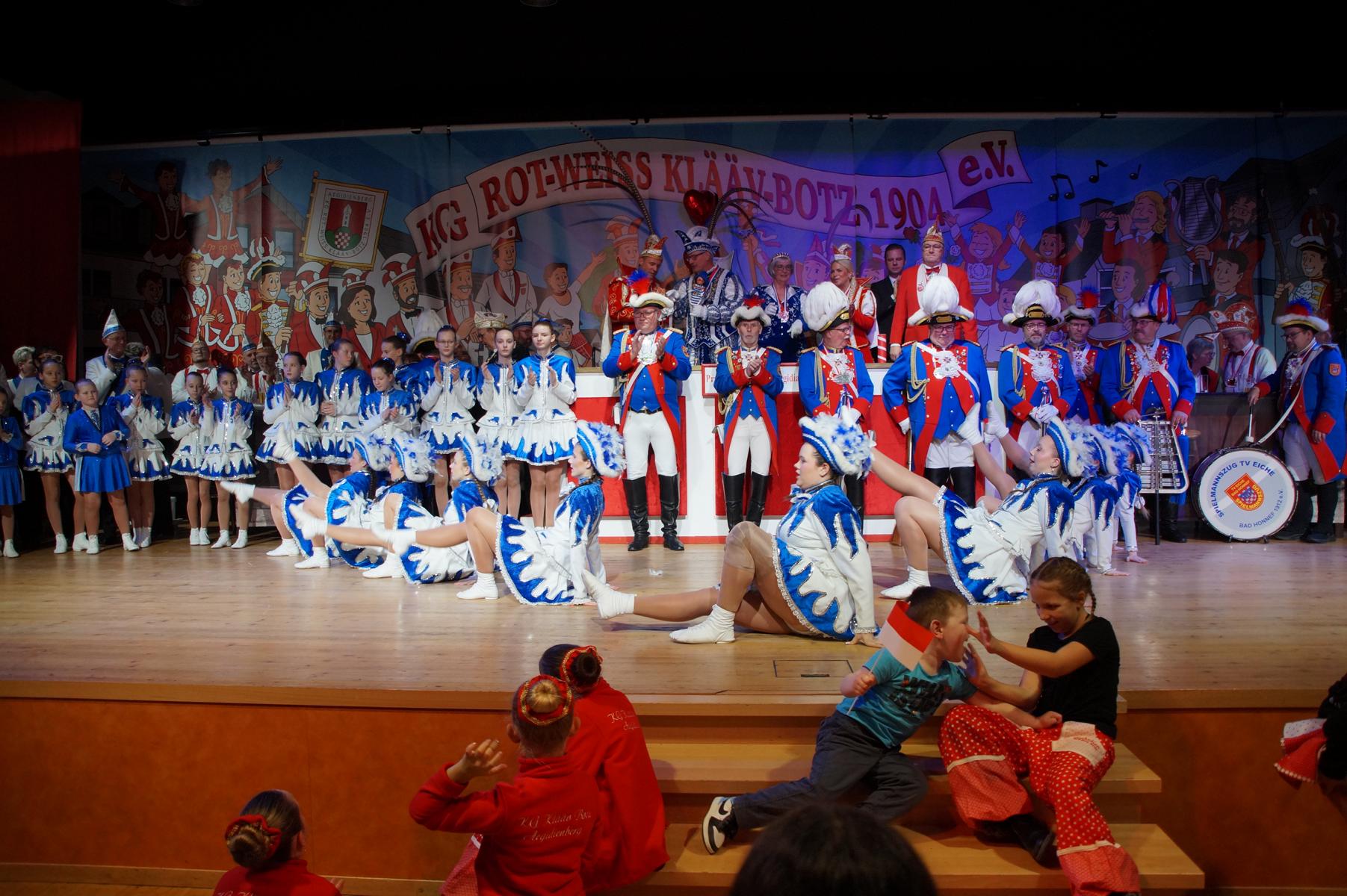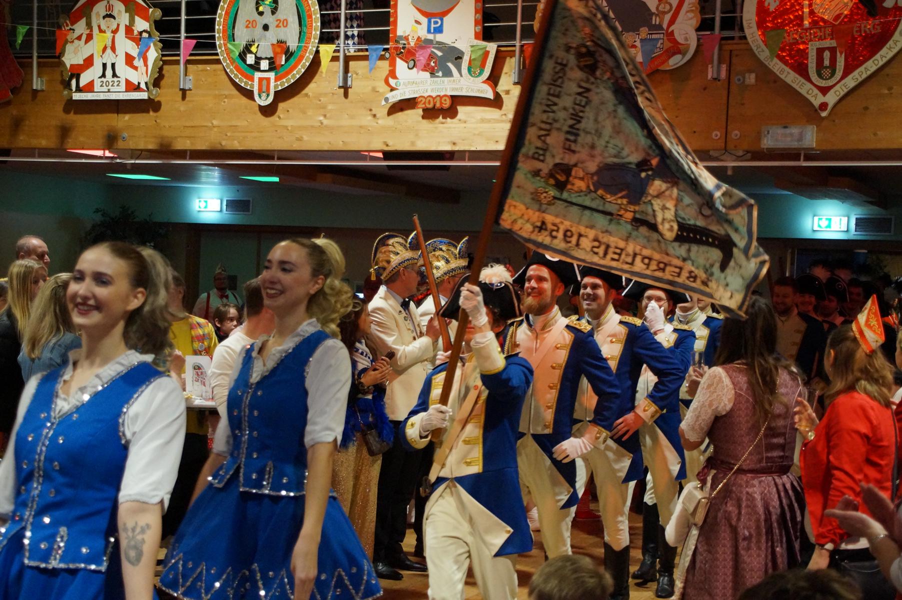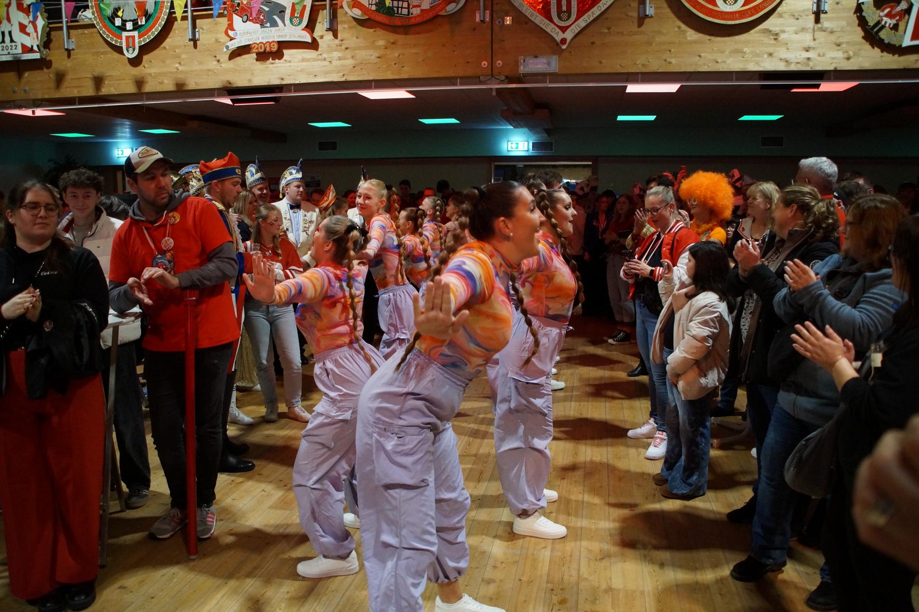 Im weiteren Verlauf reihten sich zahlreiche Gruppen und Vereine in das Programm ein. Mit dabei waren unter anderem der Club Gemötlichkeit aus Asbach, die Ölbergpiraten, die Tanzgruppe Zippchen mit einer artistischen Show, die KG „Mir komme met“ aus Bockeroth-Düferoth sowie die Narrenzunft aus Oberpleis.