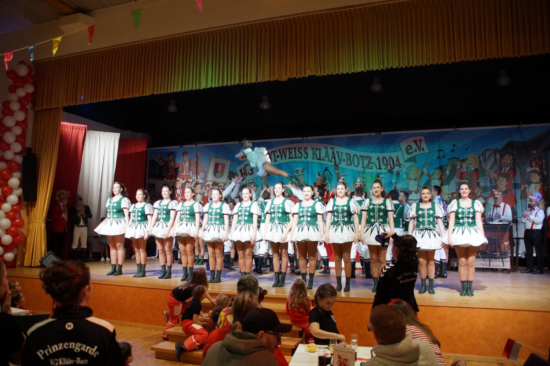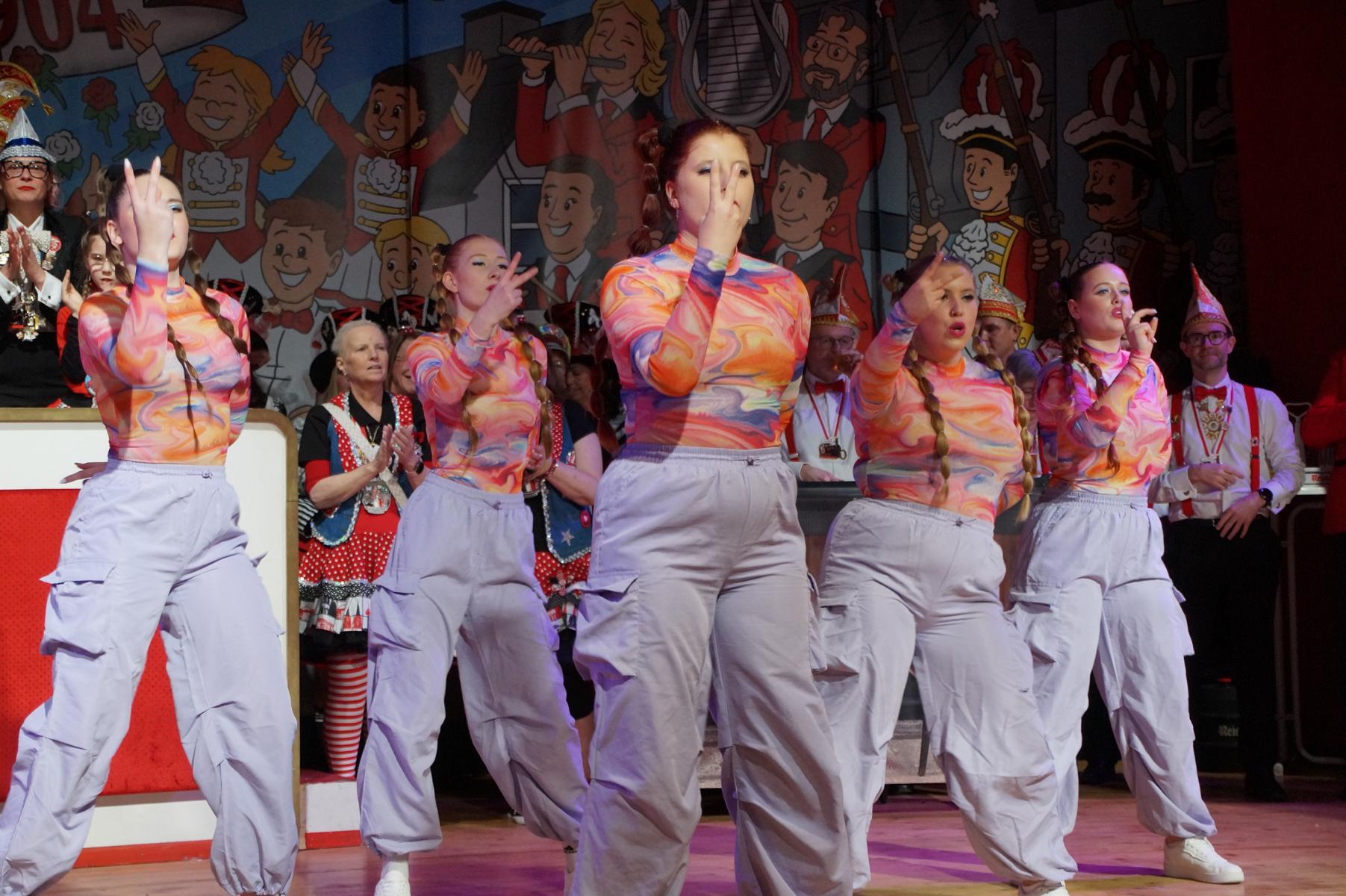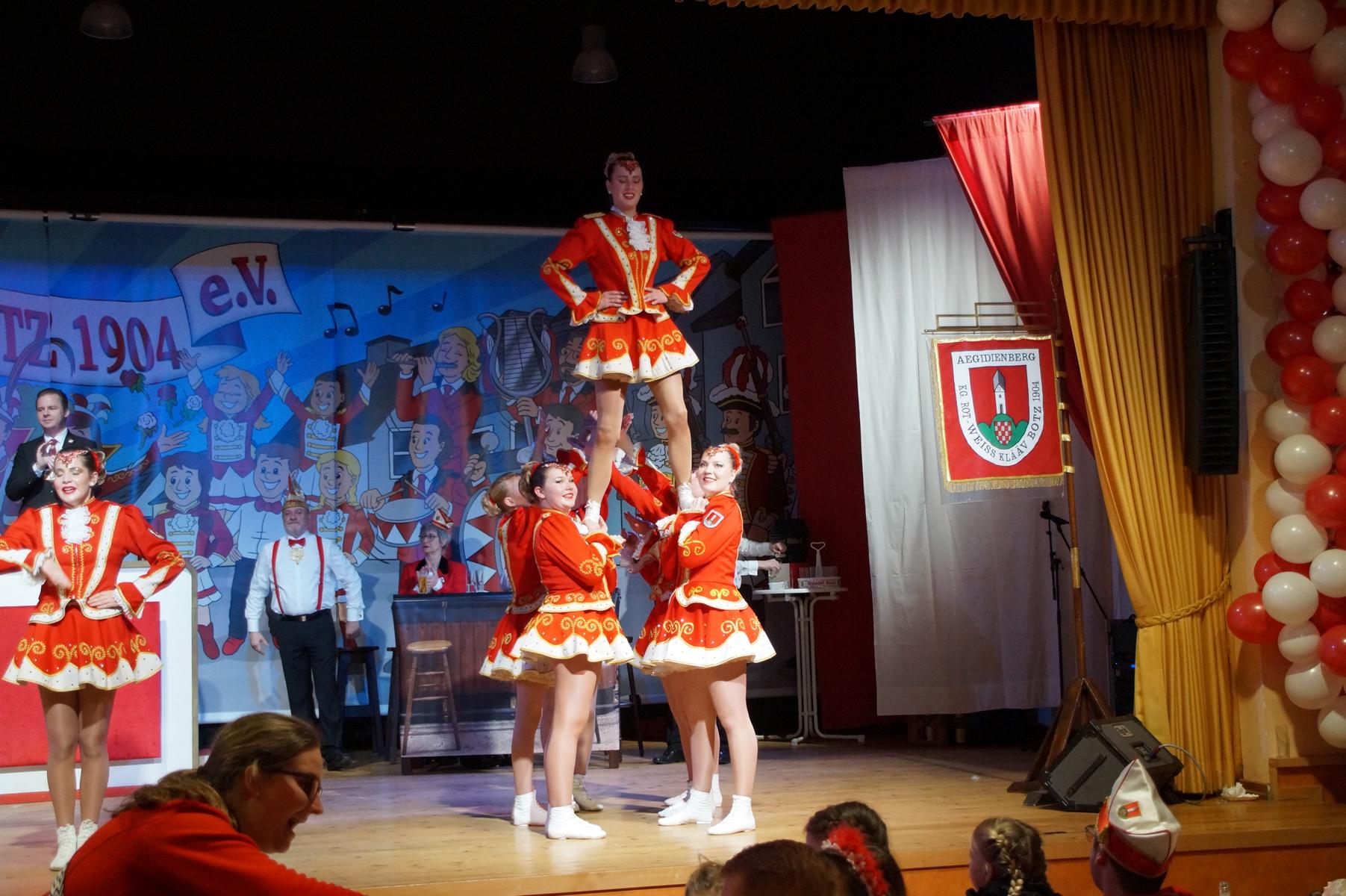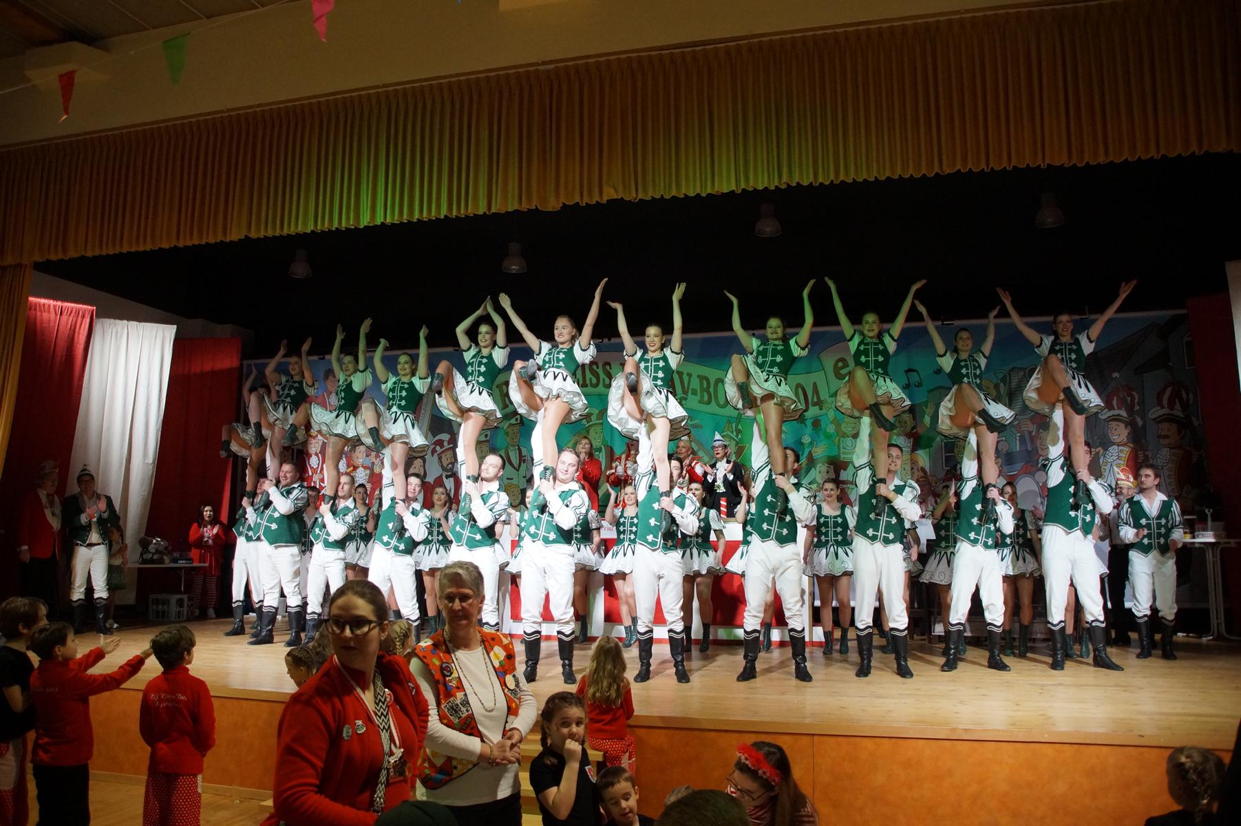 Im weiteren Verlauf reihten sich zahlreiche Gruppen und Vereine in das Programm ein. Mit dabei waren unter anderem der Club Gemötlichkeit aus Asbach, die Ölbergpiraten, die Tanzgruppe Zippchen mit einer artistischen Show, die KG „Mir komme met“ aus Bockeroth-Düferoth sowie die Narrenzunft aus Oberpleis.