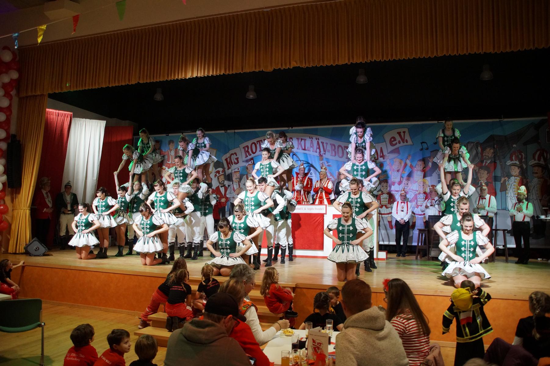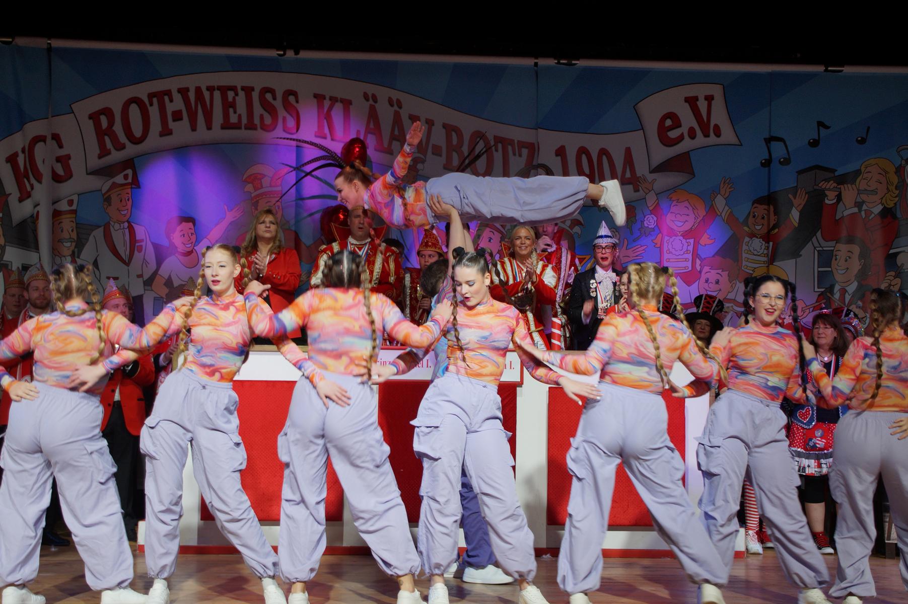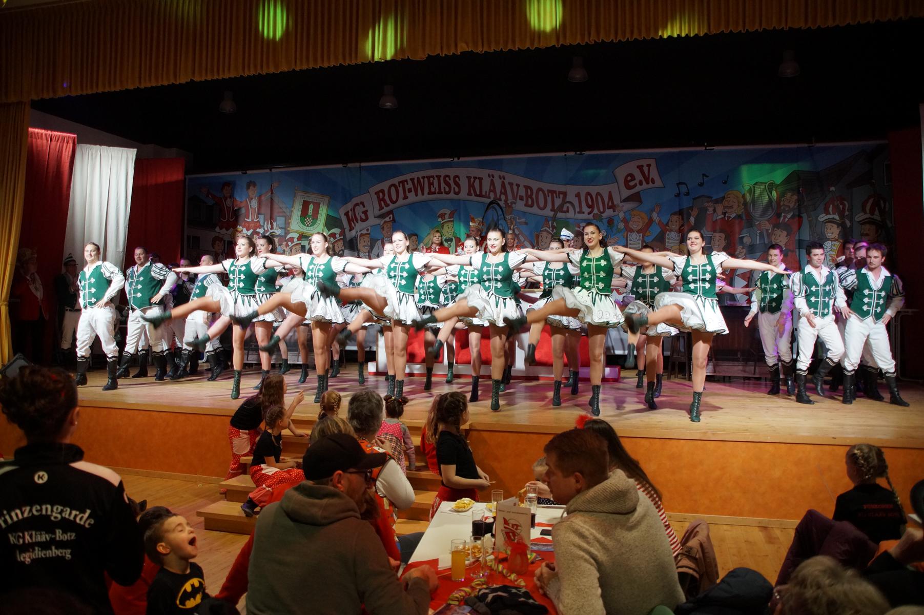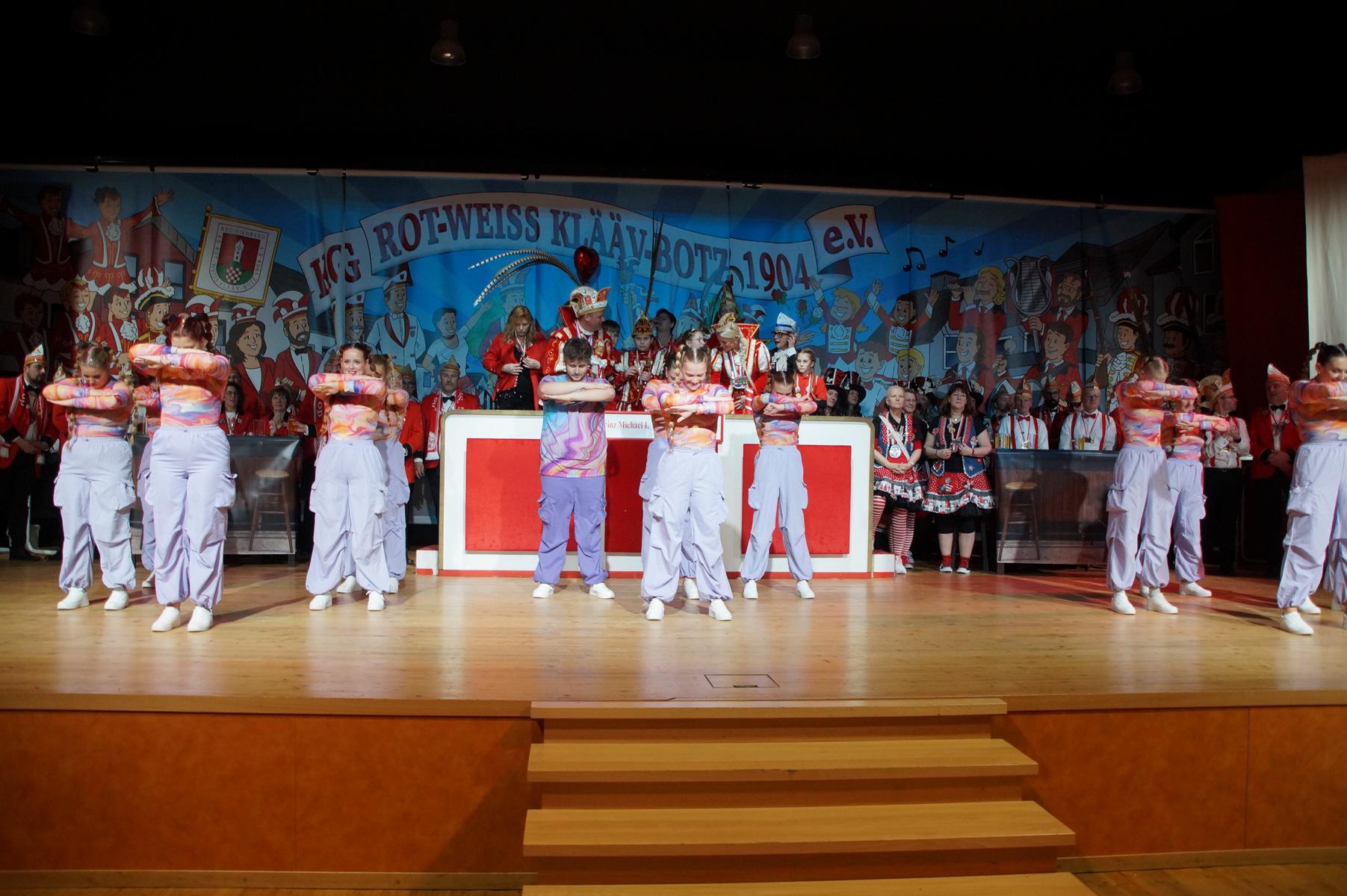 Im weiteren Verlauf reihten sich zahlreiche Gruppen und Vereine in das Programm ein. Mit dabei waren unter anderem der Club Gemötlichkeit aus Asbach, die Ölbergpiraten, die Tanzgruppe Zippchen mit einer artistischen Show, die KG „Mir komme met“ aus Bockeroth-Düferoth sowie die Narrenzunft aus Oberpleis.
