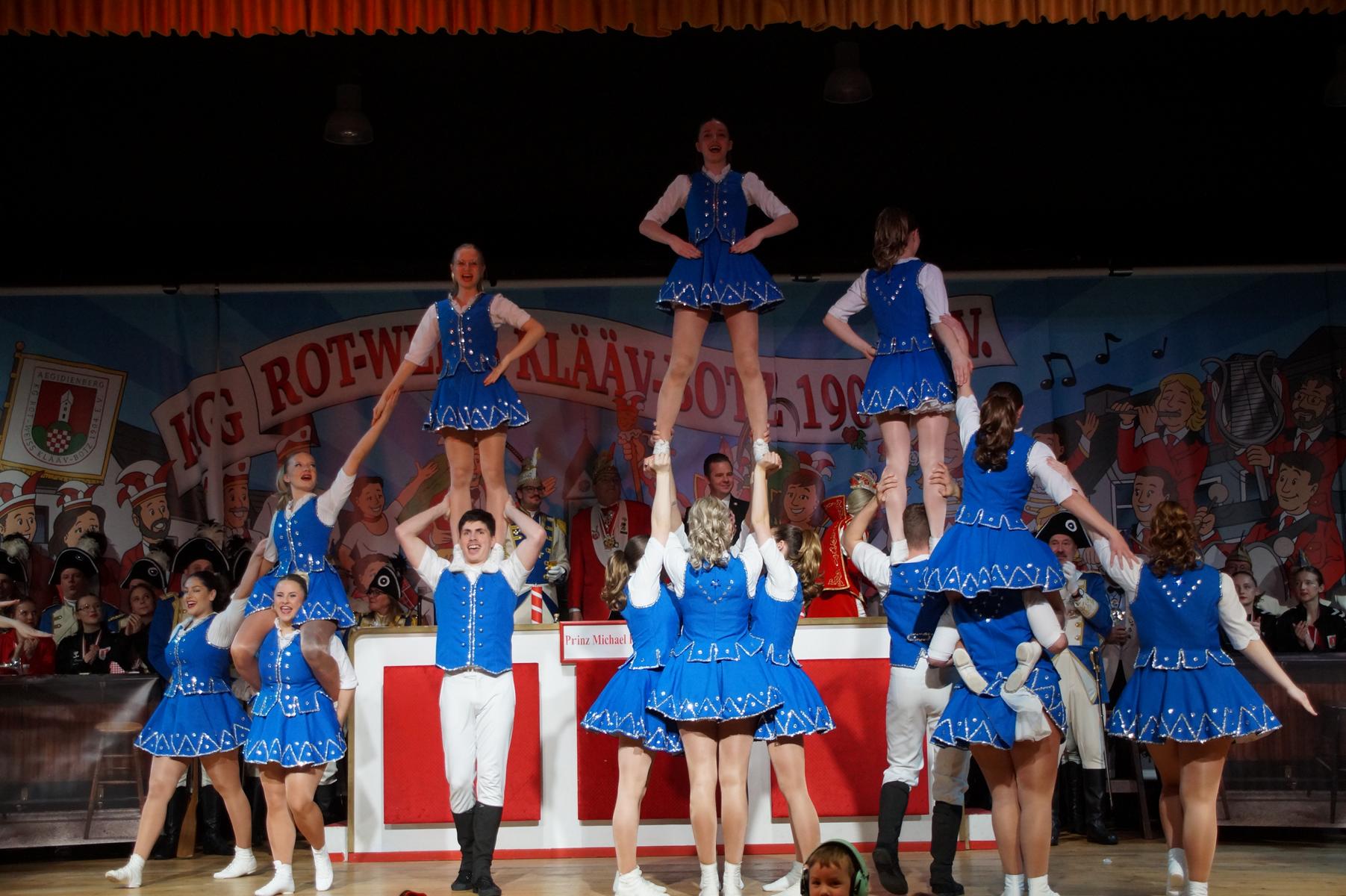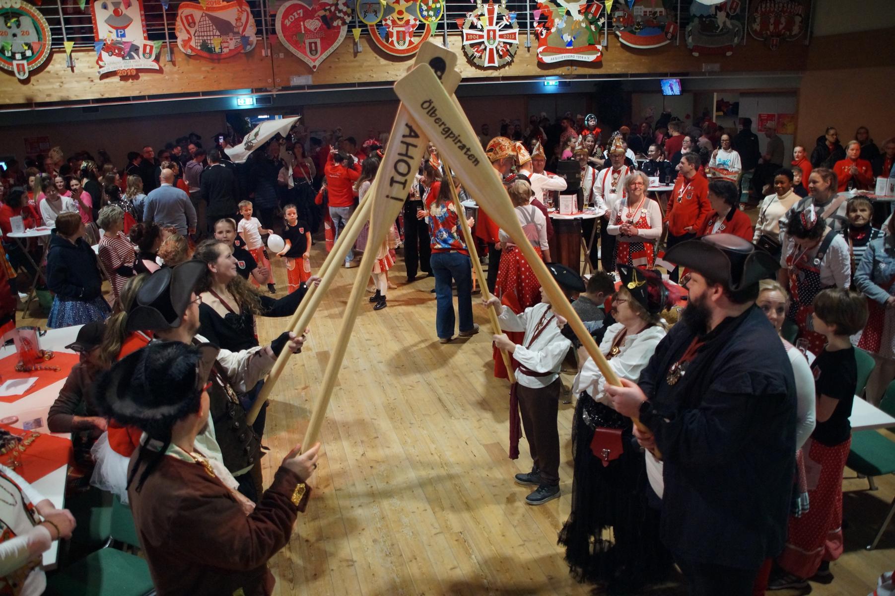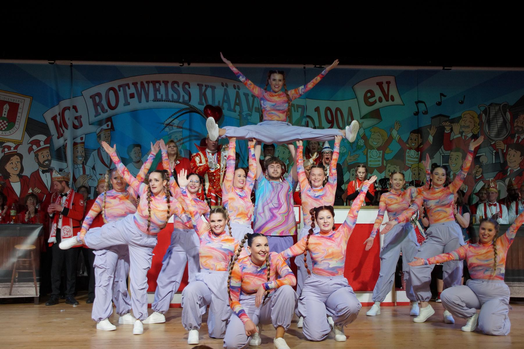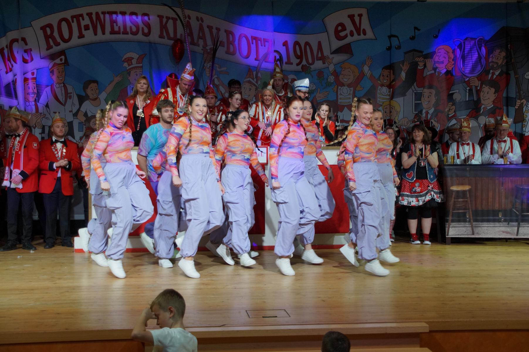 Im weiteren Verlauf reihten sich zahlreiche Gruppen und Vereine in das Programm ein. Mit dabei waren unter anderem der Club Gemötlichkeit aus Asbach, die Ölbergpiraten, die Tanzgruppe Zippchen mit einer artistischen Show, die KG „Mir komme met“ aus Bockeroth-Düferoth sowie die Narrenzunft aus Oberpleis.