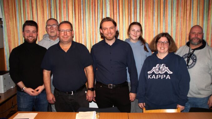 Neuer Vorstand der Selhofer Schützen 2026 (v.L) Alexander Kröll , Dieter Faßbender, Stefan Gilbert, Patrik Gilbert, Salome Mahlein, Ulrike vorn Hüls und Daniel vorn Hüls -- Foto:©Thomas Scheben