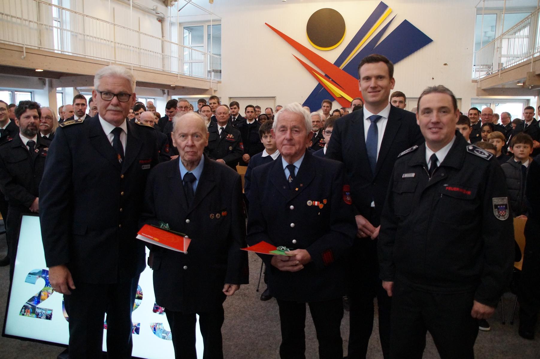 Für ihre außergewöhnlich lange Zugehörigkeit zur Freiwilligen Feuerwehr wurden zudem zwei Mitglieder besonders geehrt: Alfred Höhler erhielt die Auszeichnung für 60 Jahre Dienst, Hermann Dix wurde für beeindruckende 70 Jahre aktive und unterstützende Tätigkeit gewürdigt. Beide Ehrungen unterstrichen den hohen Stellenwert langjähriger Kameradschaft innerhalb der Wehr.