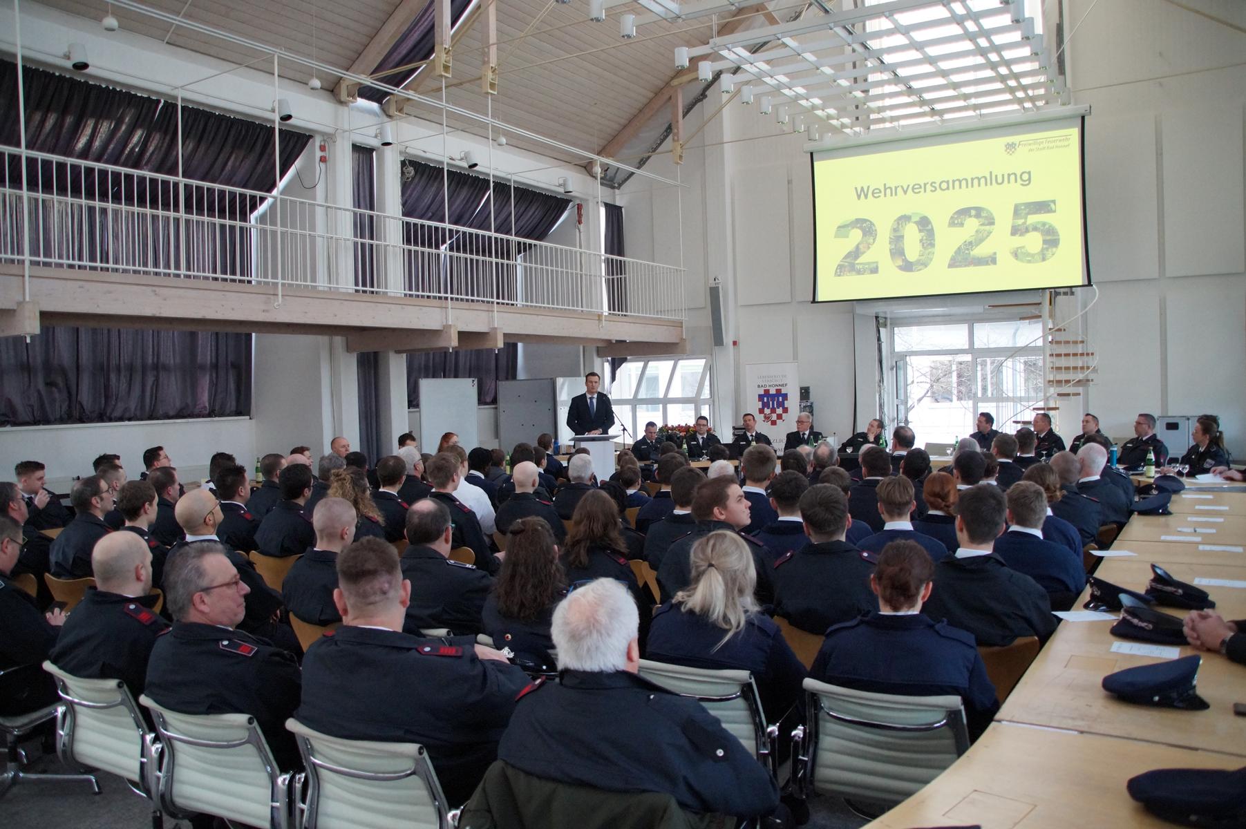 Die Freiwillige Feuerwehr Bad Honnef hat am vergangeem Samstag (17.1.2026) ihre jährliche Wehrversammlung abgehalten. Vertreter aller Einheiten, Mitglieder der Einsatz- und Ehrenabteilung sowie Gäste aus Politik und Verwaltung kamen zusammen, um Bilanz zu ziehen und zentrale Entscheidungen für das kommende Jahr zu treffen. Bürgermeister Philipp Herzog würdigte in seiner Ansprache die Einsatzbereitschaft der Ehrenamtlichen und betonte die Bedeutung der Feuerwehr für die Sicherheit der Stadt.
