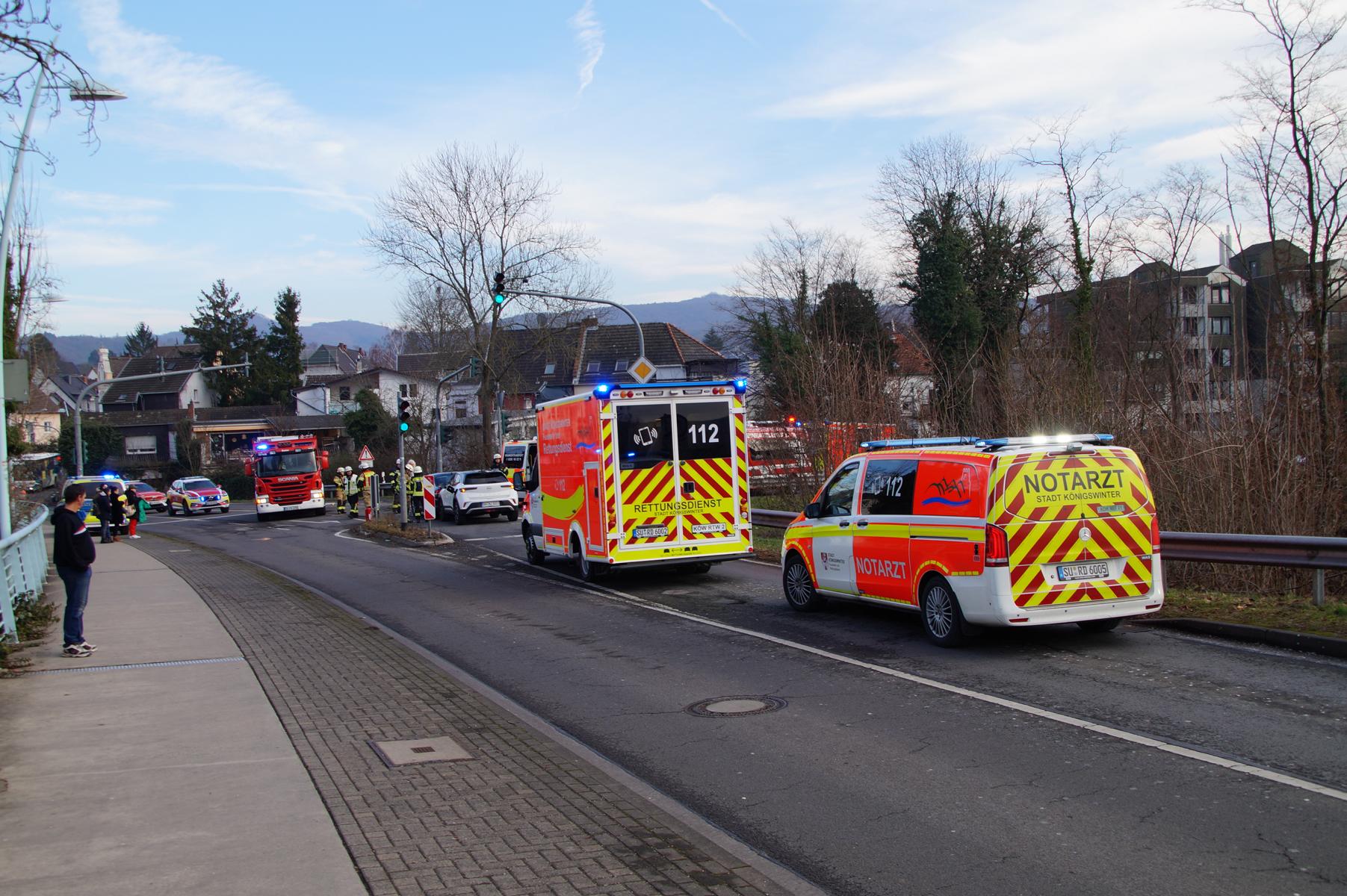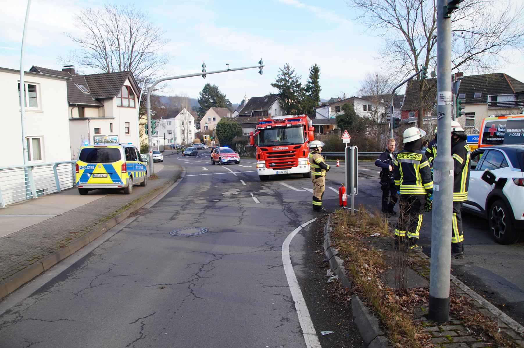 Die Feuerwehr sicherte die Unfallstelle ab und stellte den Brandschutz sicher. Aufgrund der zeitweisen Sperrung kam es zu erheblichen Verkehrsbehinderungen in alle Richtungen. Kurz vor 15 Uhr konnte der Einsatz der Freiwilligen Feuerwehr Bad Honnef beendetund die Straße wieder freigegeben werden.