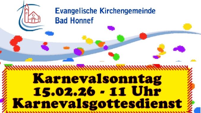 Am 15.02. am Karnevalssonntag um 11 Uhr heißt es „Fastelovend“ und „Alaaf“ in der Erlöserkirche. Herzliche Einladung an alle Jecken (und die, die es werden wollen) zum Karnevalsgottesdienst in der Luisenstr. 15, Bad Honnef.
