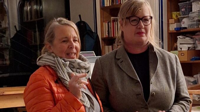 Die Rheinbreitbacher Künstlerin Doris Lenz (li) und Christina Wachendorff, Inhaberin von Pieke & Fein und Initiatorin des Kulturformates „Bühne 38“ (re.). Foto:© Vogginger