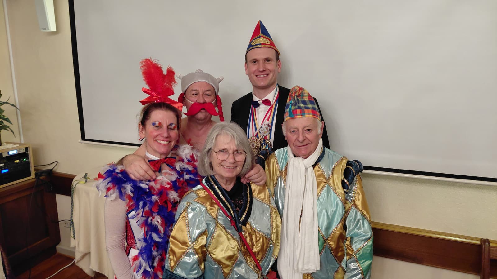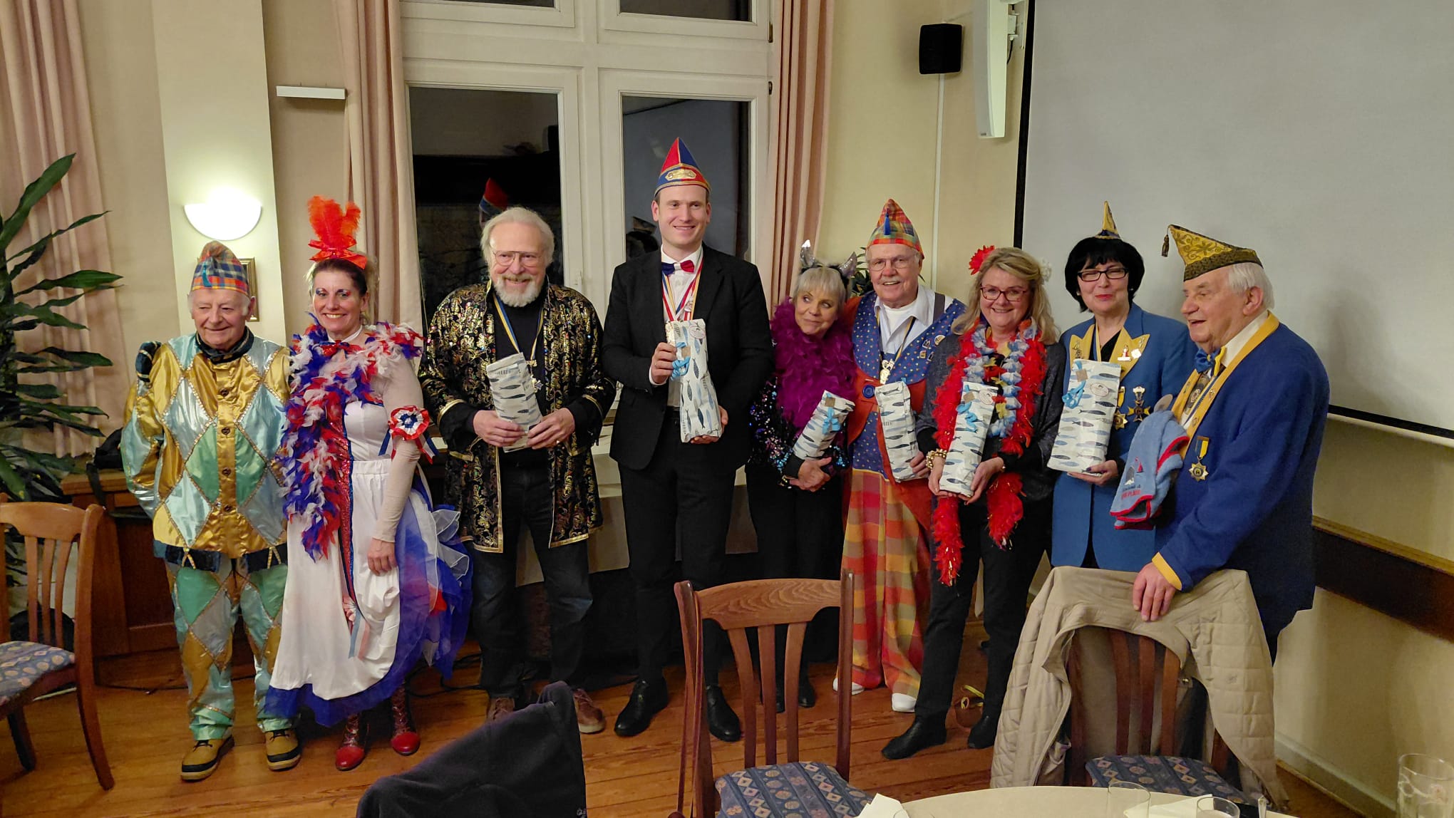 Es war ein in jeder Hinsicht „Bunter Haufen“, der sich am Begrüßungsabend für unsere Bercker Freunde im Rahmen unserer Städtepartnerschaft am 13.06.2026 im Alten Ratssaal des Alten Rathauses zusammenfanden. Fast zwanzig Bercker des Vereins „Festi Berck“ hatten die 500 km lange und siebenstündige Fahrt nicht gescheut, um sich mit ihren Honnefer Freunden wieder einmal 4 Tage lang voll in den Karneval zu stürzen.
