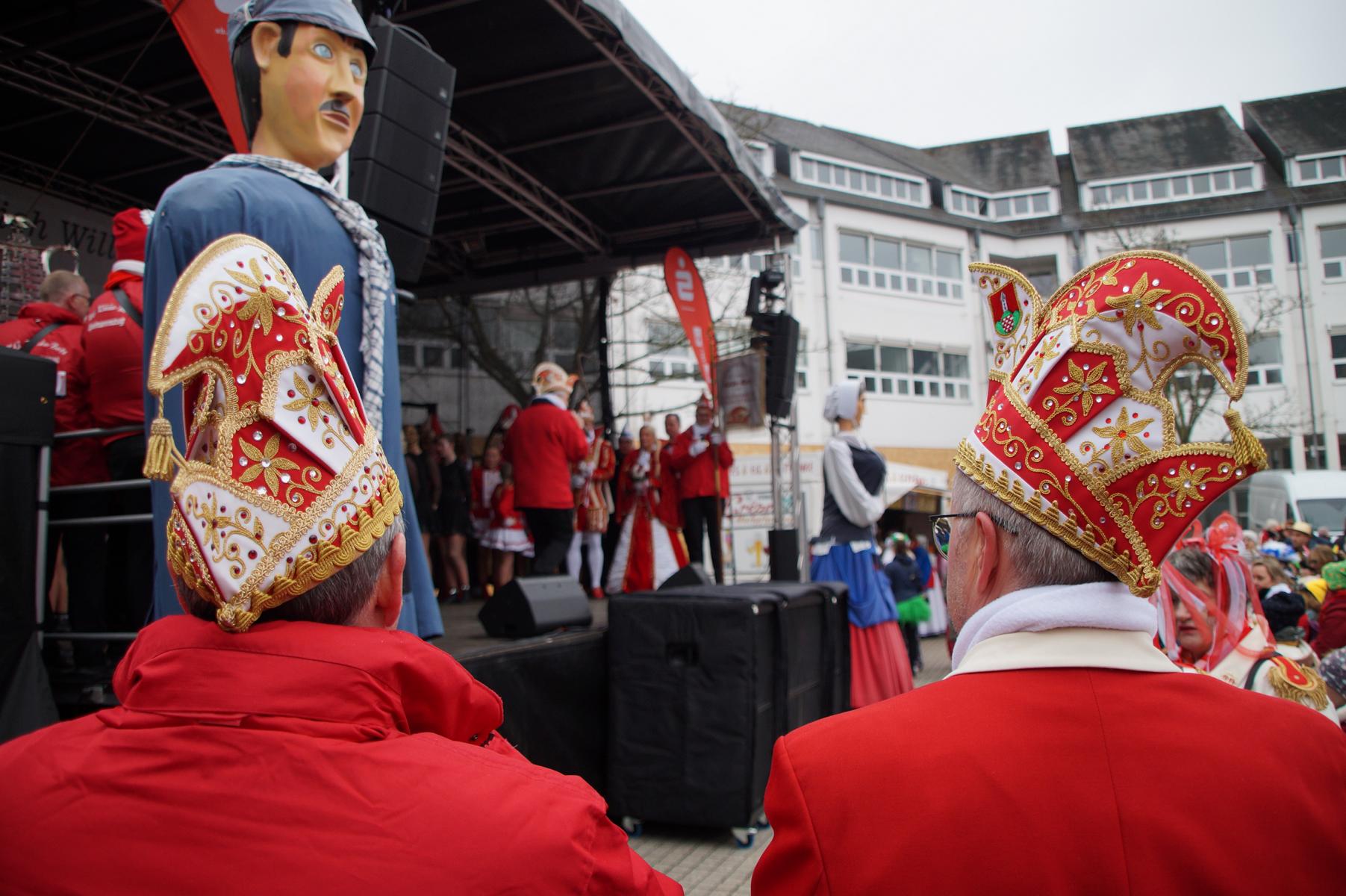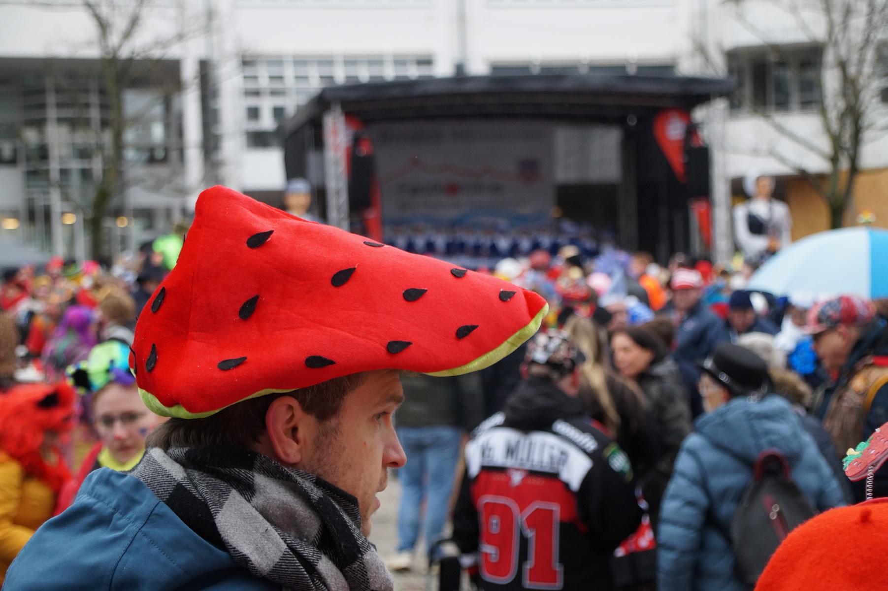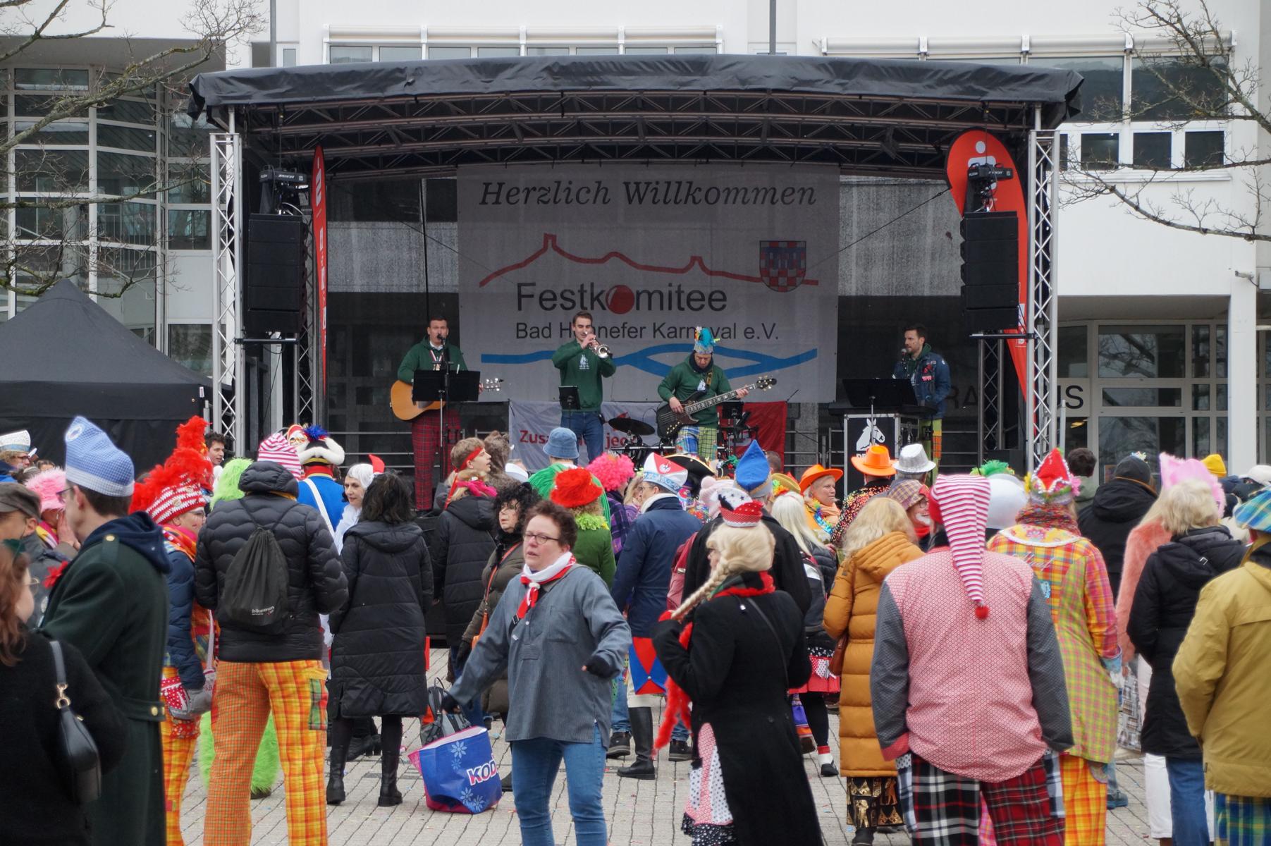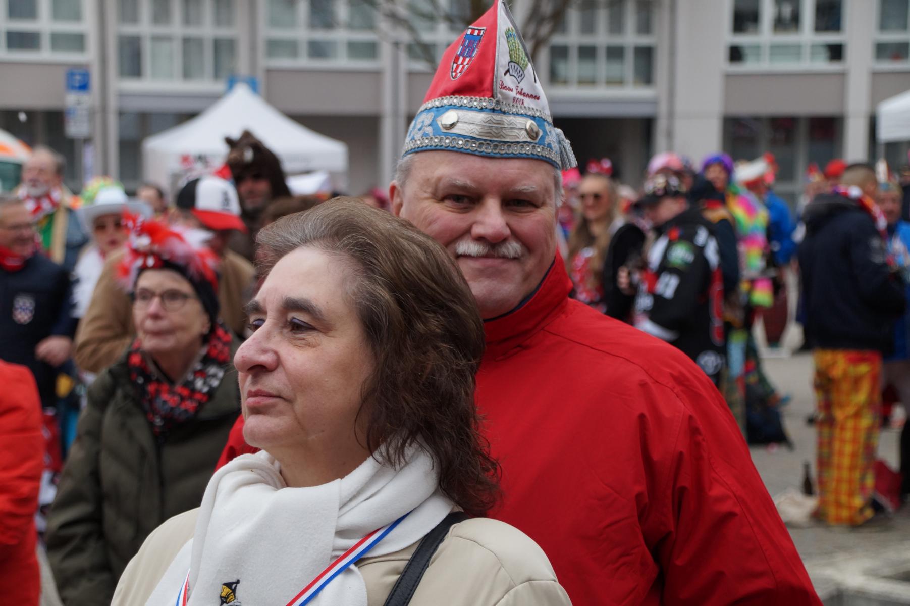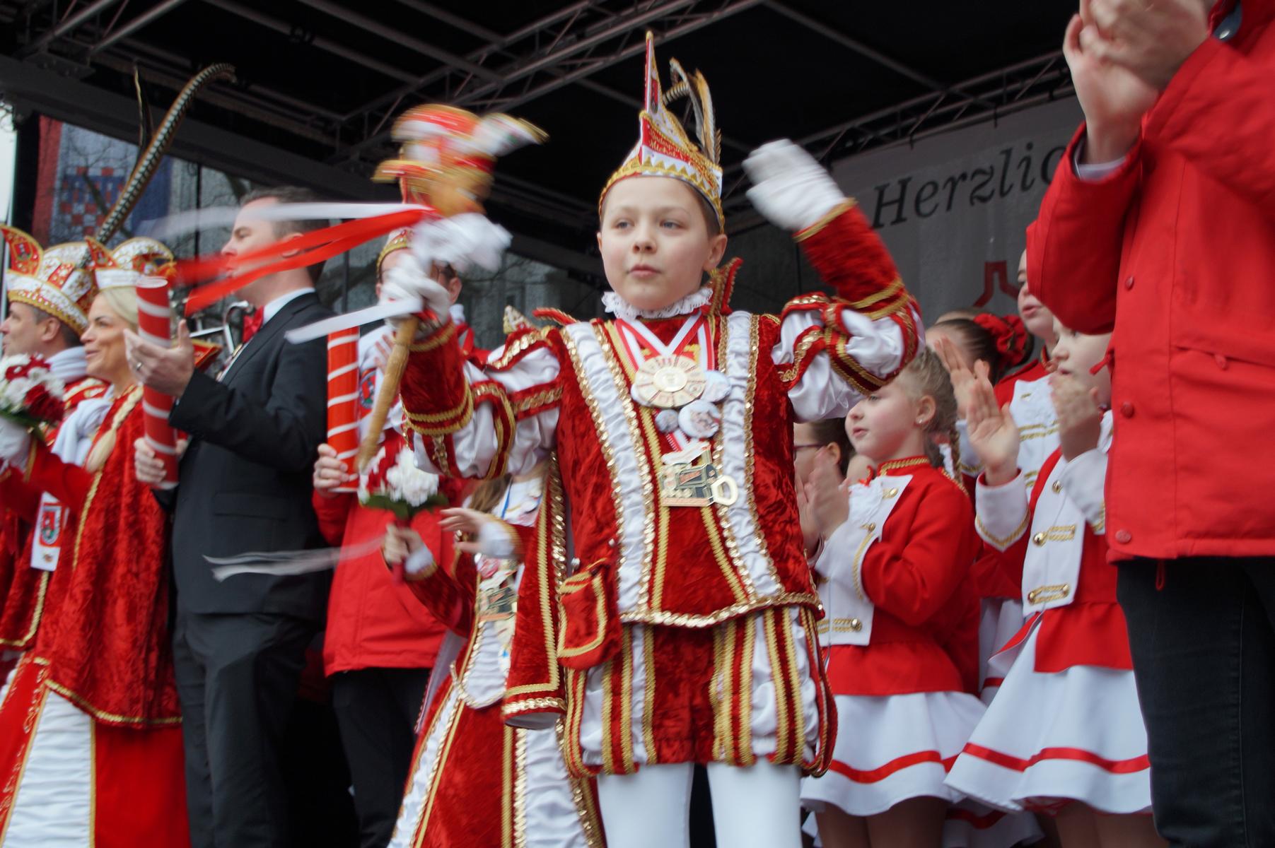 Pünktlich um 11.00 Uhr ging es auf der großen Bühne vor dem Rathaus los, vor der sich zu diesem Zeitpunkt bereits einige hundert Karnevalisten eingefunden hatten.