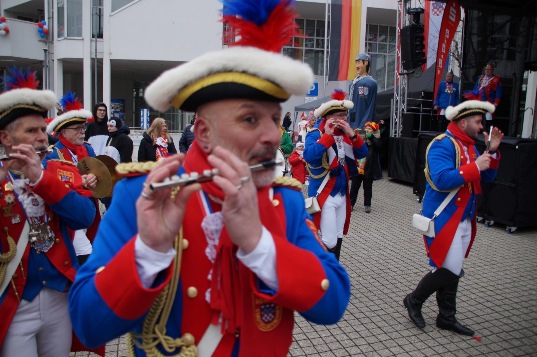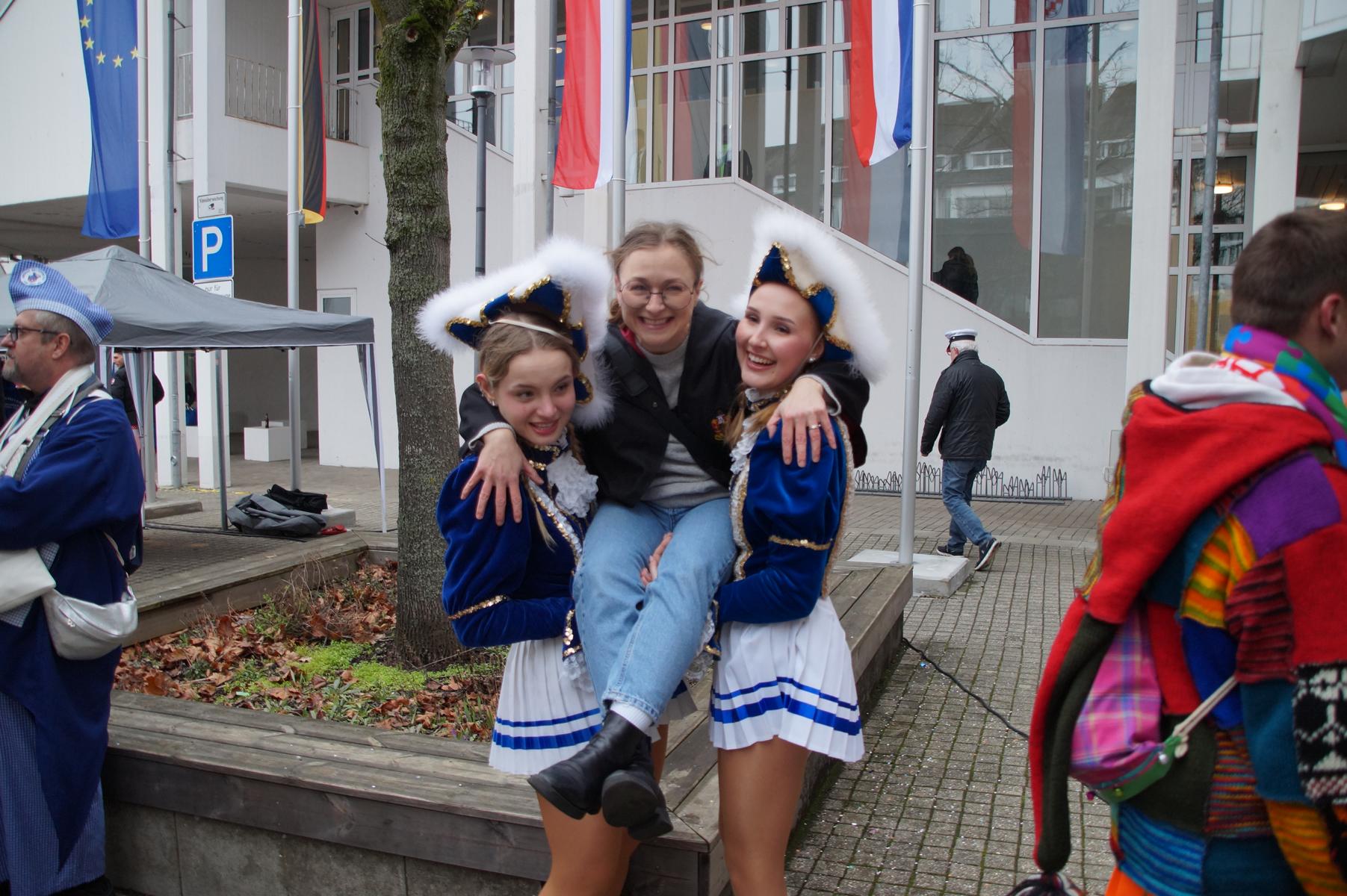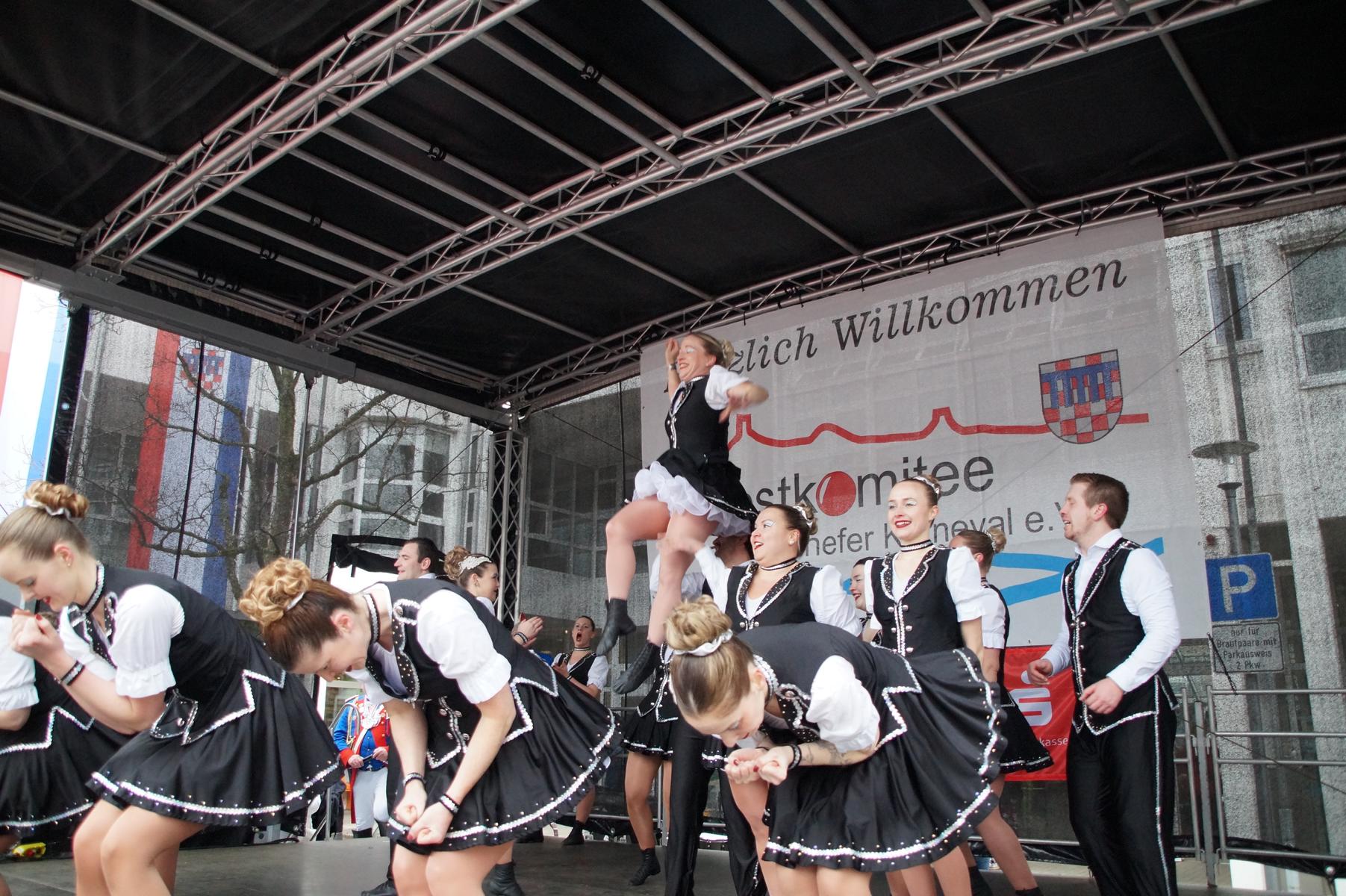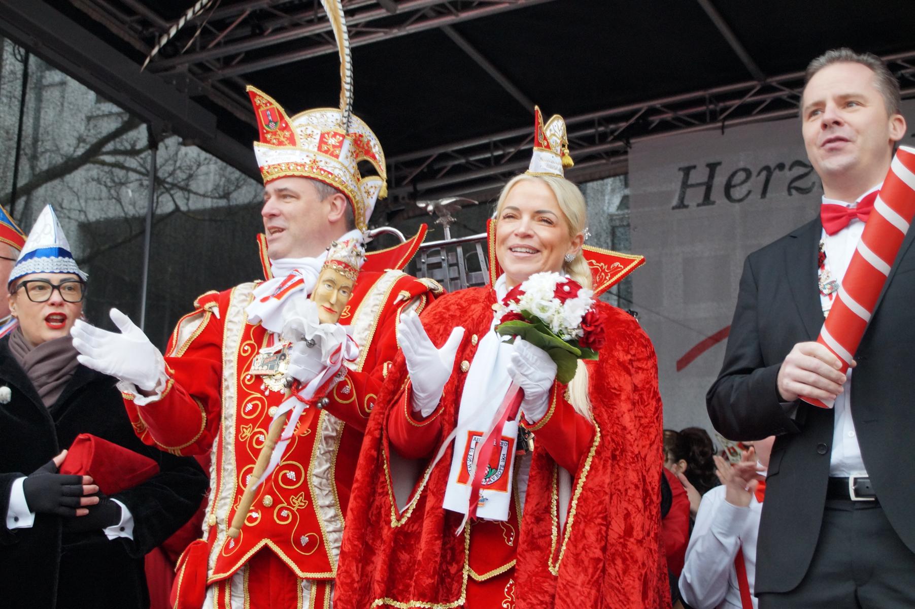 Pünktlich um 11.00 Uhr ging es auf der großen Bühne vor dem Rathaus los, vor der sich zu diesem Zeitpunkt bereits einige hundert Karnevalisten eingefunden hatten.
