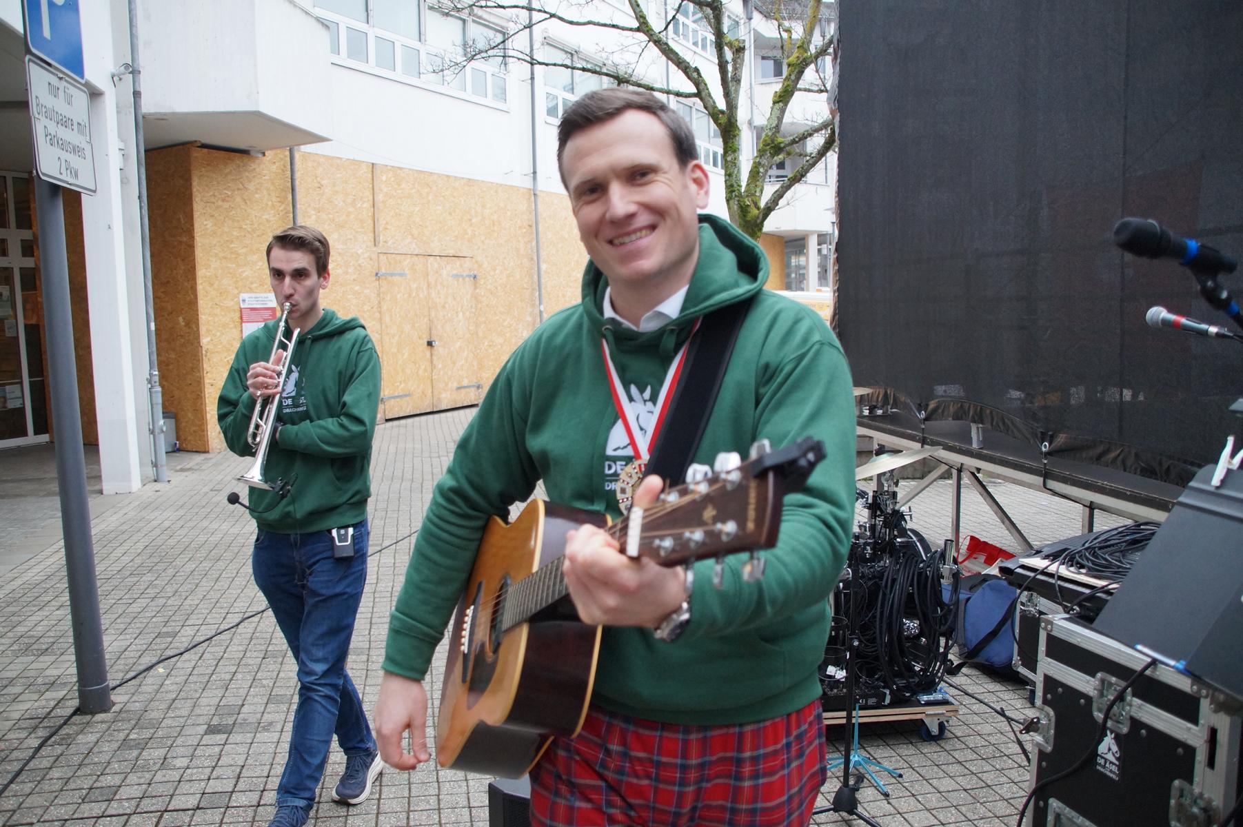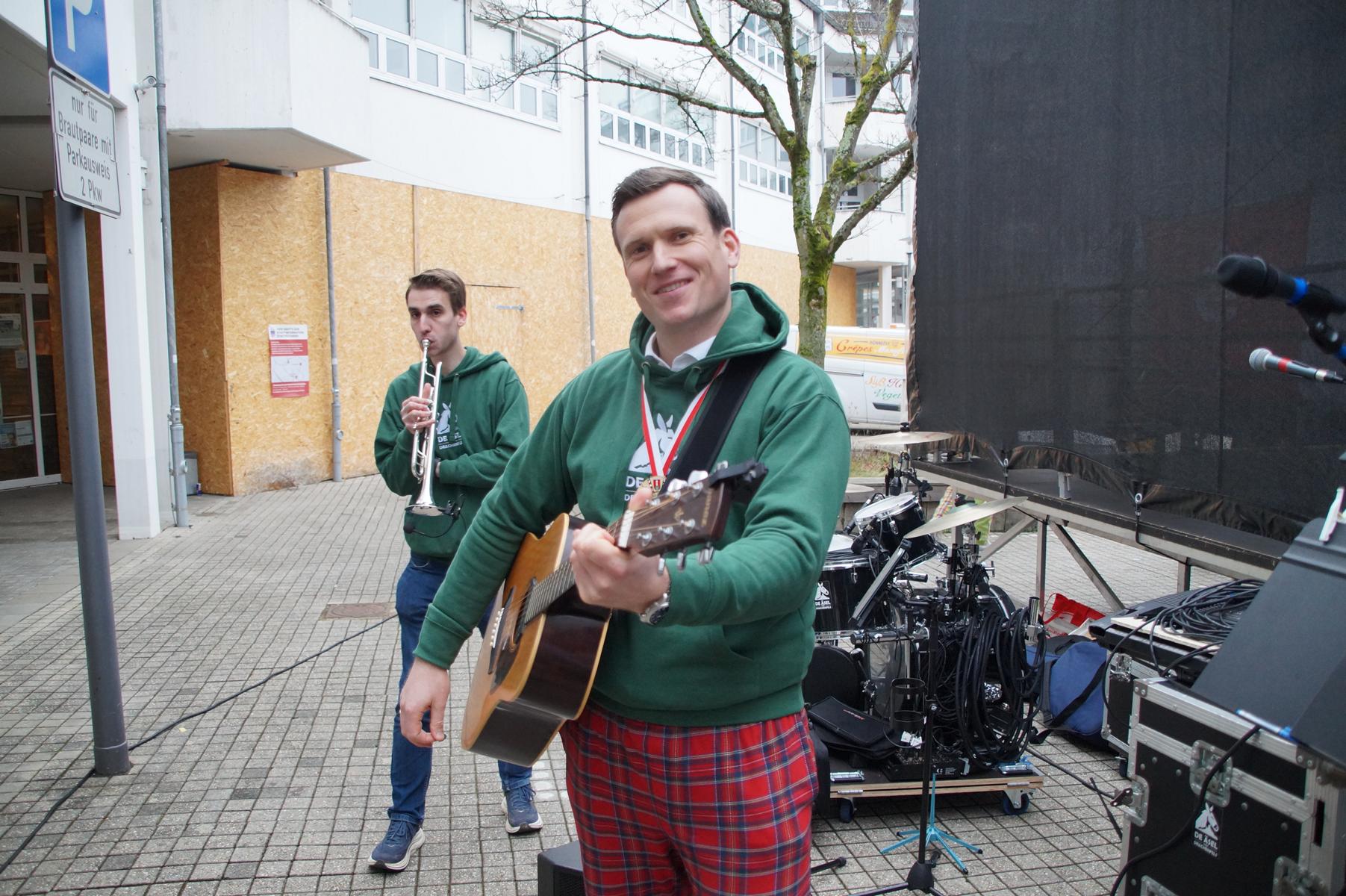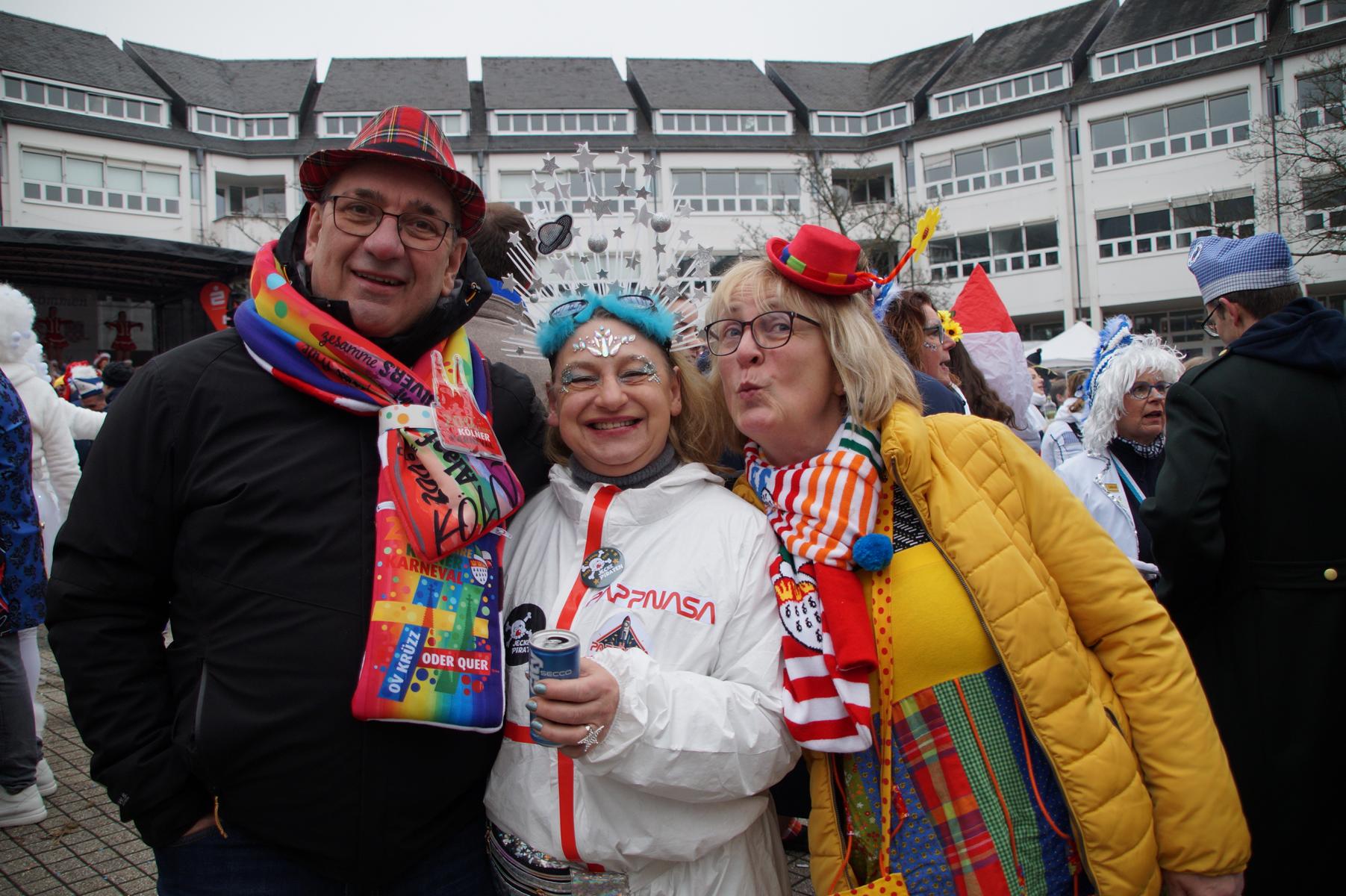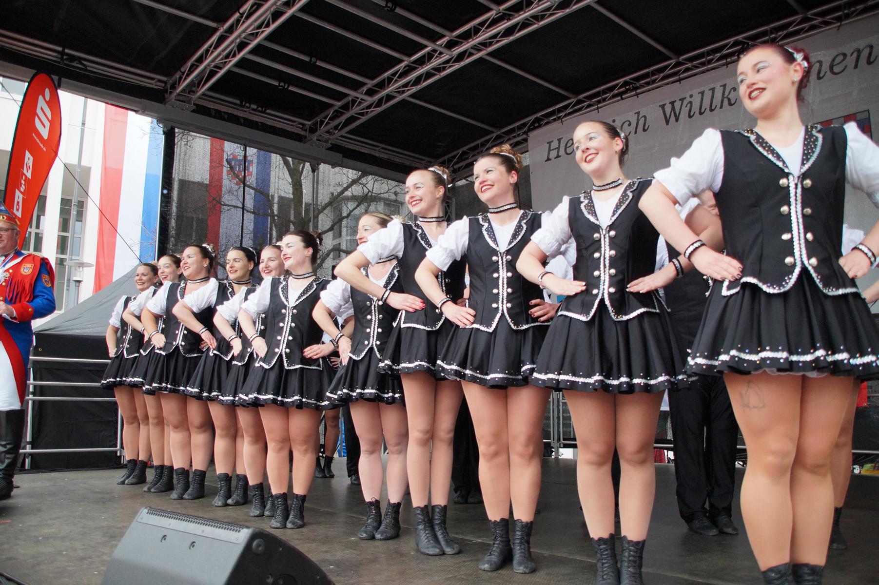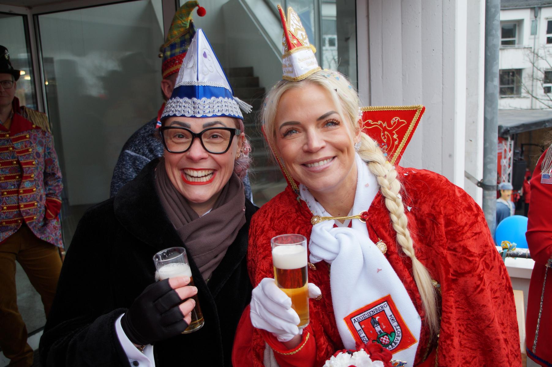 Pünktlich um 11.00 Uhr ging es auf der großen Bühne vor dem Rathaus los, vor der sich zu diesem Zeitpunkt bereits einige hundert Karnevalisten eingefunden hatten.