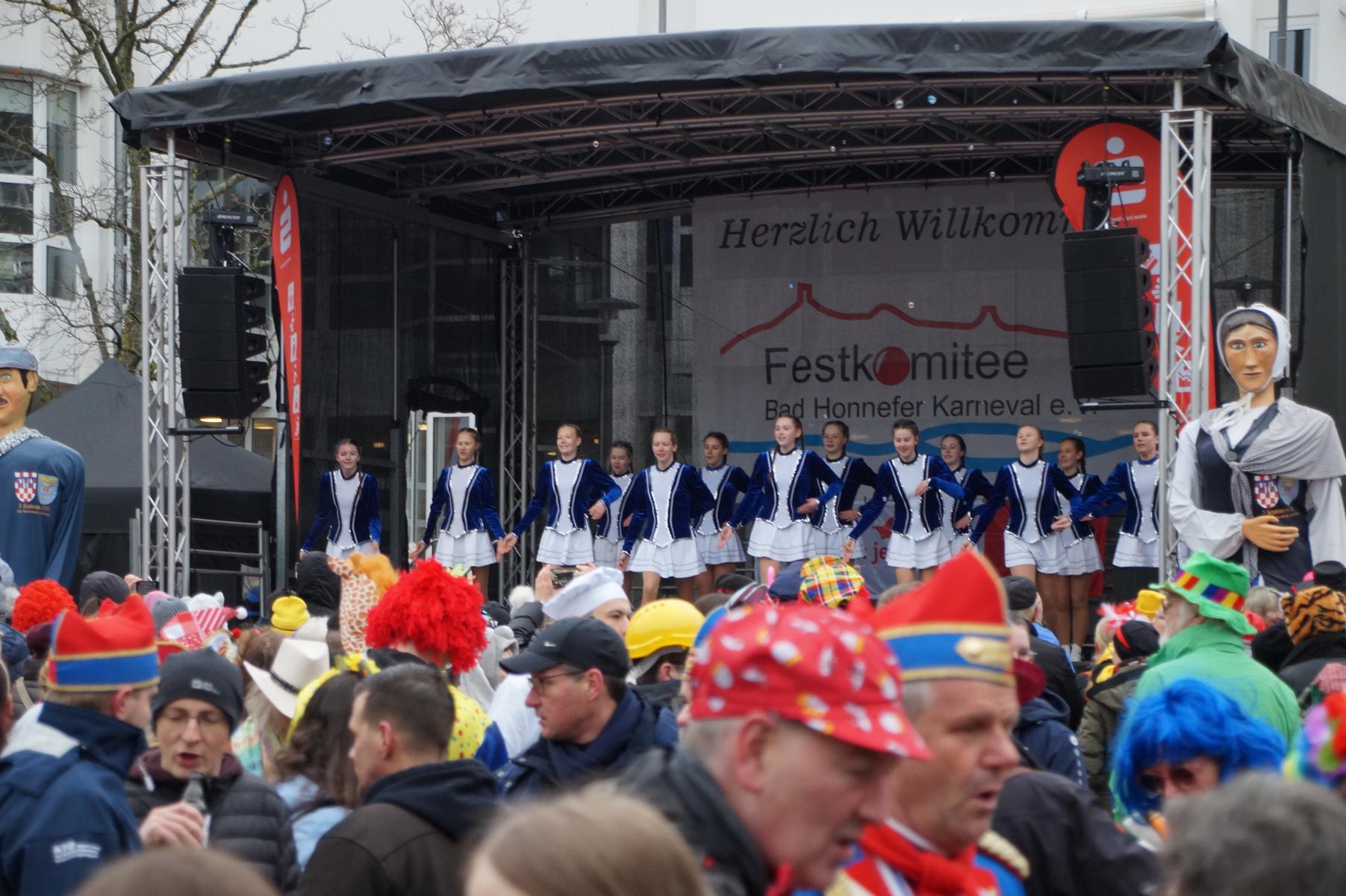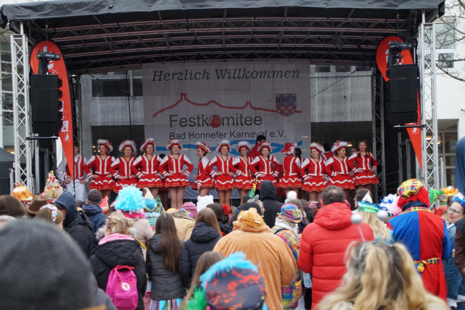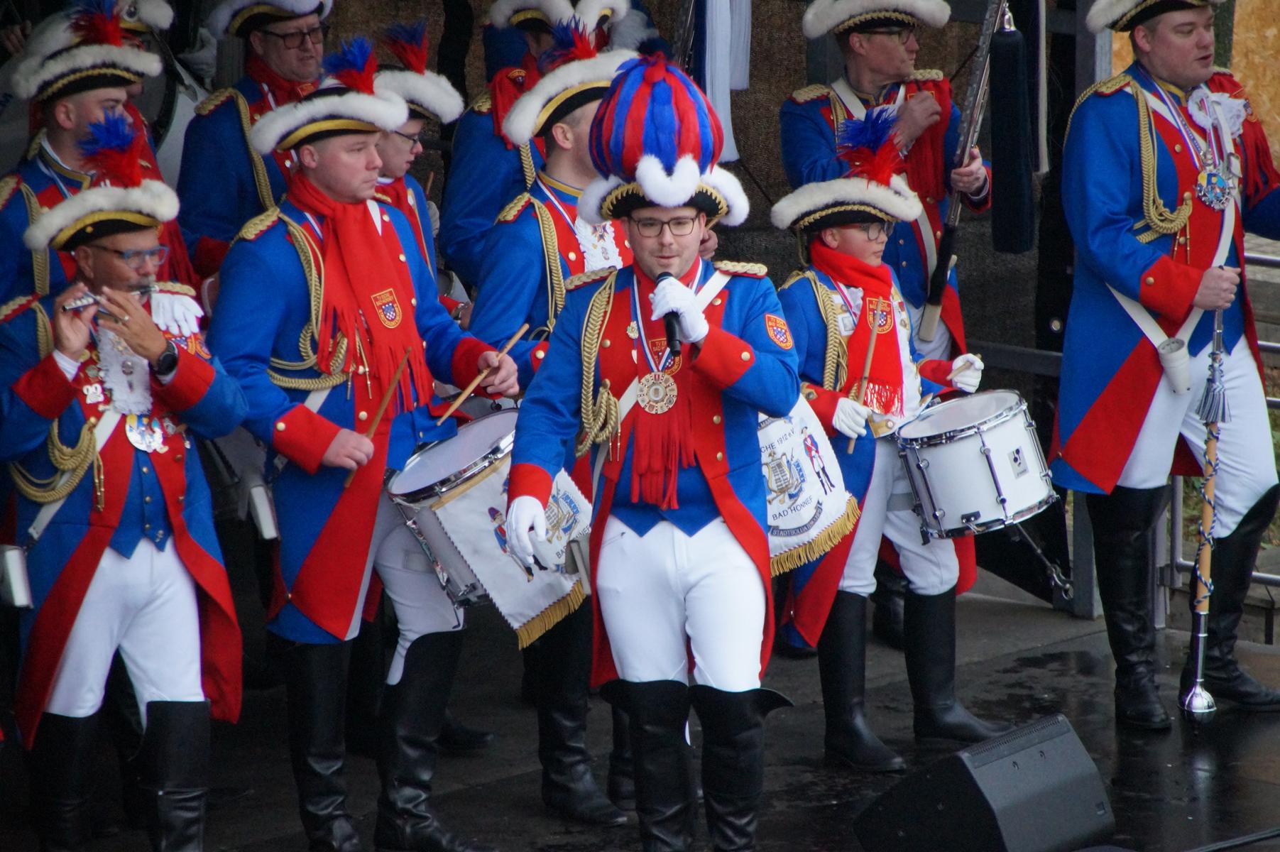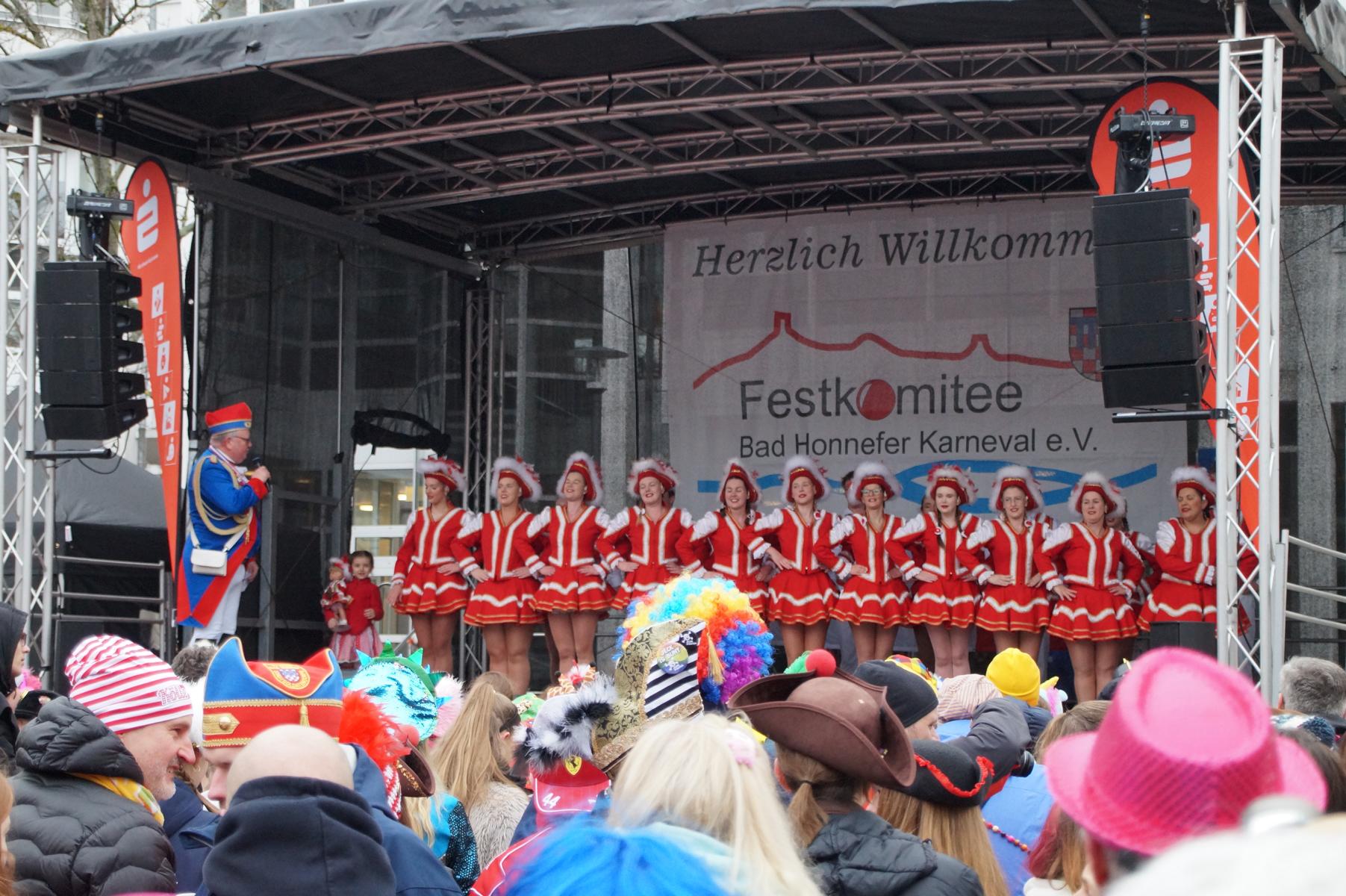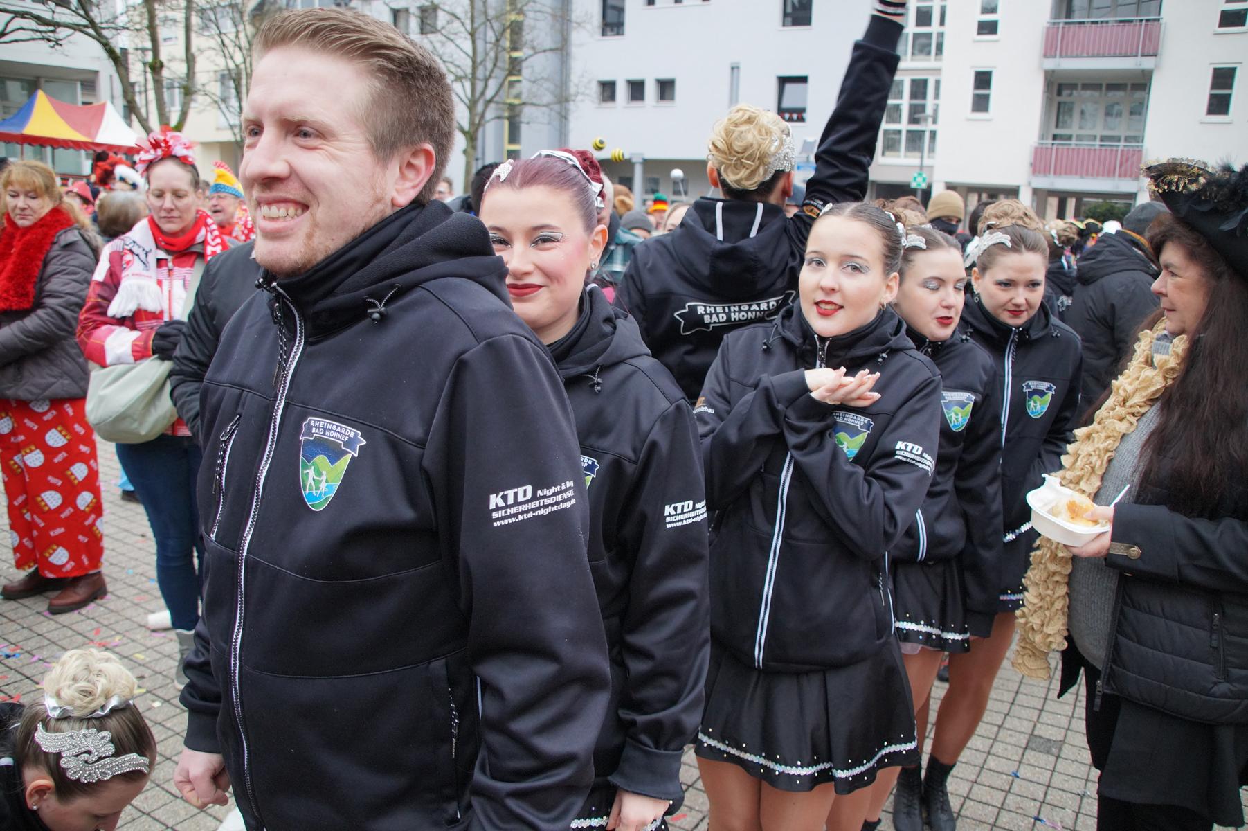Bei trockenem Wetter und rund 5 Grad zeigten die Bad Honnefer Karnevalsvereine unter der Leitung des Festausschuss Bad Honnefer Karneval e.V. und der Moderation von Norbert Grunwald , Leiter des Stadtsoldatencorps Bad Honnef (Spielmannszuges), in einem fast 4 Stündigen Programm, was sie zu bieten haben.