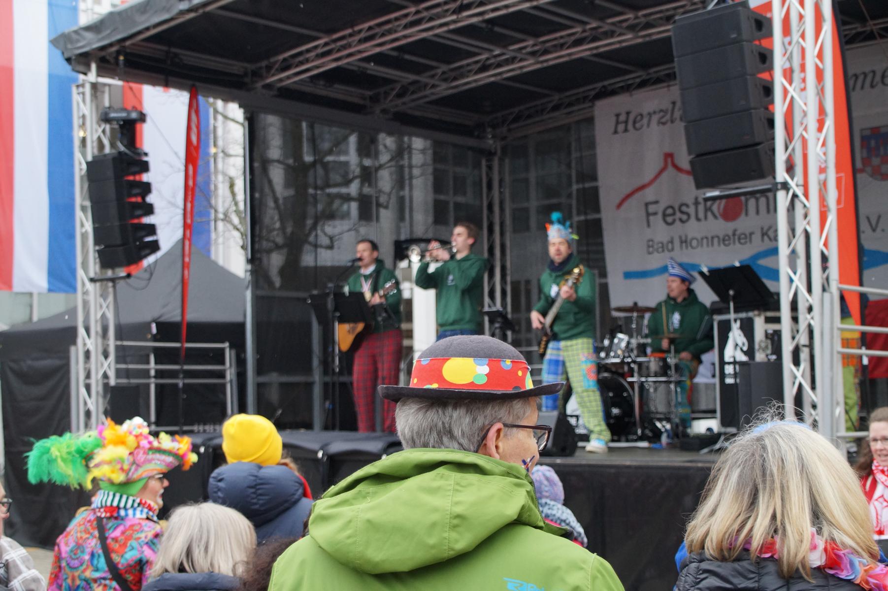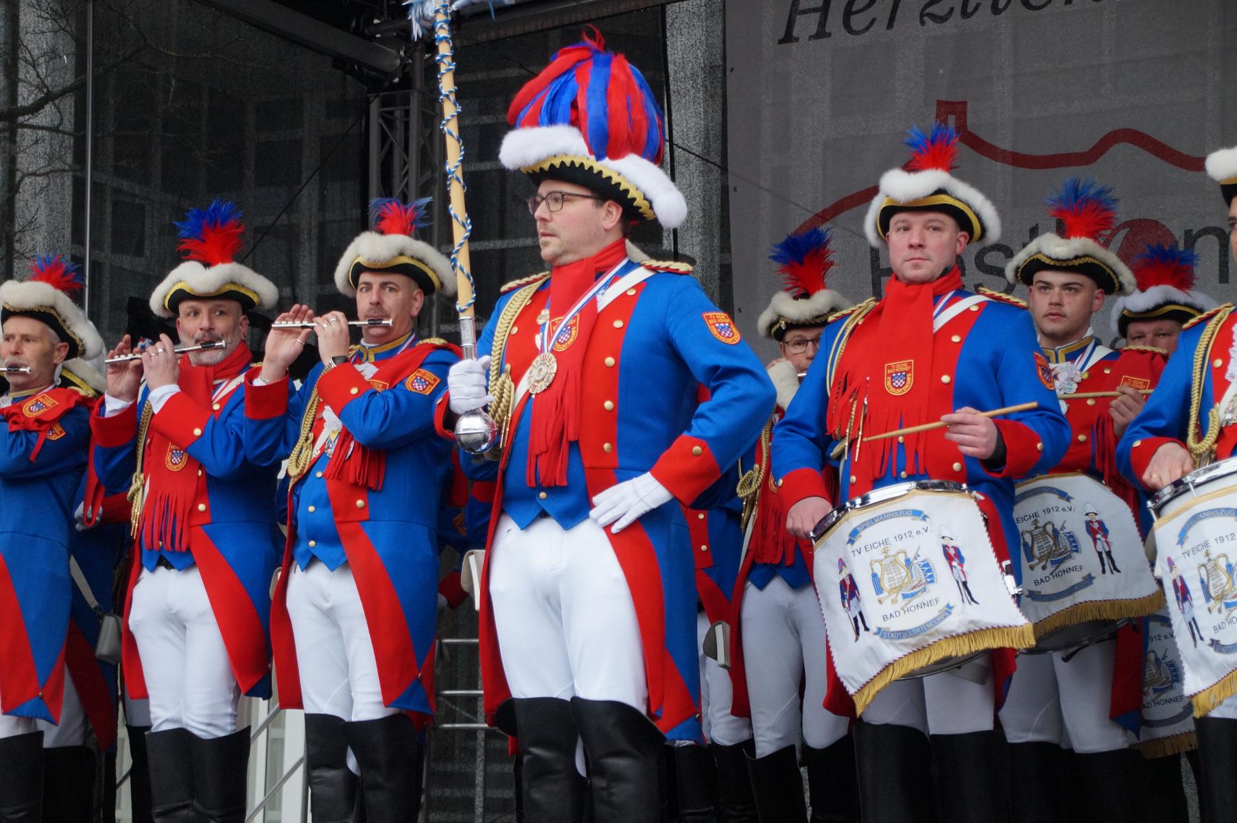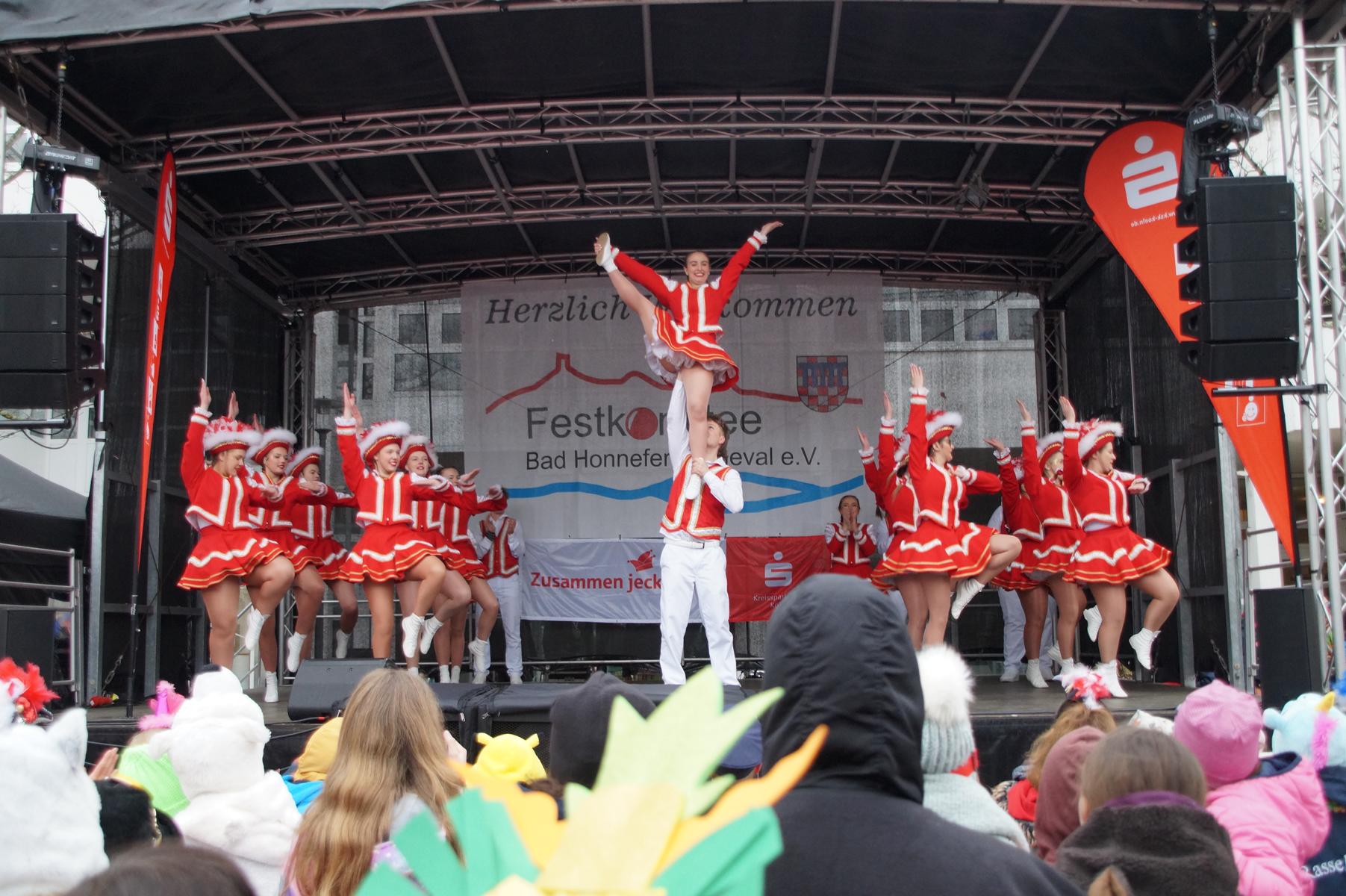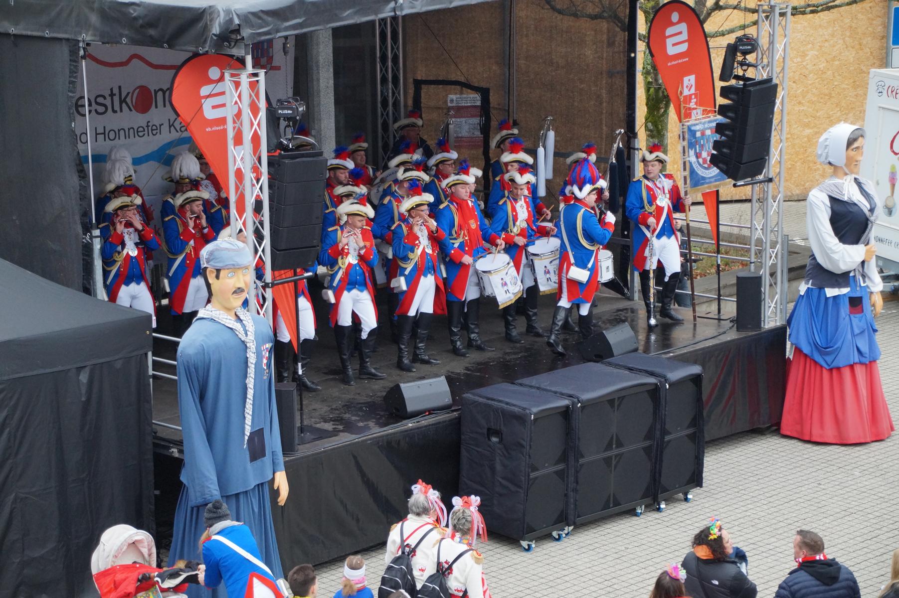 Bei trockenem Wetter und rund 5 Grad zeigten die Bad Honnefer Karnevalsvereine unter der Leitung des Festausschuss Bad Honnefer Karneval e.V. und der Moderation von Norbert Grunwald , Leiter des Stadtsoldatencorps Bad Honnef (Spielmannszuges), in einem fast 4 Stündigen Programm, was sie zu bieten haben.