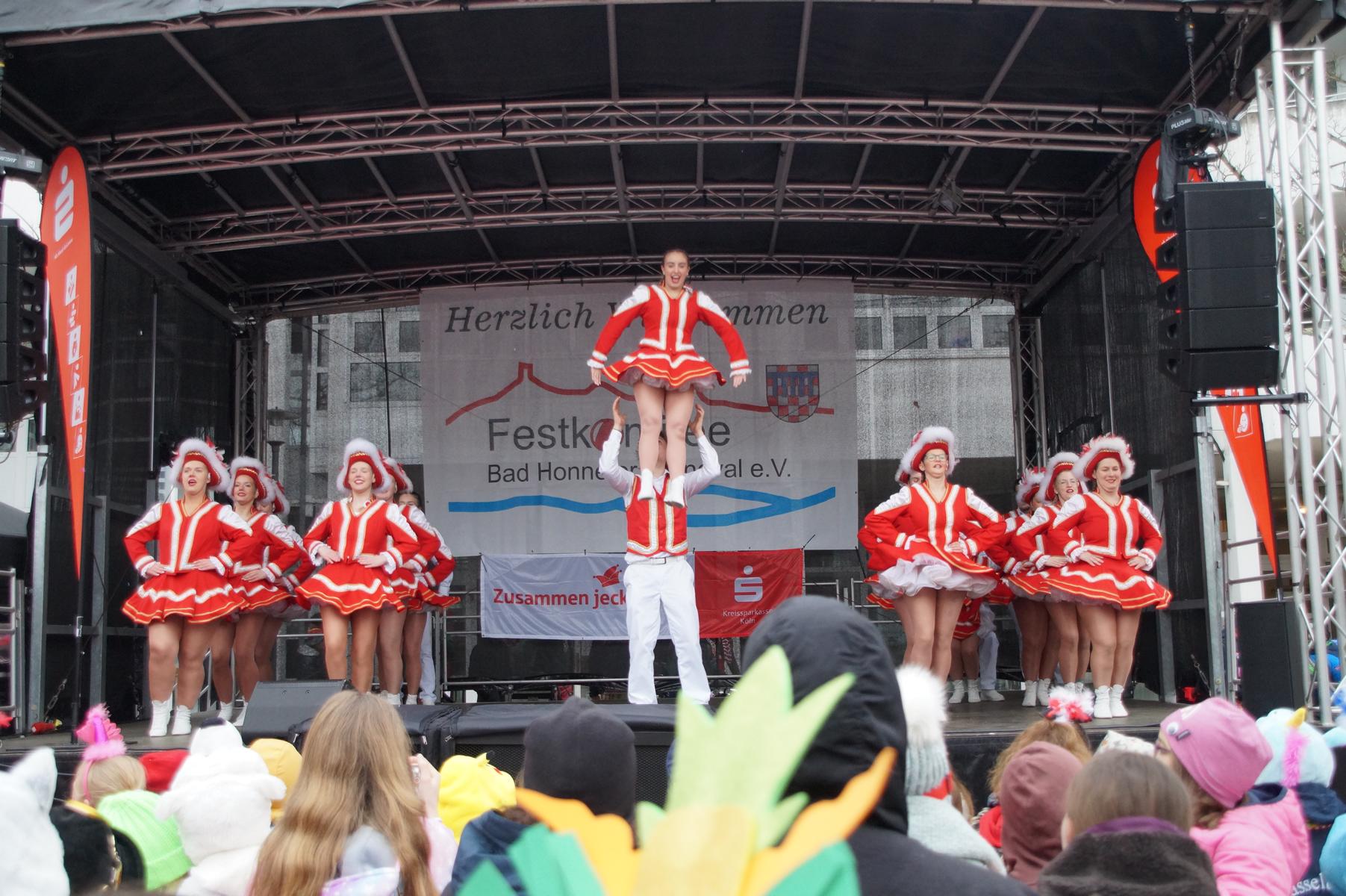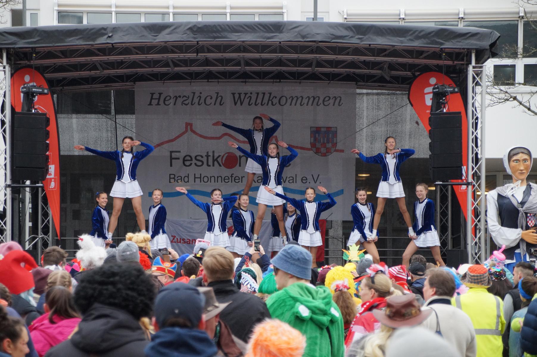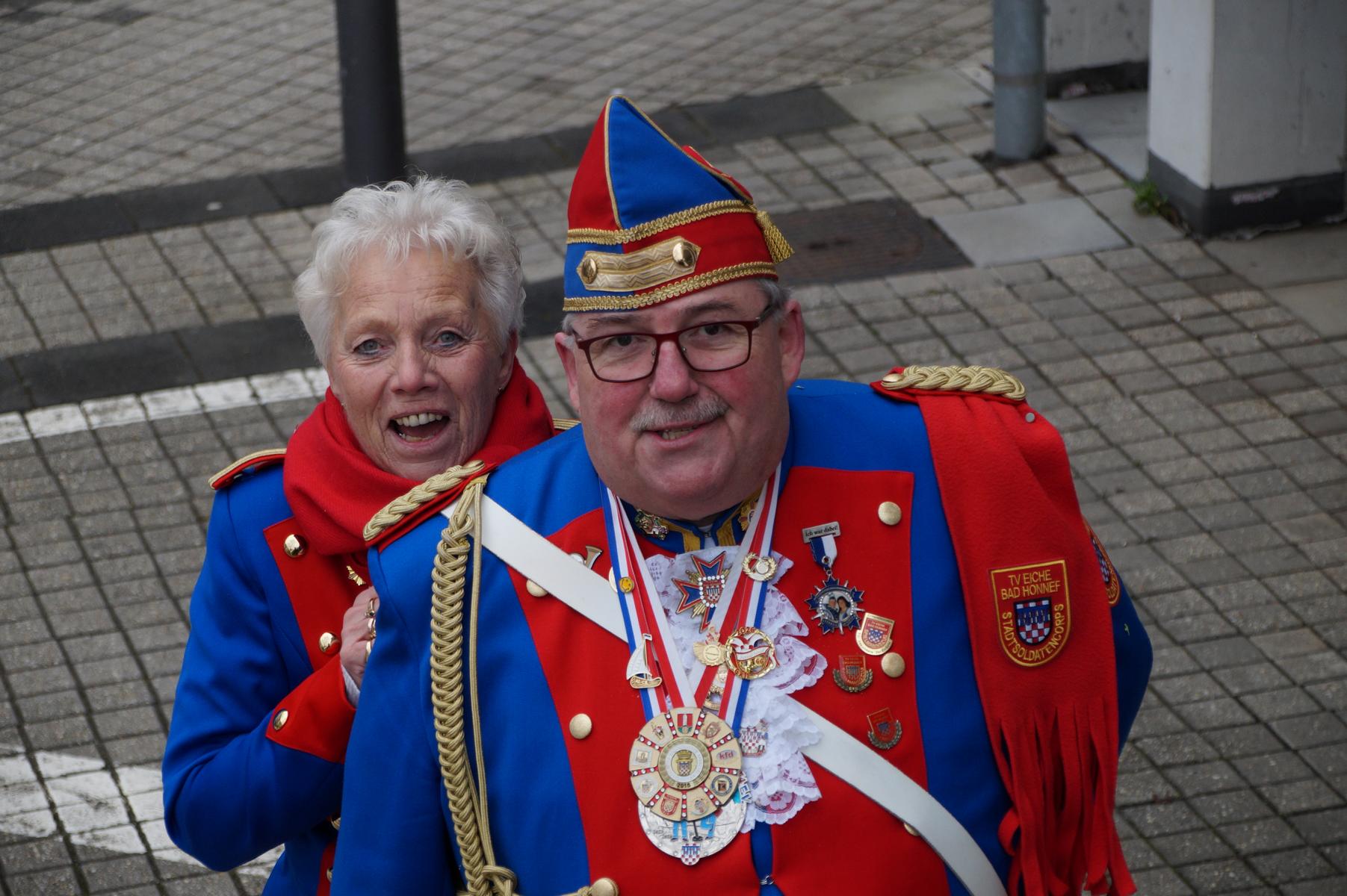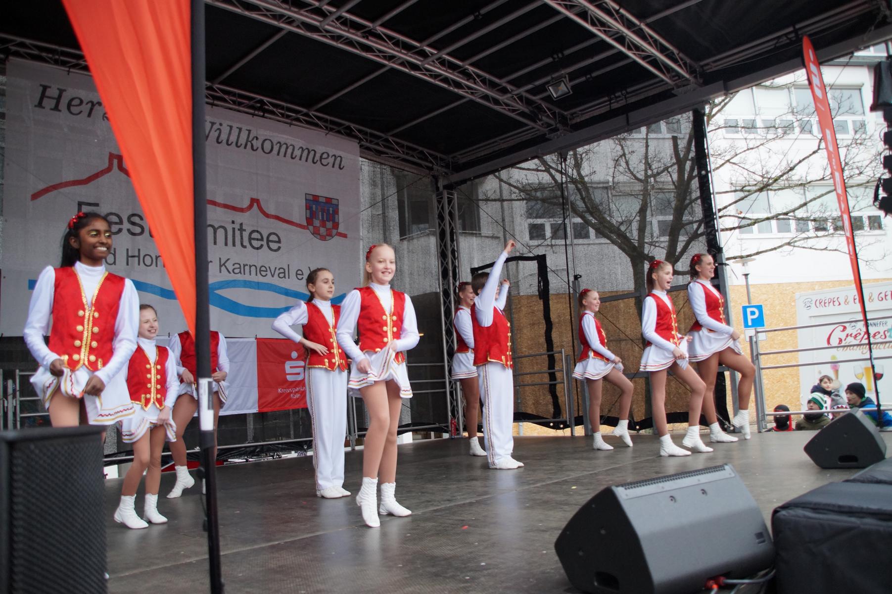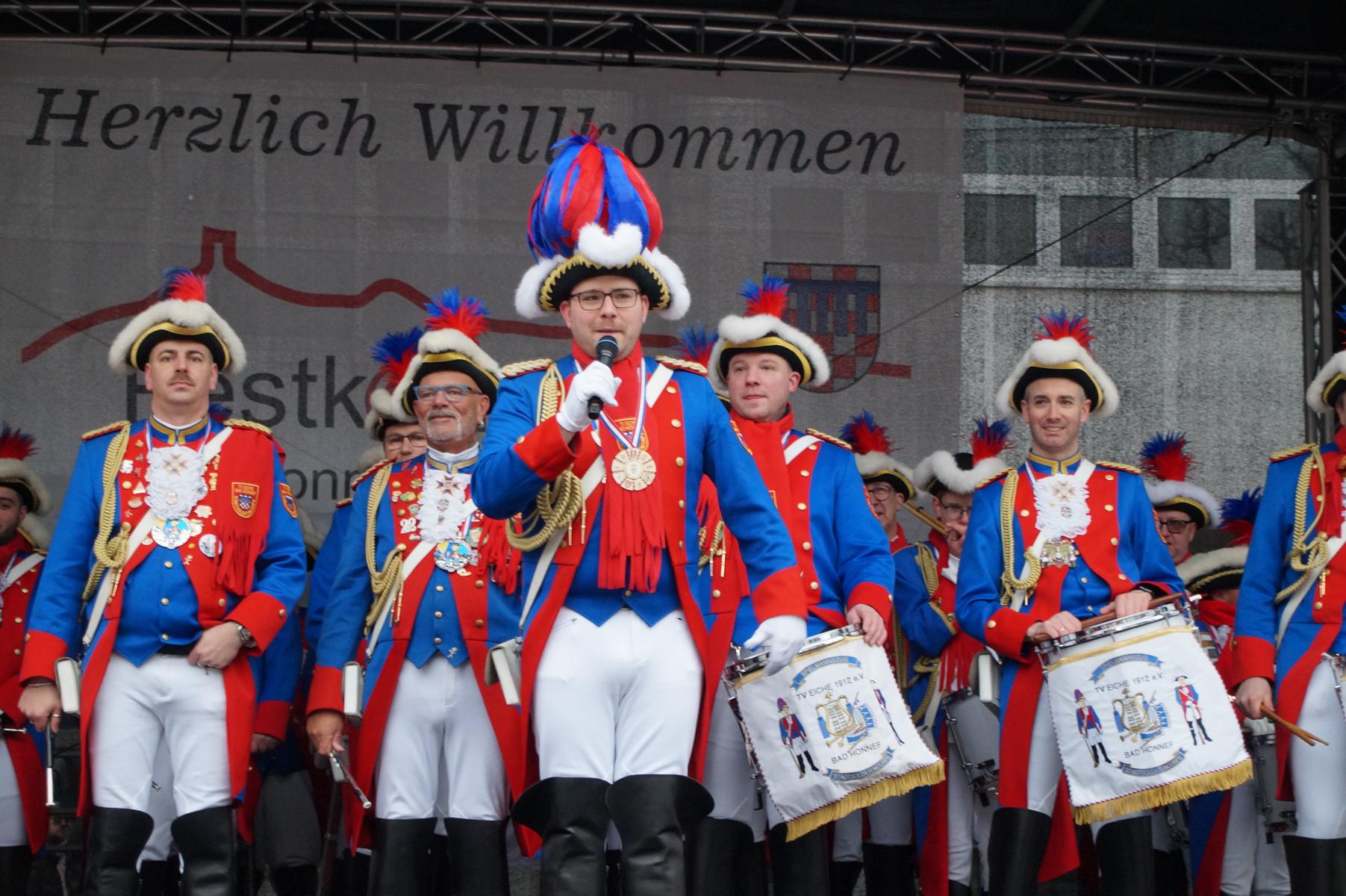 Bei trockenem Wetter und rund 5 Grad zeigten die Bad Honnefer Karnevalsvereine unter der Leitung des Festausschuss Bad Honnefer Karneval e.V. und der Moderation von Norbert Grunwald , Leiter des Stadtsoldatencorps Bad Honnef (Spielmannszuges), in einem fast 4 Stündigen Programm, was sie zu bieten haben.
