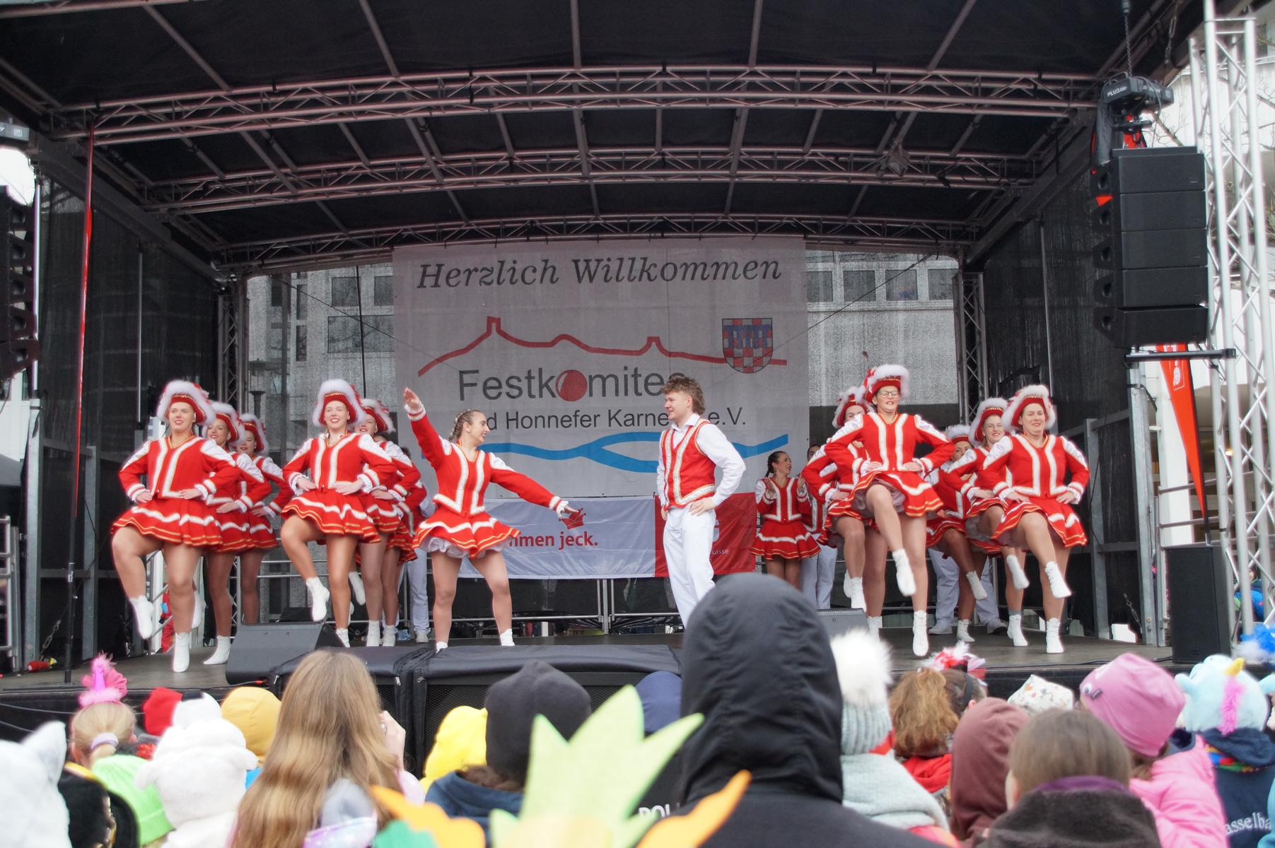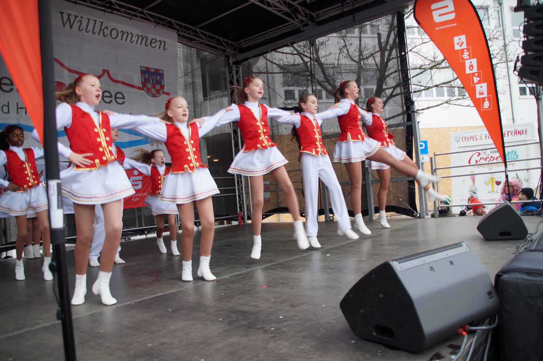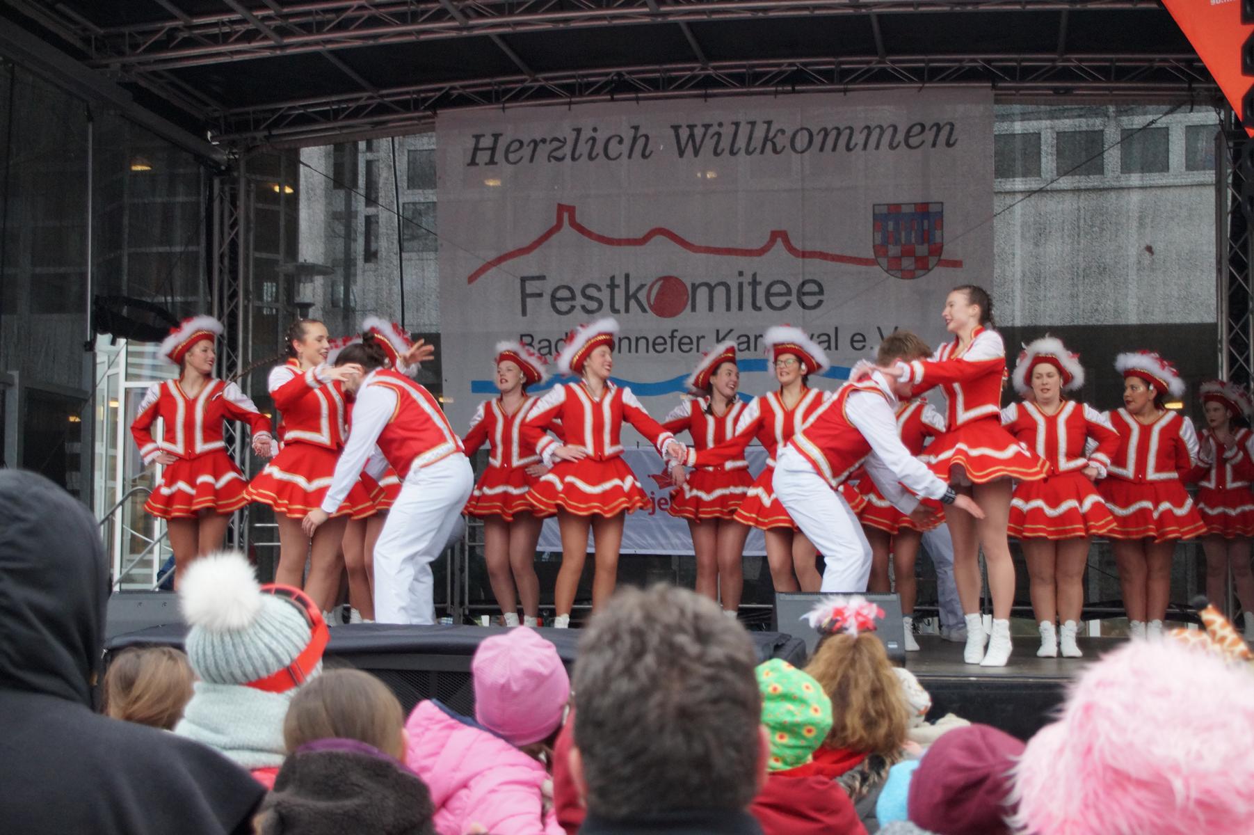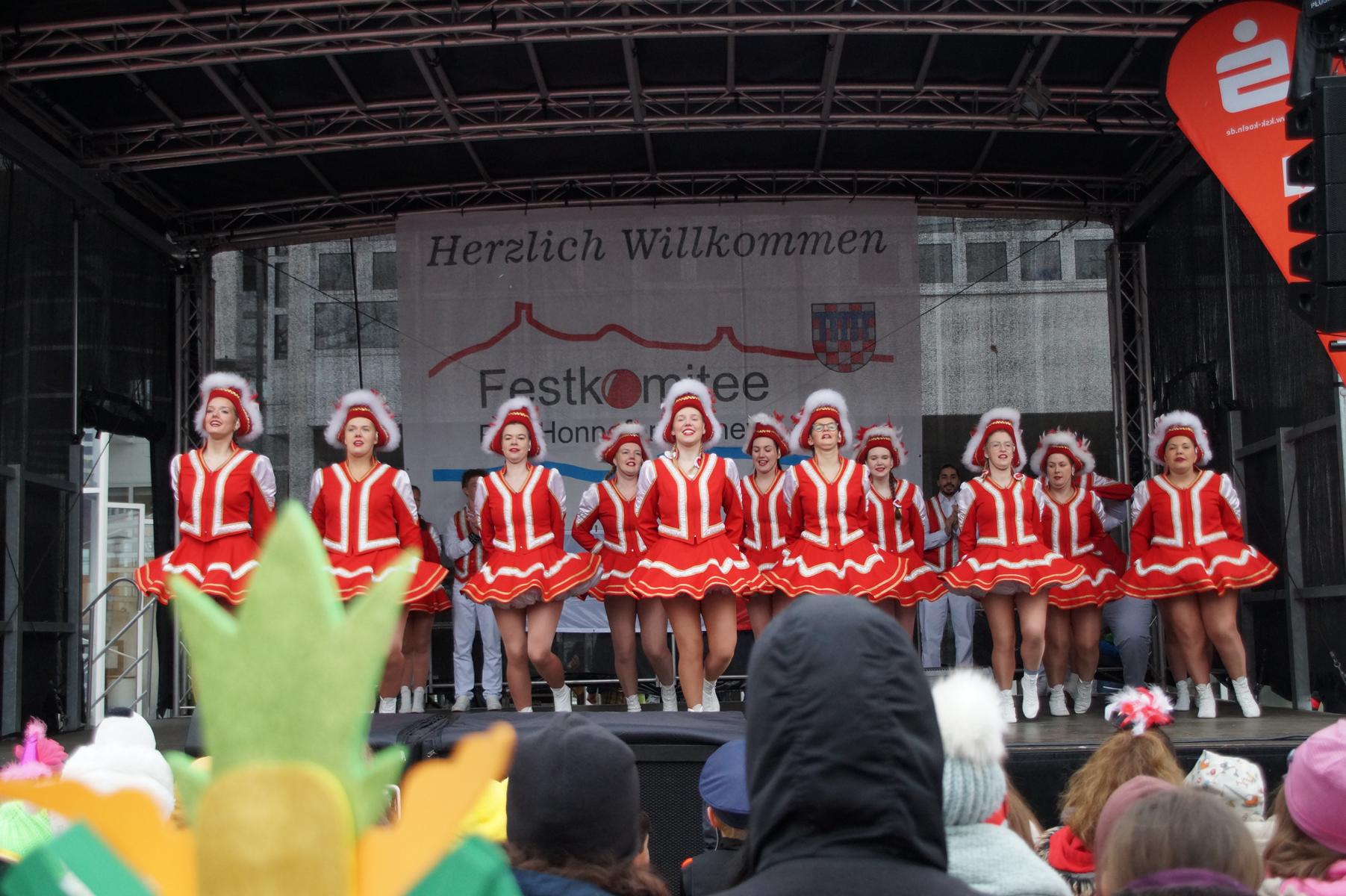 Bei trockenem Wetter und rund 5 Grad zeigten die Bad Honnefer Karnevalsvereine unter der Leitung des Festausschuss Bad Honnefer Karneval e.V. und der Moderation von Norbert Grunwald , Leiter des Stadtsoldatencorps Bad Honnef (Spielmannszuges), in einem fast 4 Stündigen Programm, was sie zu bieten haben.