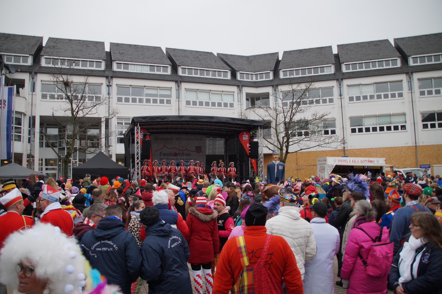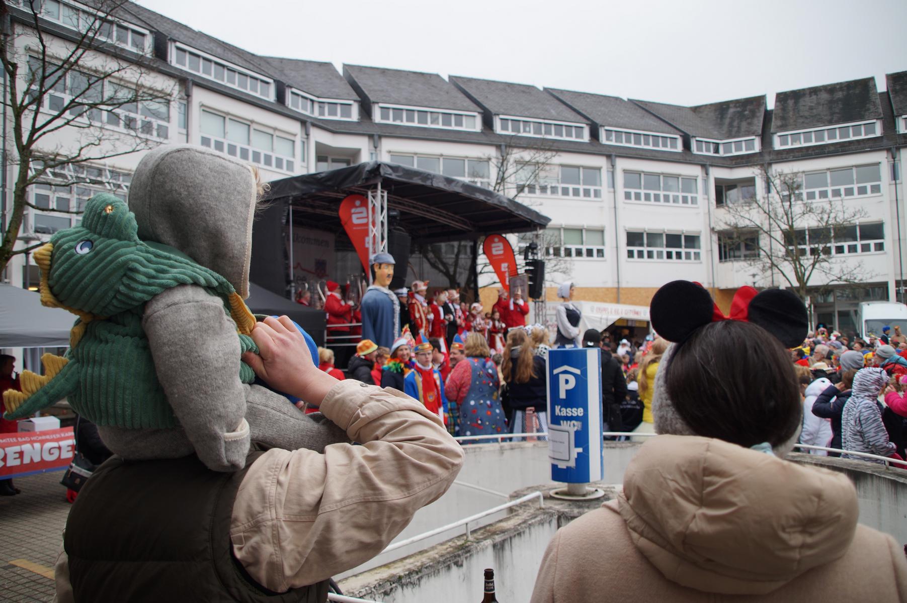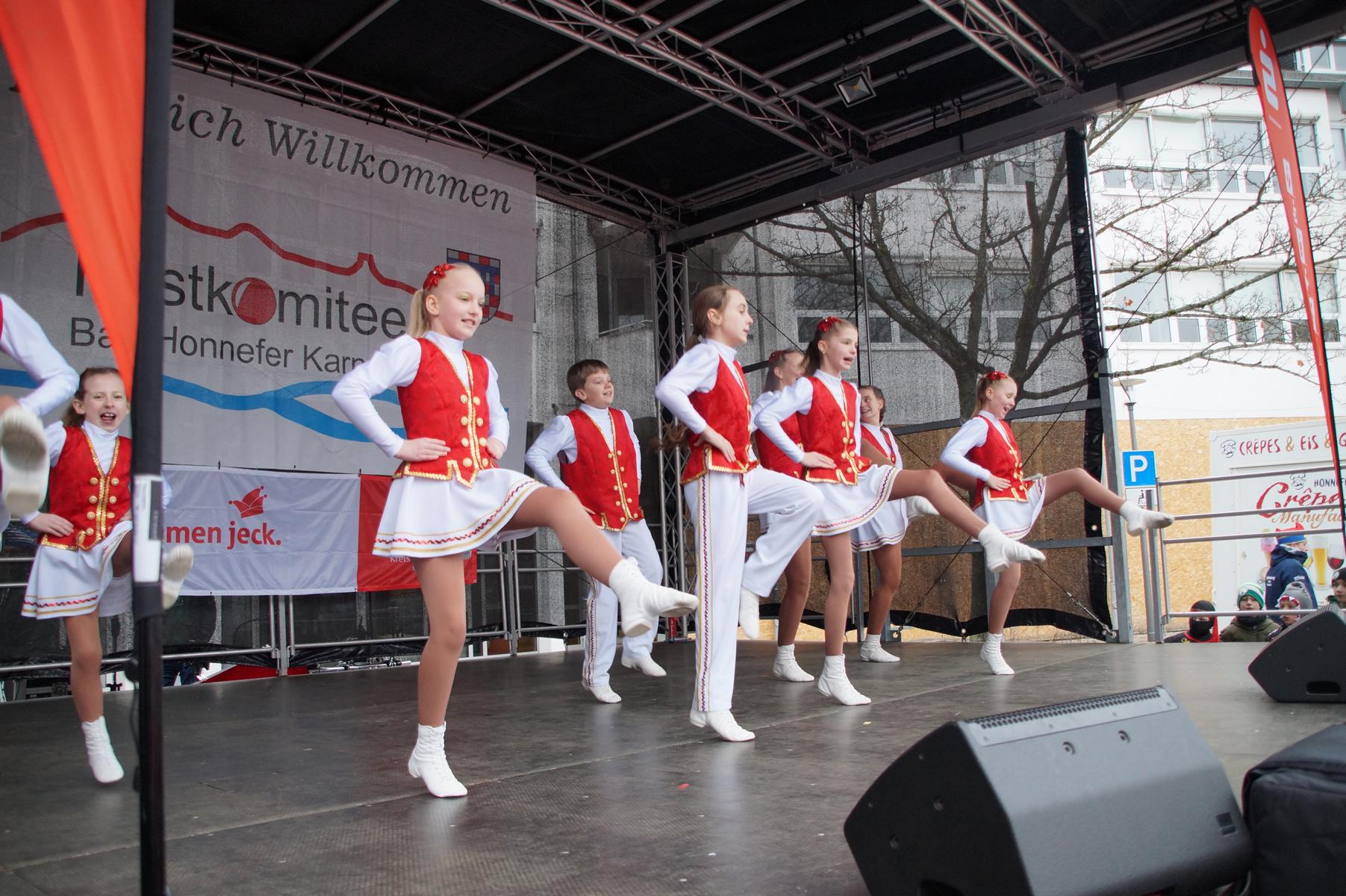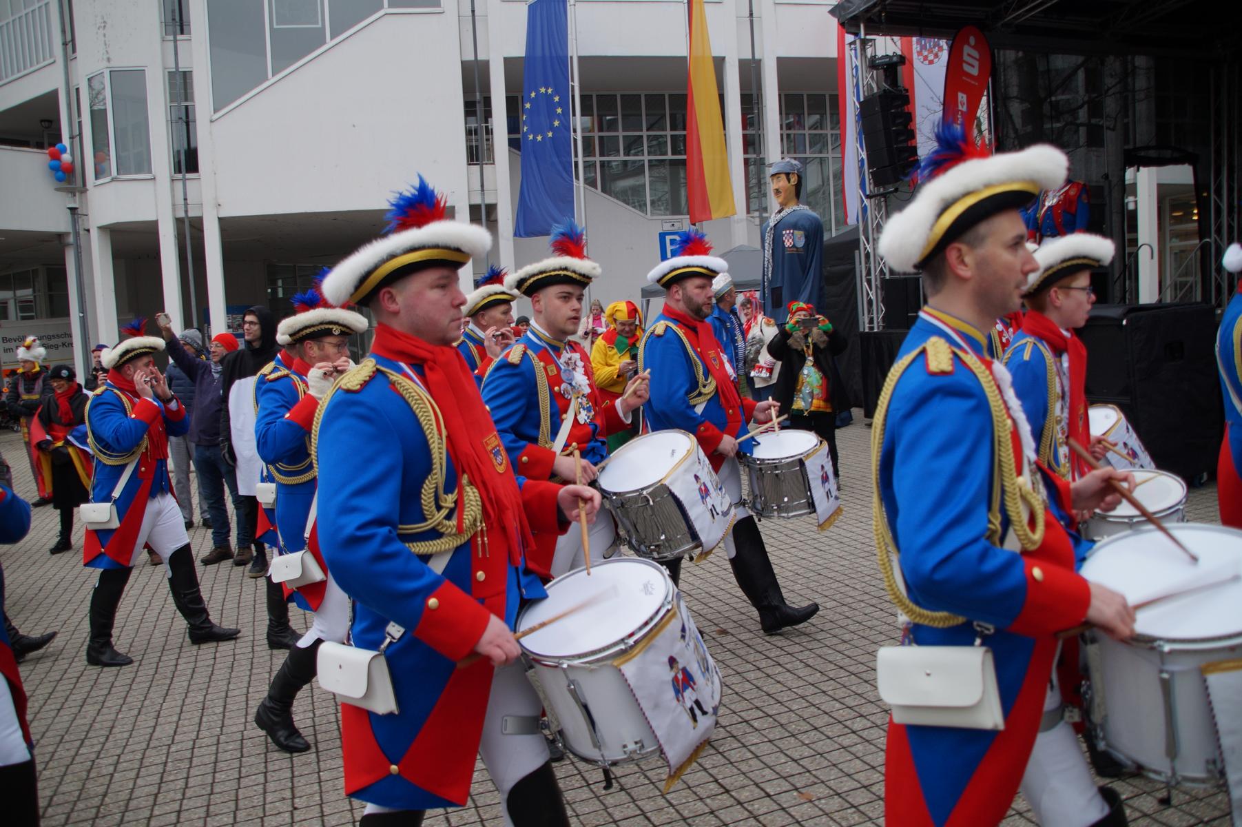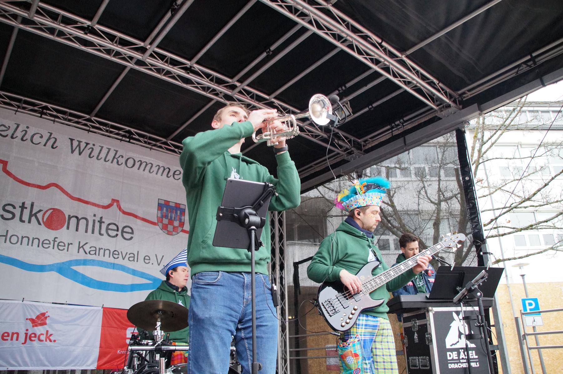 Bei trockenem Wetter und rund 5 Grad zeigten die Bad Honnefer Karnevalsvereine unter der Leitung des Festausschuss Bad Honnefer Karneval e.V. und der Moderation von Norbert Grunwald , Leiter des Stadtsoldatencorps Bad Honnef (Spielmannszuges), in einem fast 4 Stündigen Programm, was sie zu bieten haben.