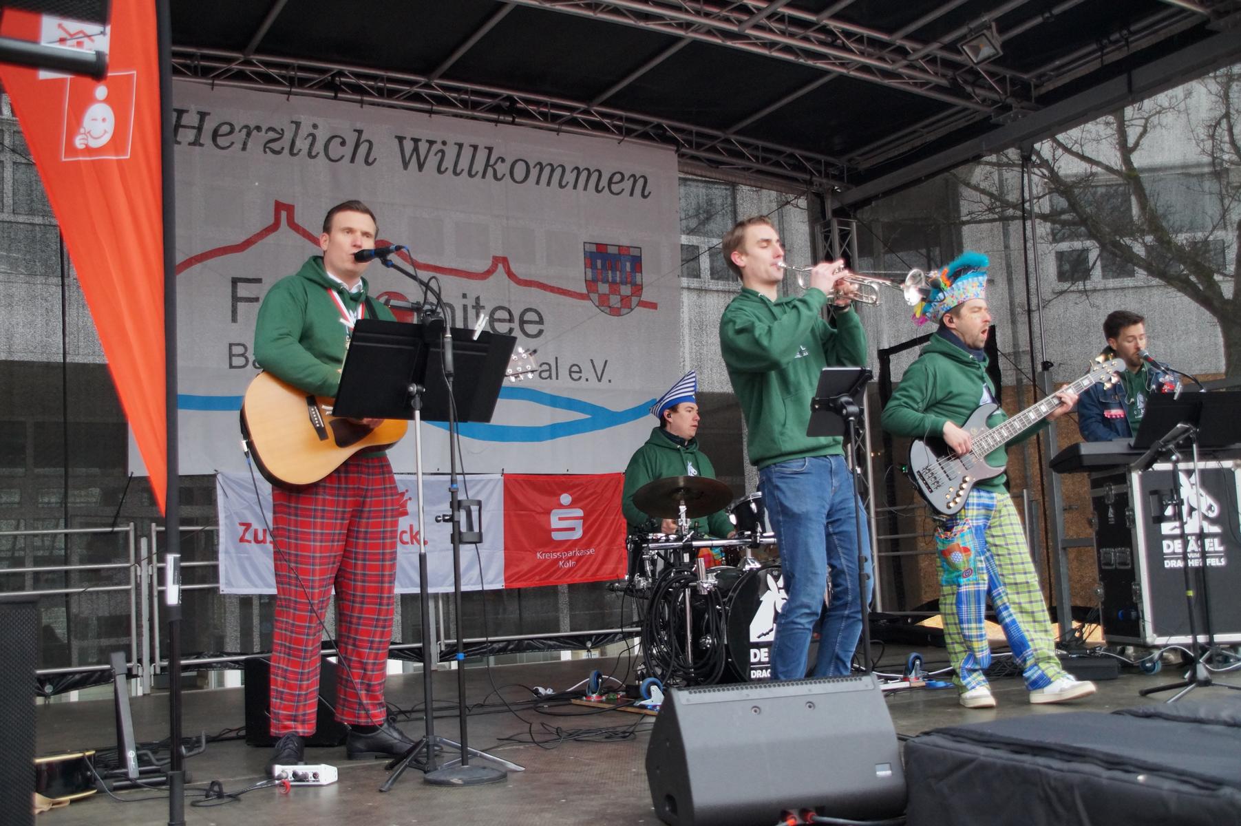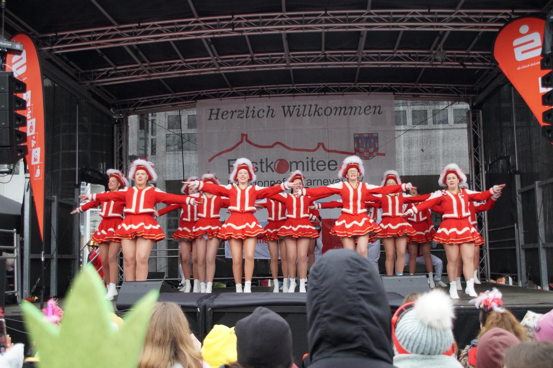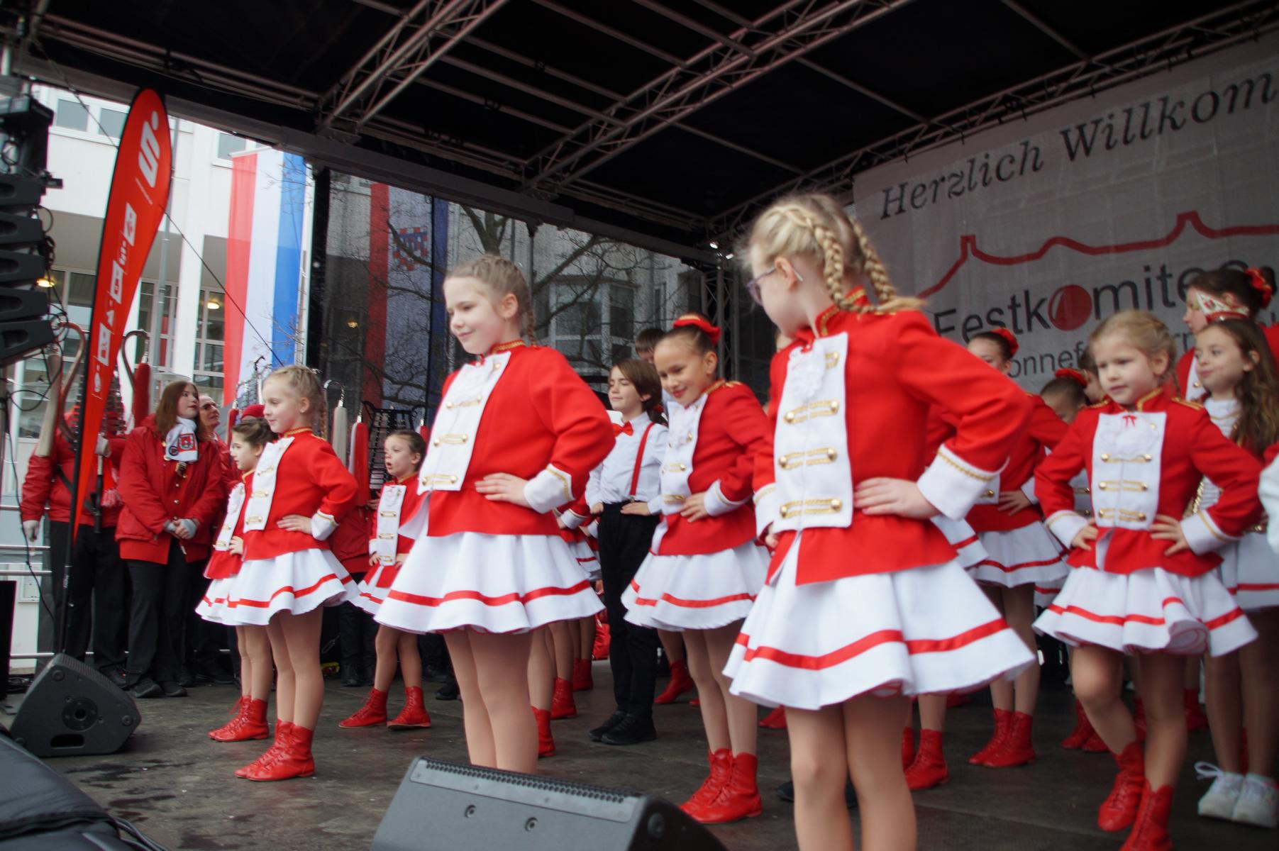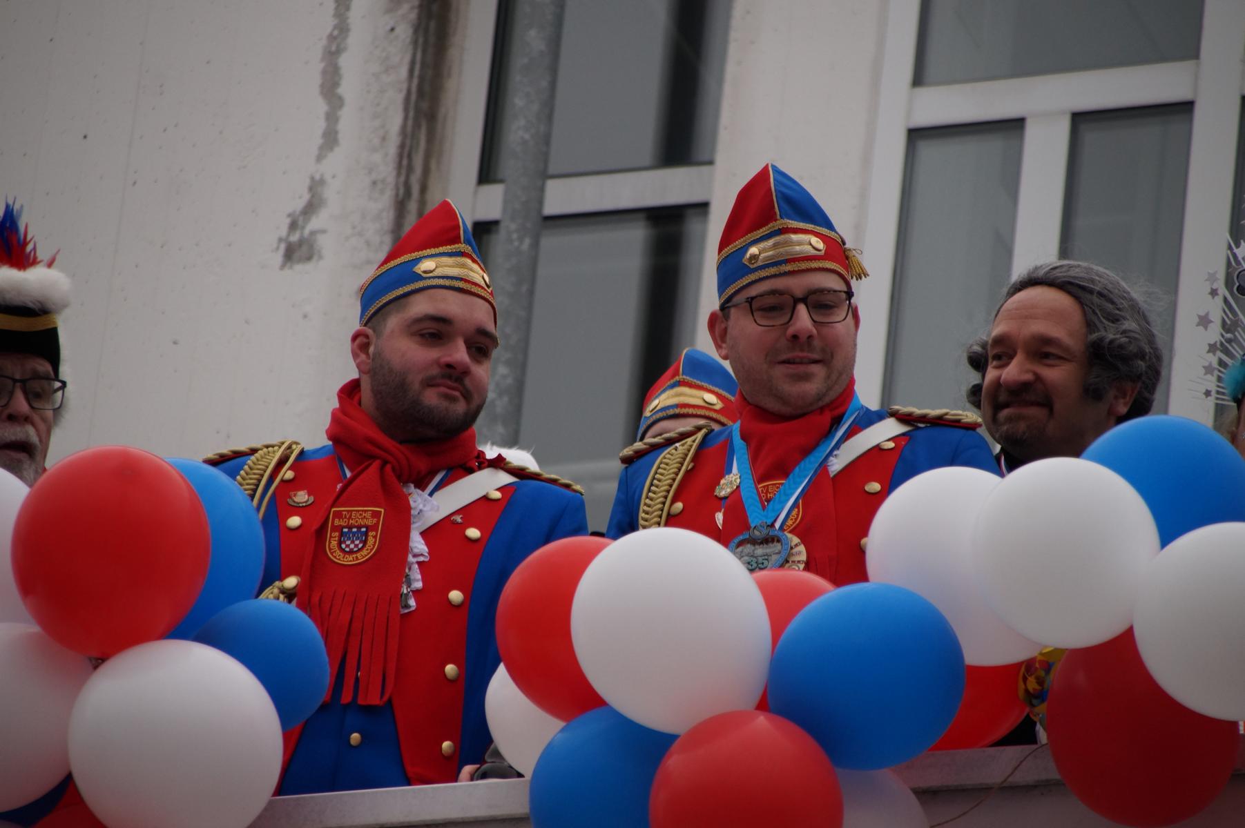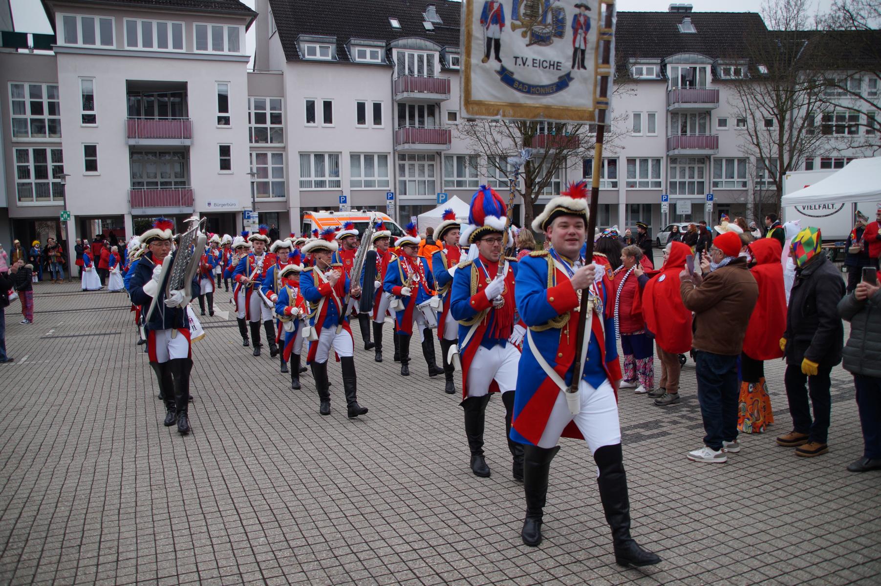 Bei trockenem Wetter und rund 5 Grad zeigten die Bad Honnefer Karnevalsvereine unter der Leitung des Festausschuss Bad Honnefer Karneval e.V. und der Moderation von Norbert Grunwald , Leiter des Stadtsoldatencorps Bad Honnef (Spielmannszuges), in einem fast 4 Stündigen Programm, was sie zu bieten haben.